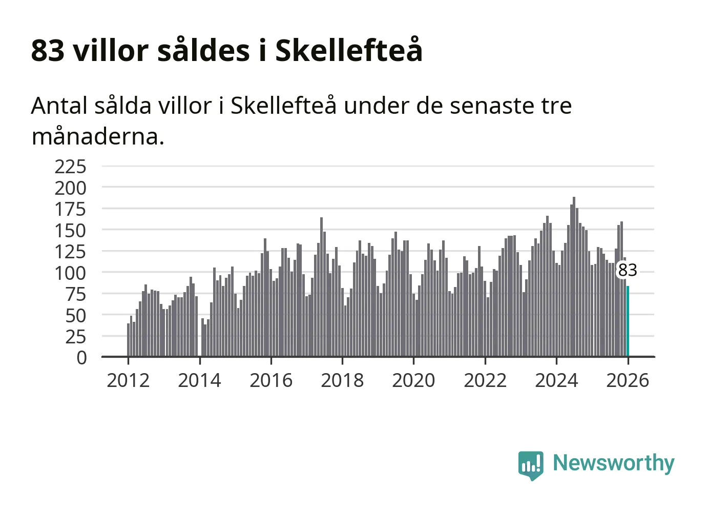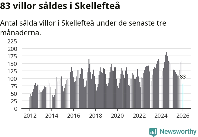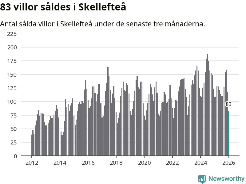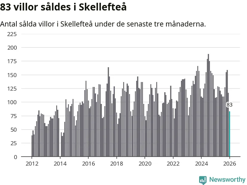 Sammanlagt såldes 83 villor i Skellefteå kommun mellan november och januari till ett genomsnittligt pris på 2,8 miljoner kronor. I fjol gjordes 108 affärer vid den här tiden på året.