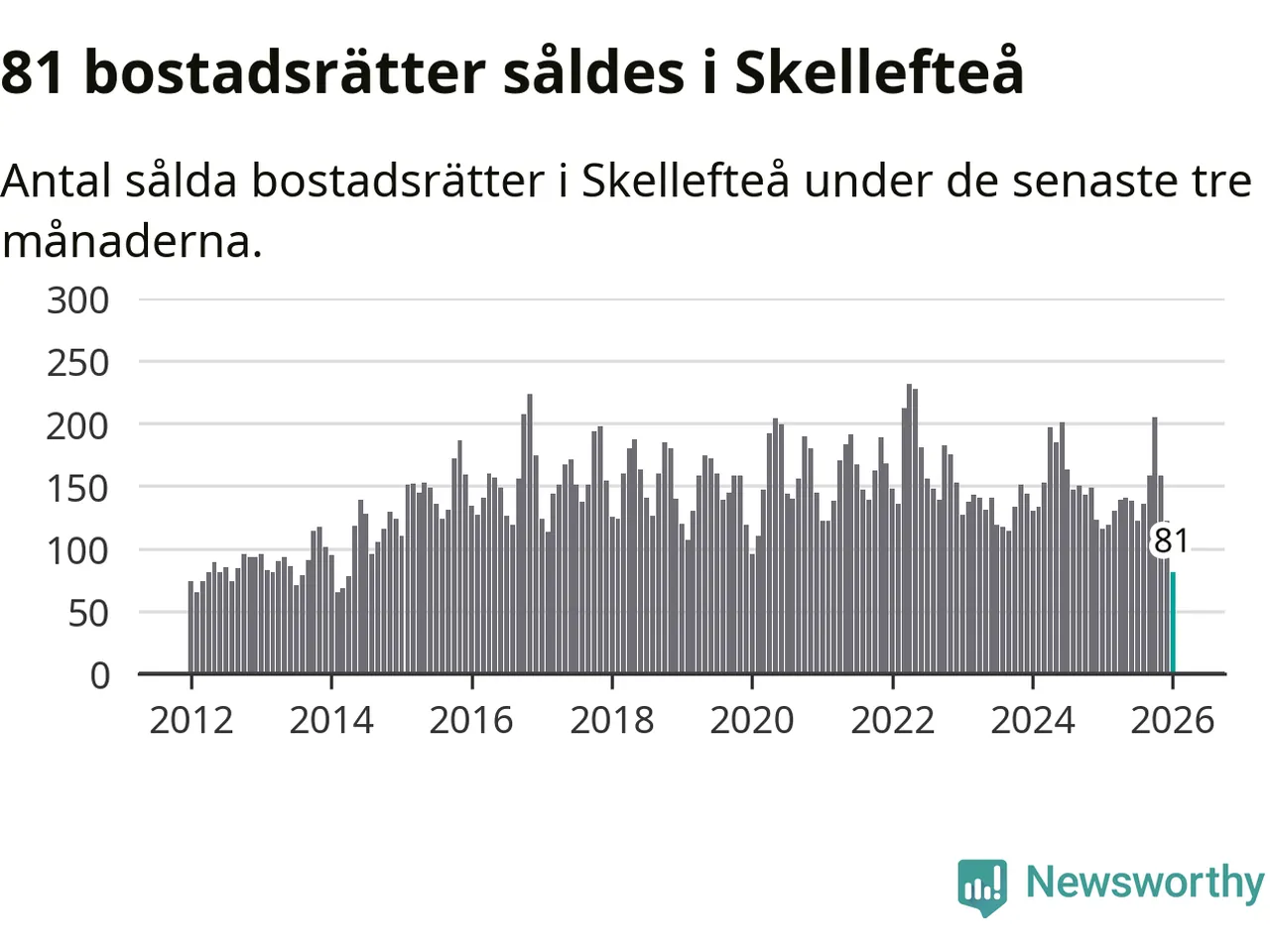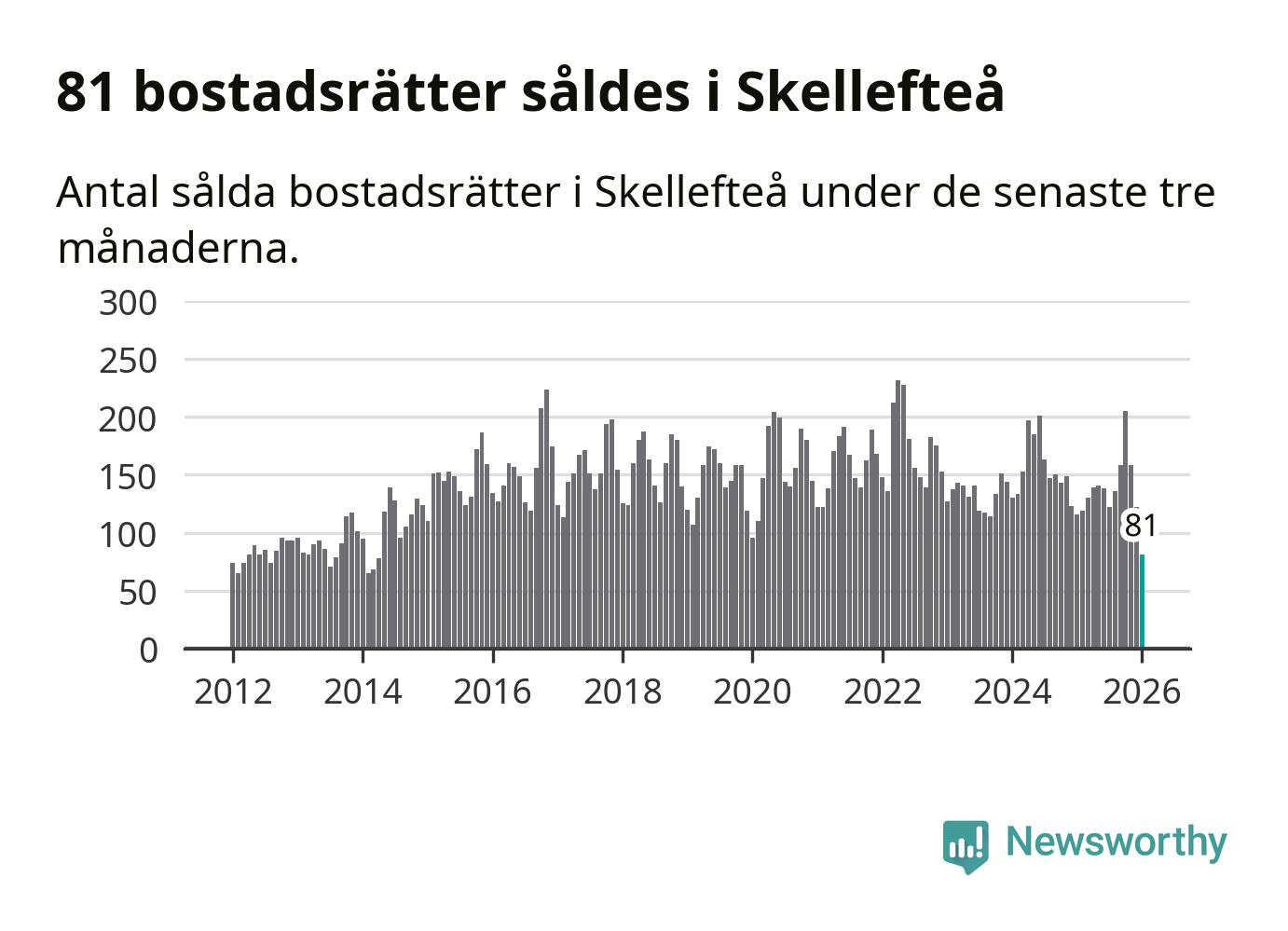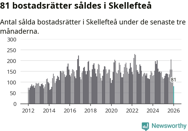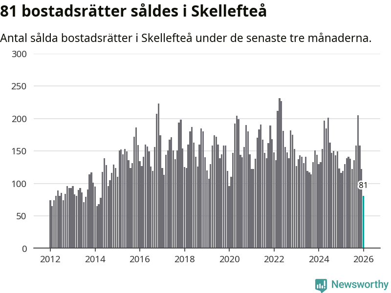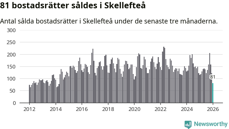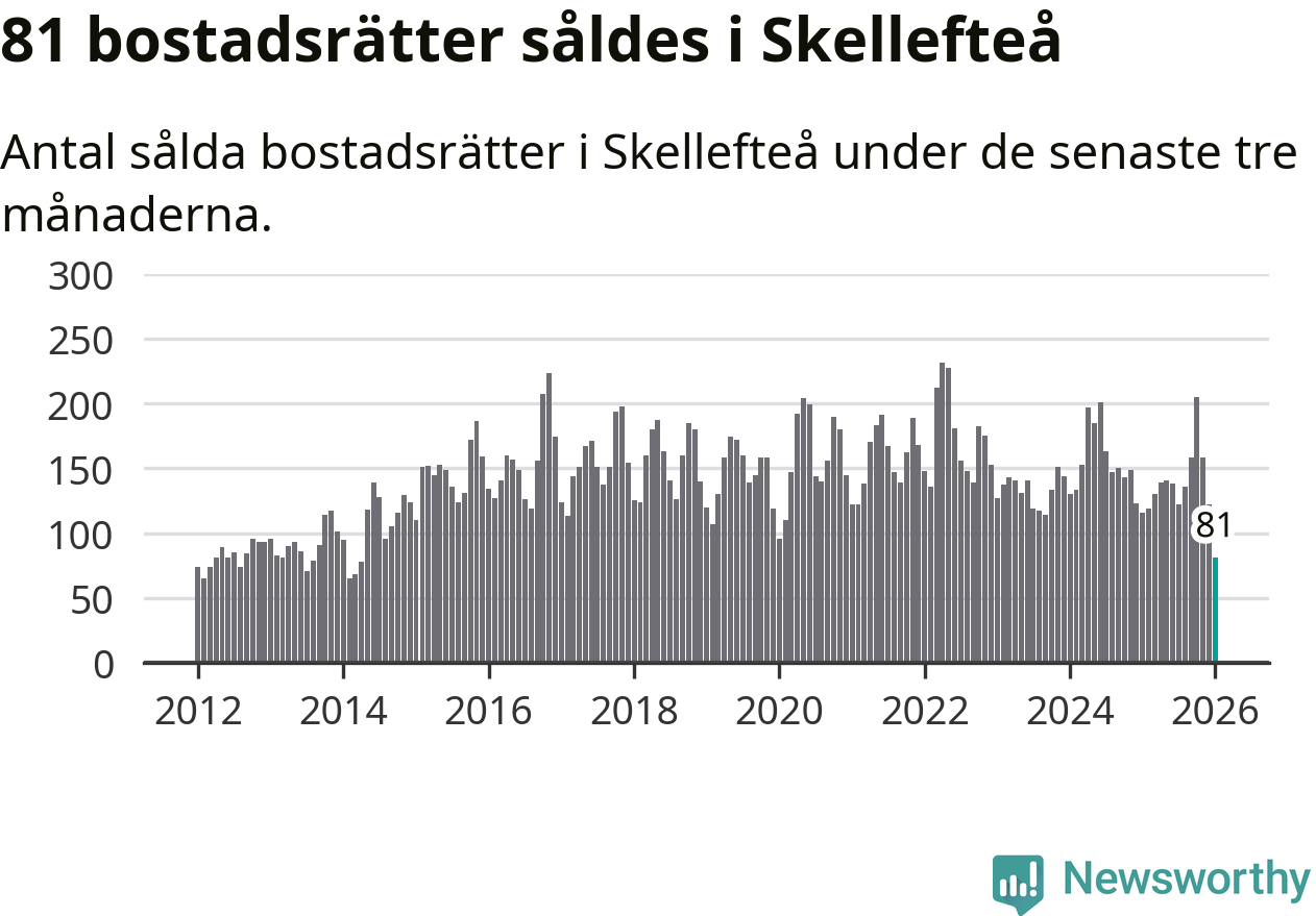 Mellan november och januari såldes 81 bostadsrätter i Skellefteå kommun. Det är färre än någon tremånadersperiod sedan 2014.