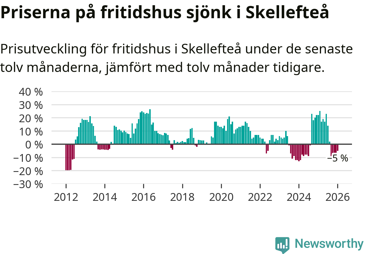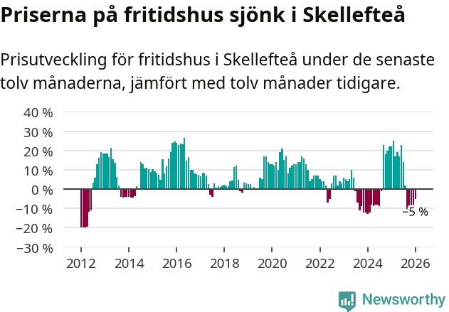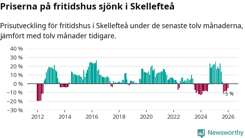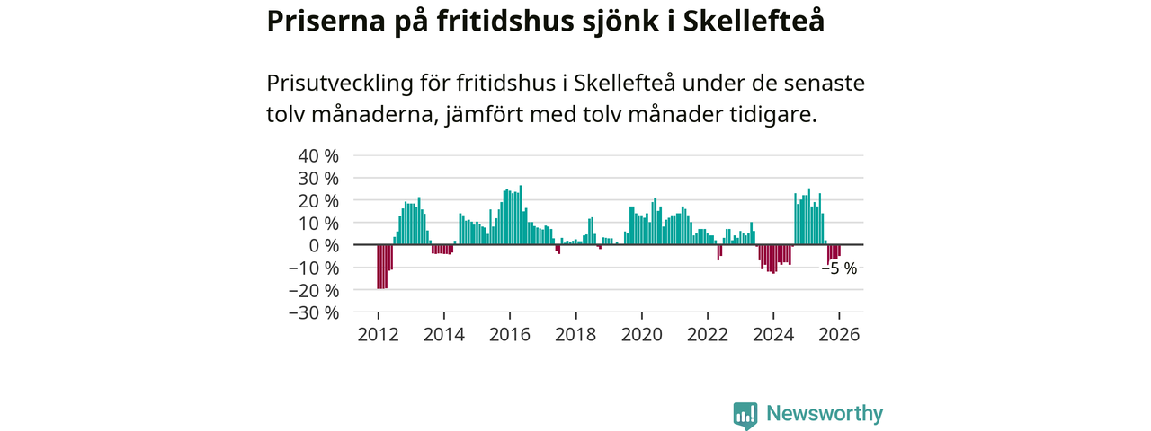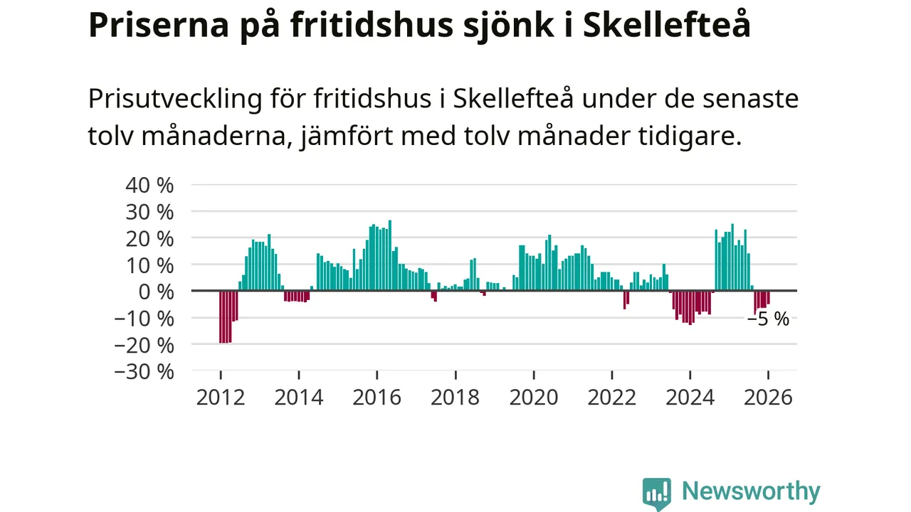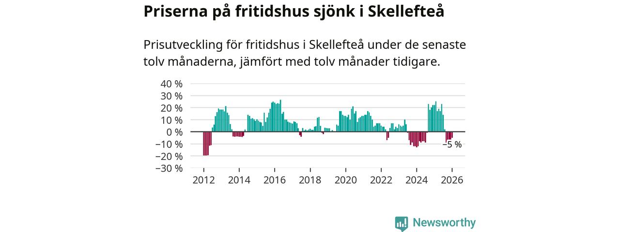 Priserna på fritidshus har gått ner i Skellefteå kommun. Medelpriset på försäljningarna under de senaste tolv månaderna visar på en nedgång med 5 procent.