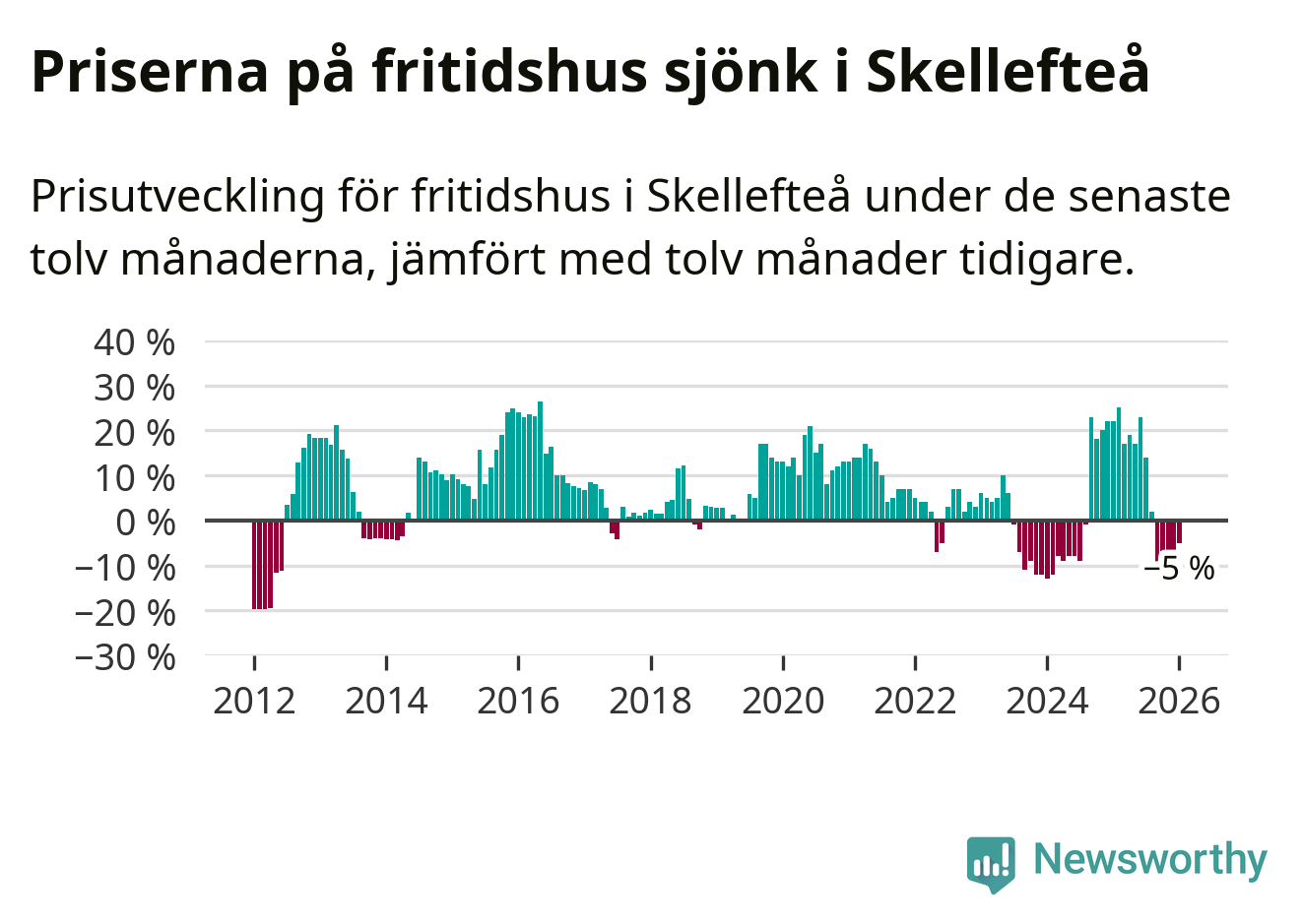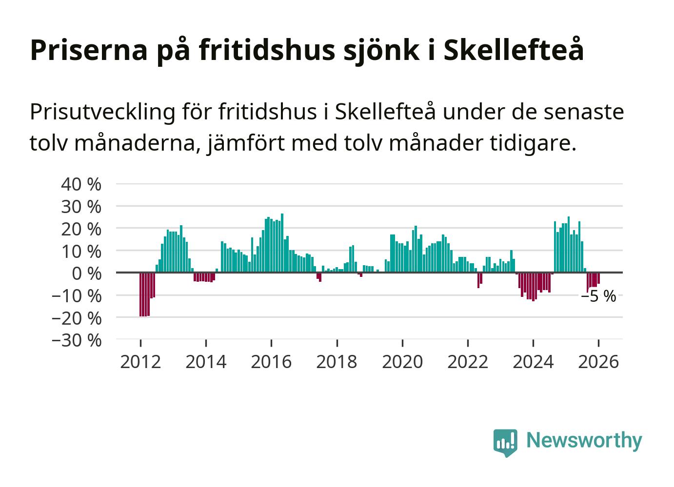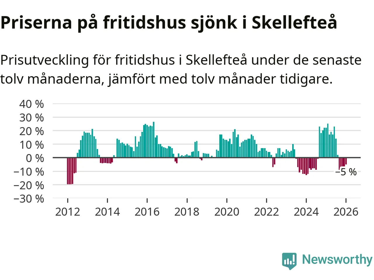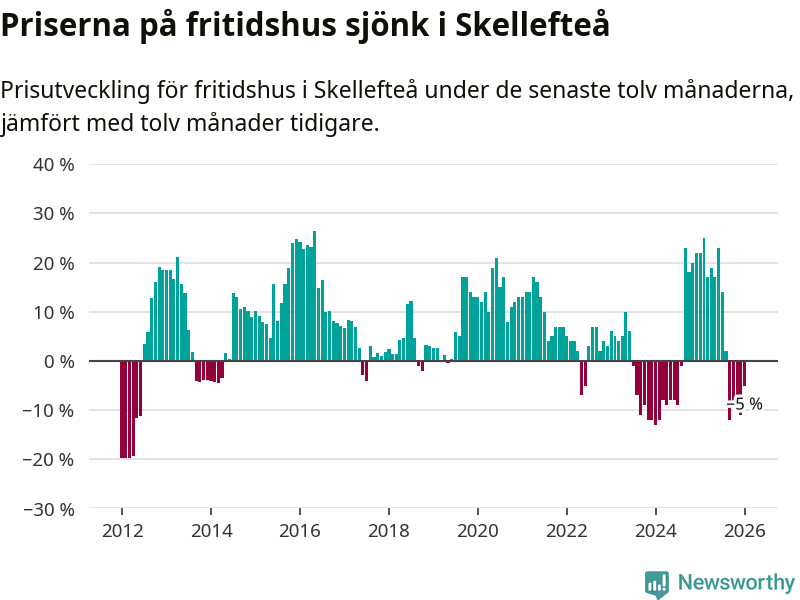 Priserna på fritidshus har gått ner i Skellefteå kommun. Medelpriset på försäljningarna under de senaste tolv månaderna visar på en nedgång med 5 procent.