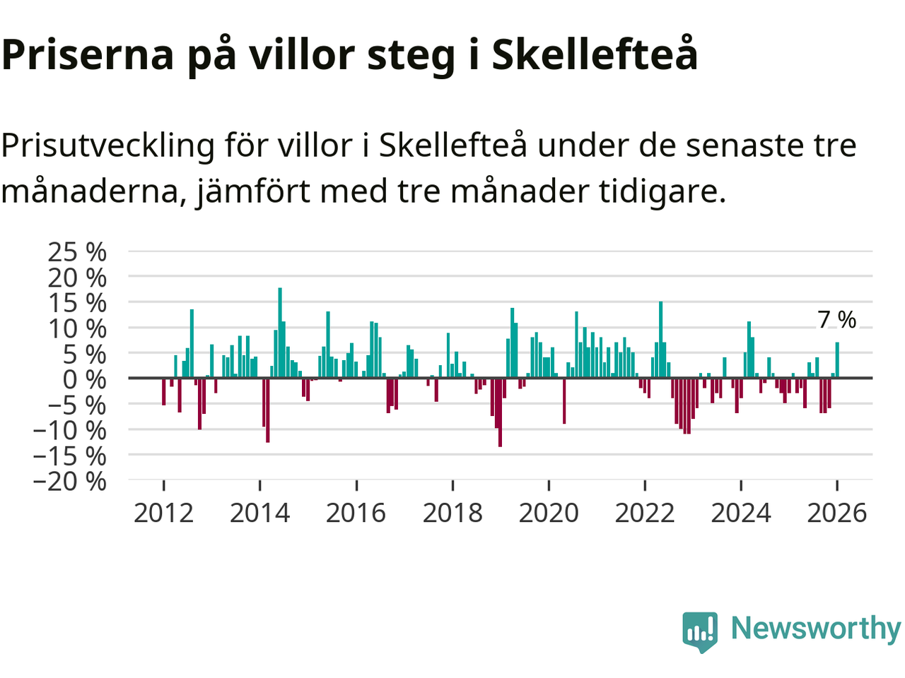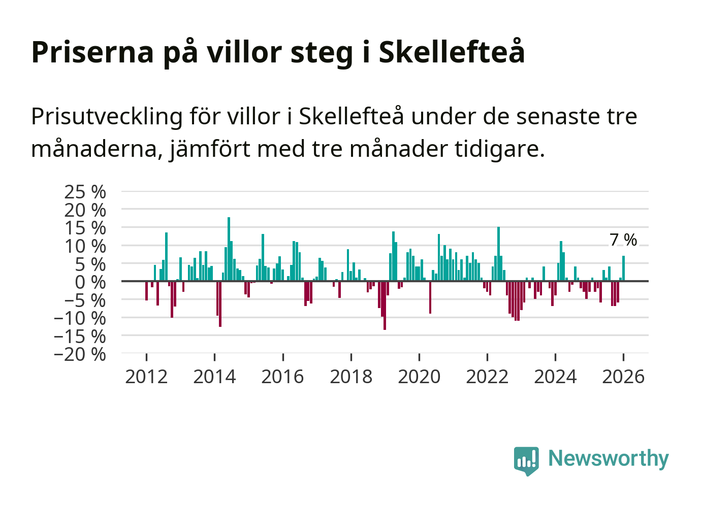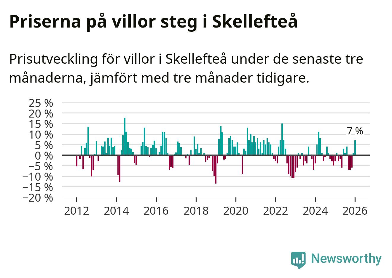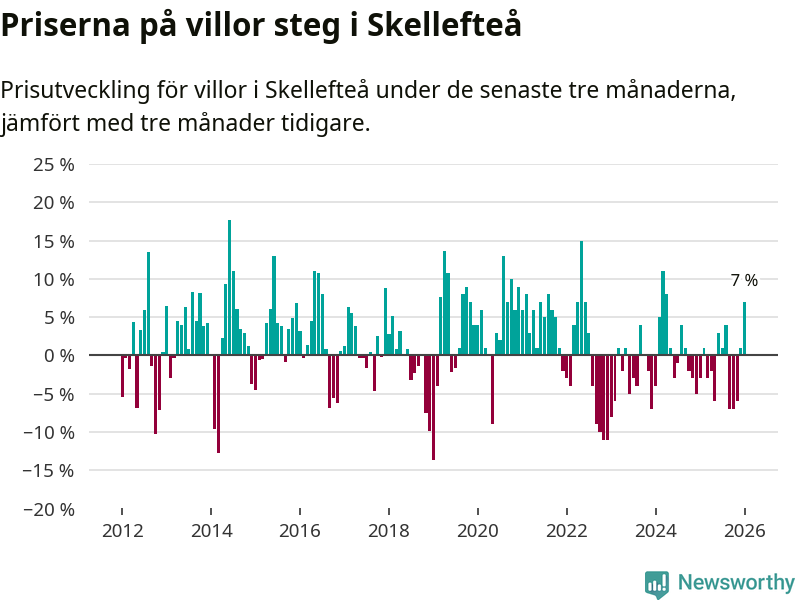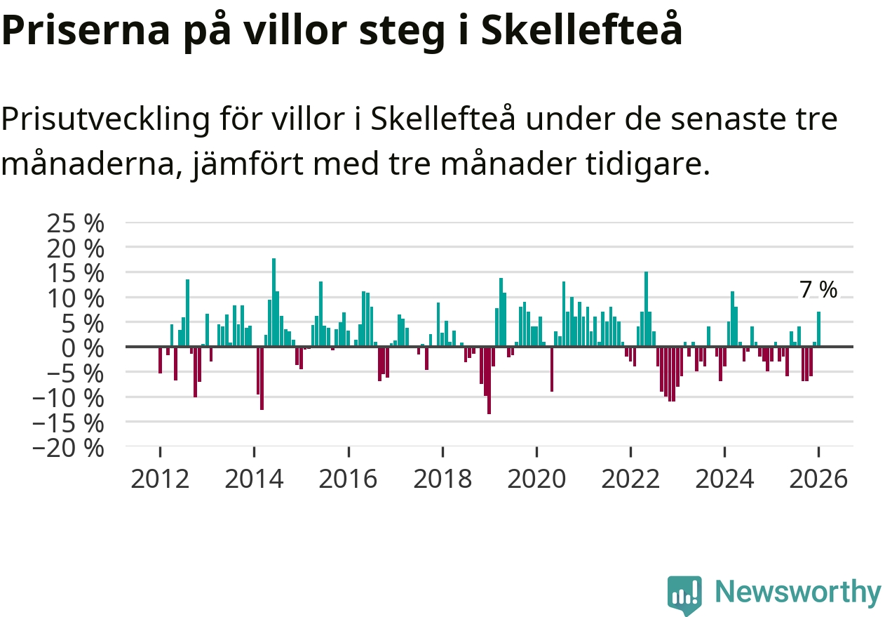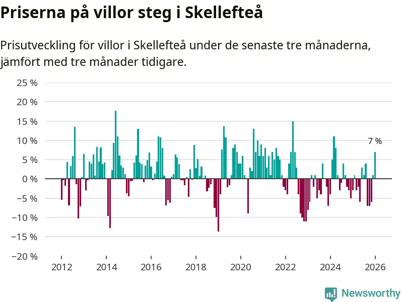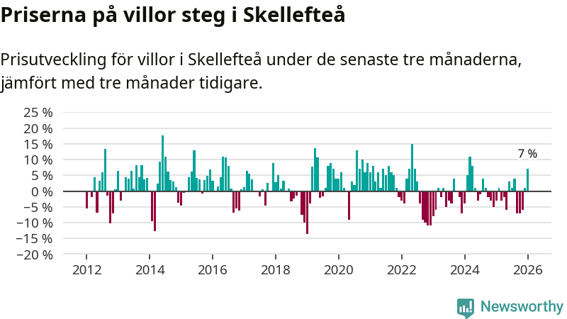 Villapriserna steg mellan november och januari med 7 procent i Skellefteå kommun. Det är en betydande uppgång jämfört med det gångna året då priserna i snitt sjunkit med 1 procent.