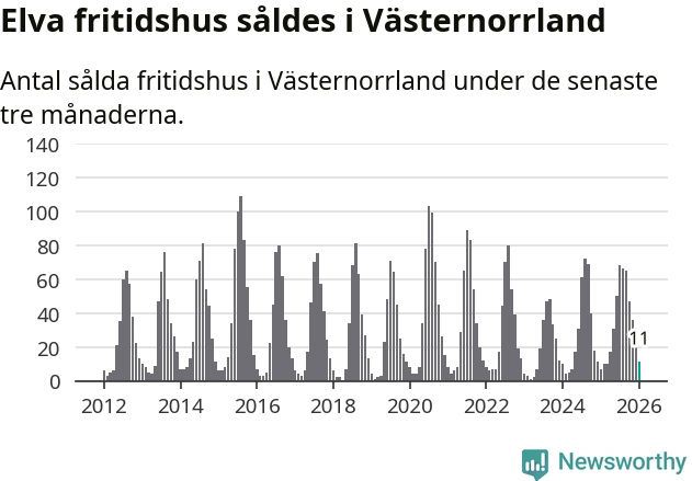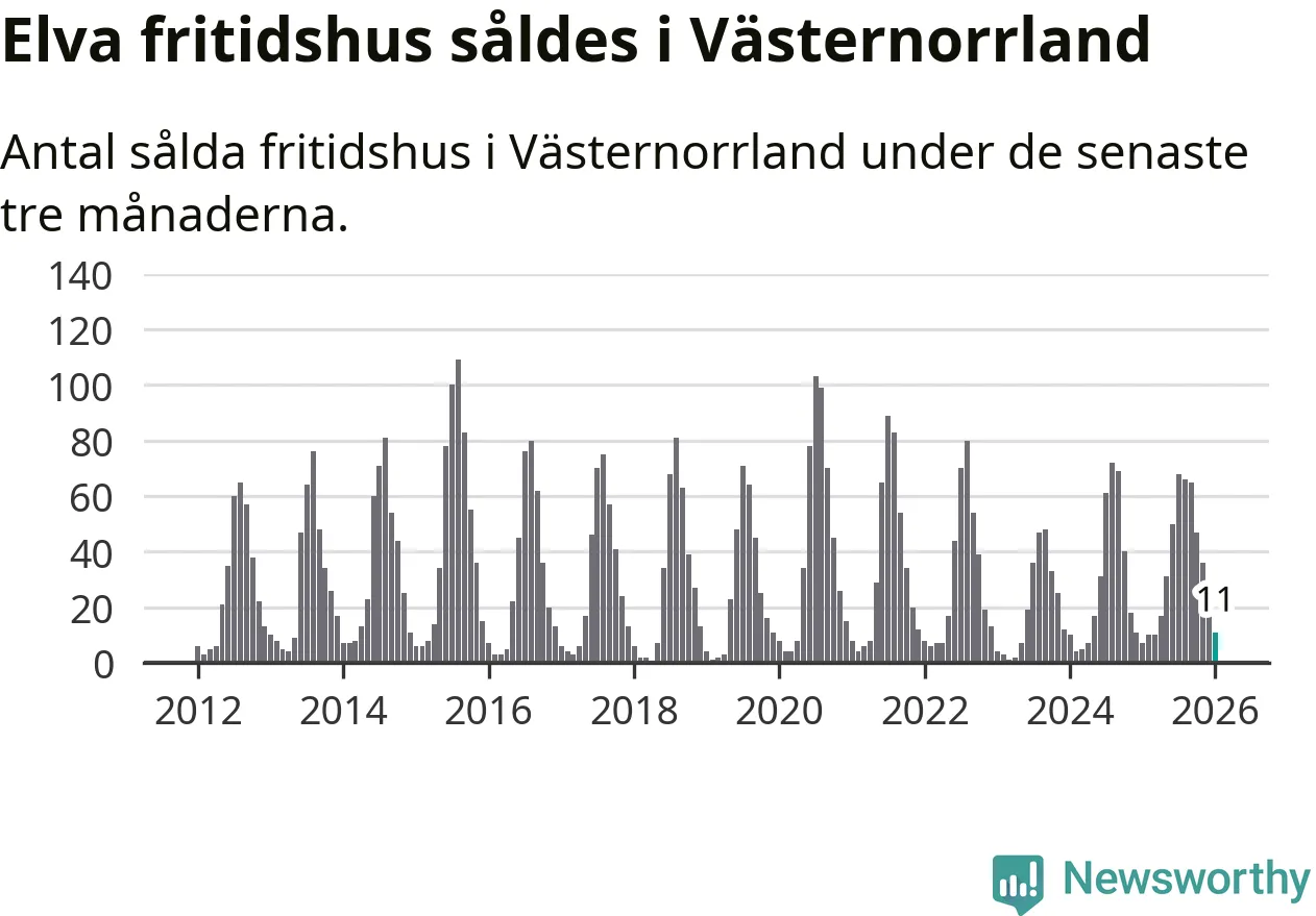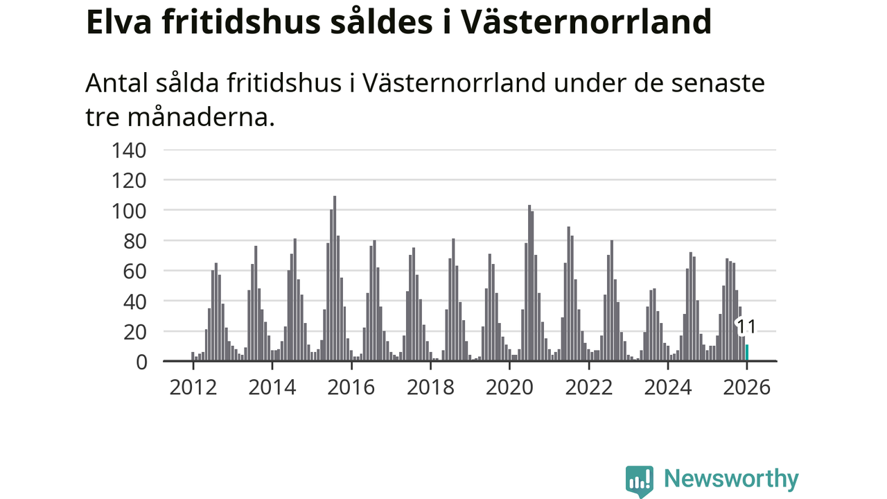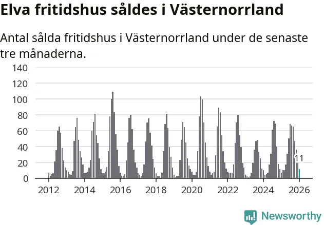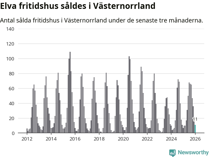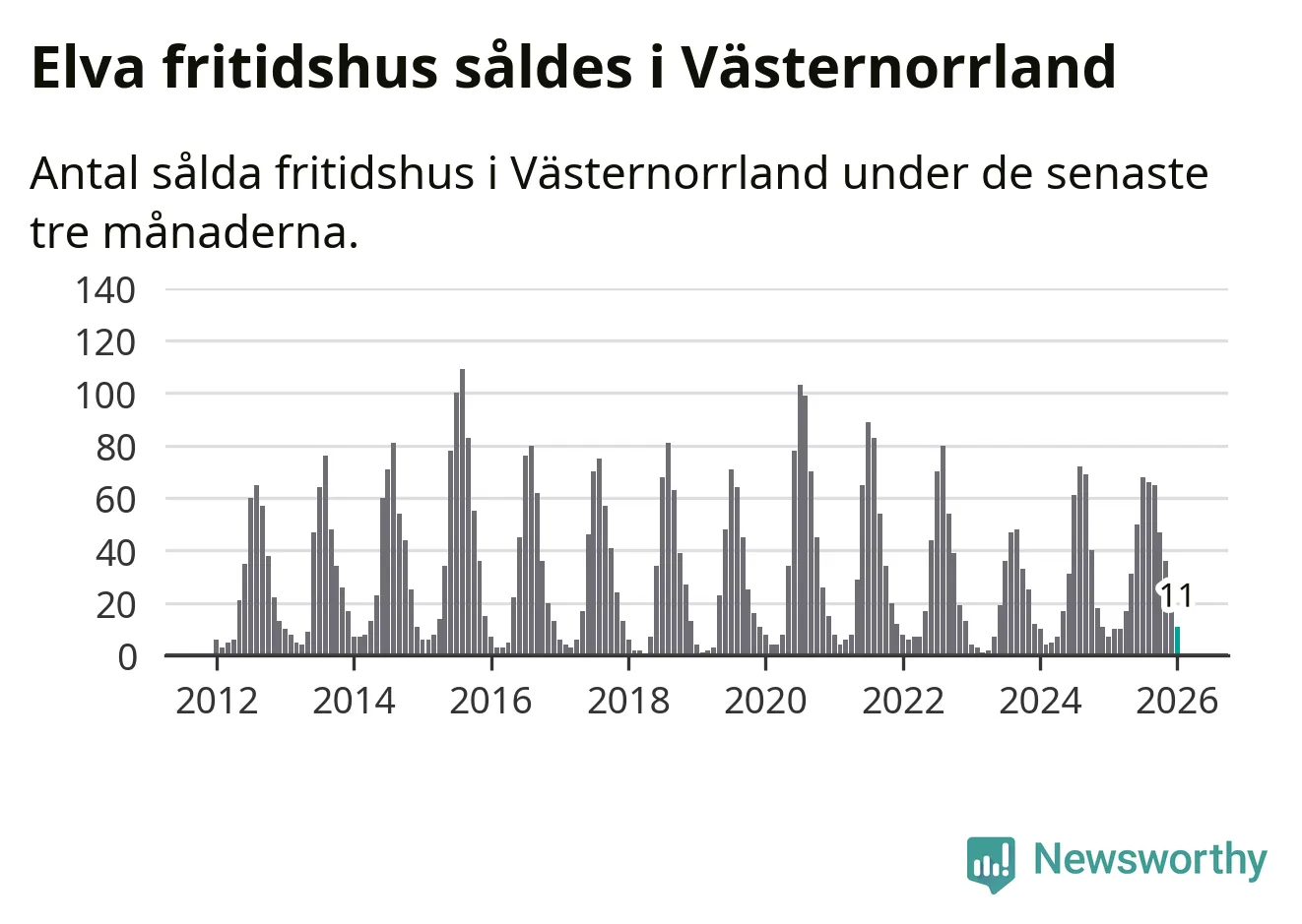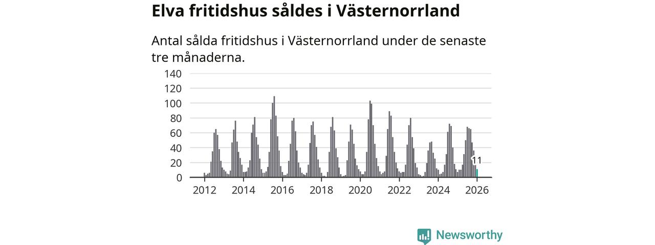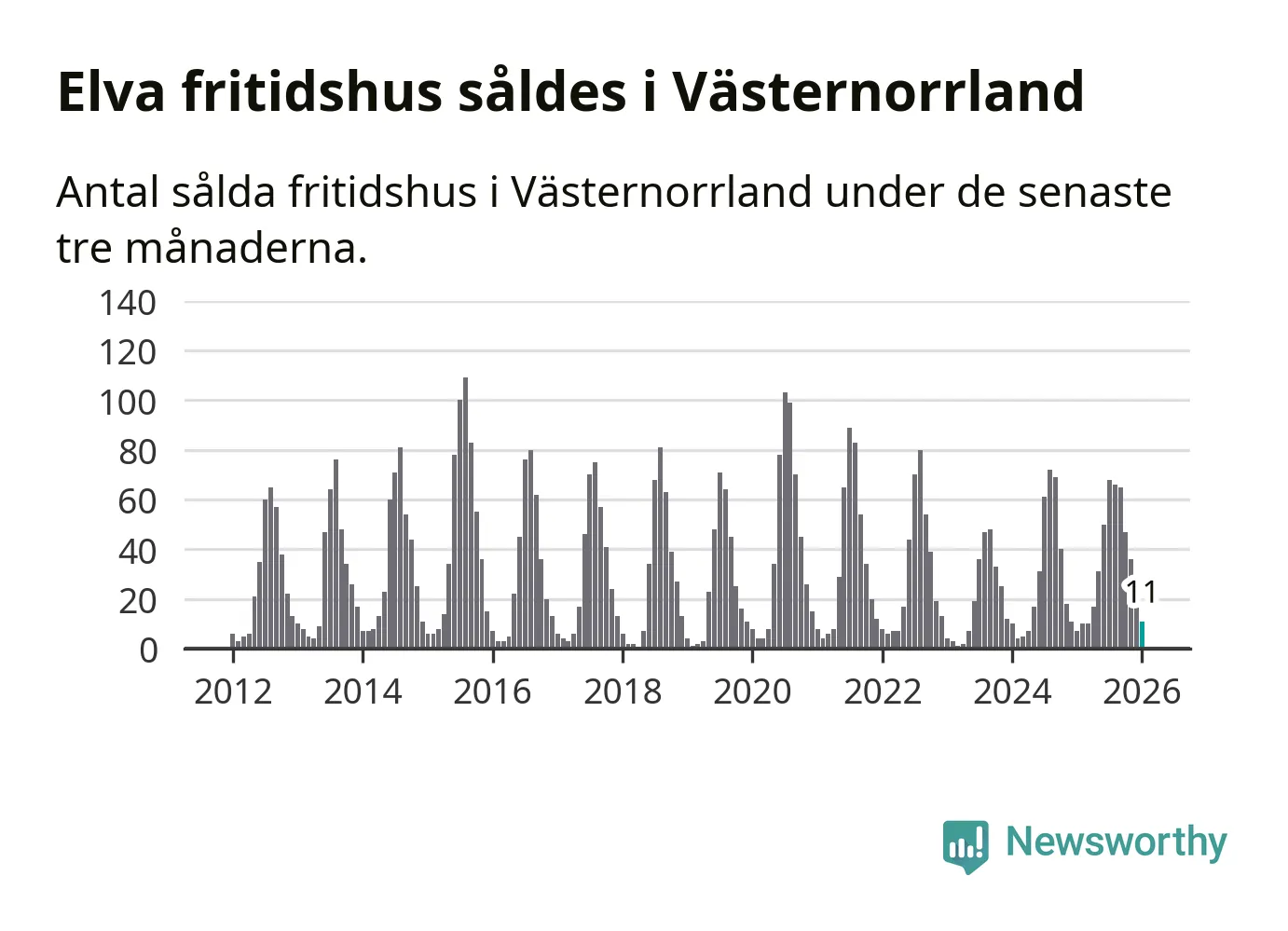 Sammanlagt såldes elva fritidshus i Västernorrlands län mellan november 2025 och januari till ett genomsnittligt pris på 1,2 miljoner kronor. I fjol gjordes sju affärer vid den här tiden på året.