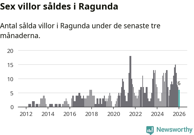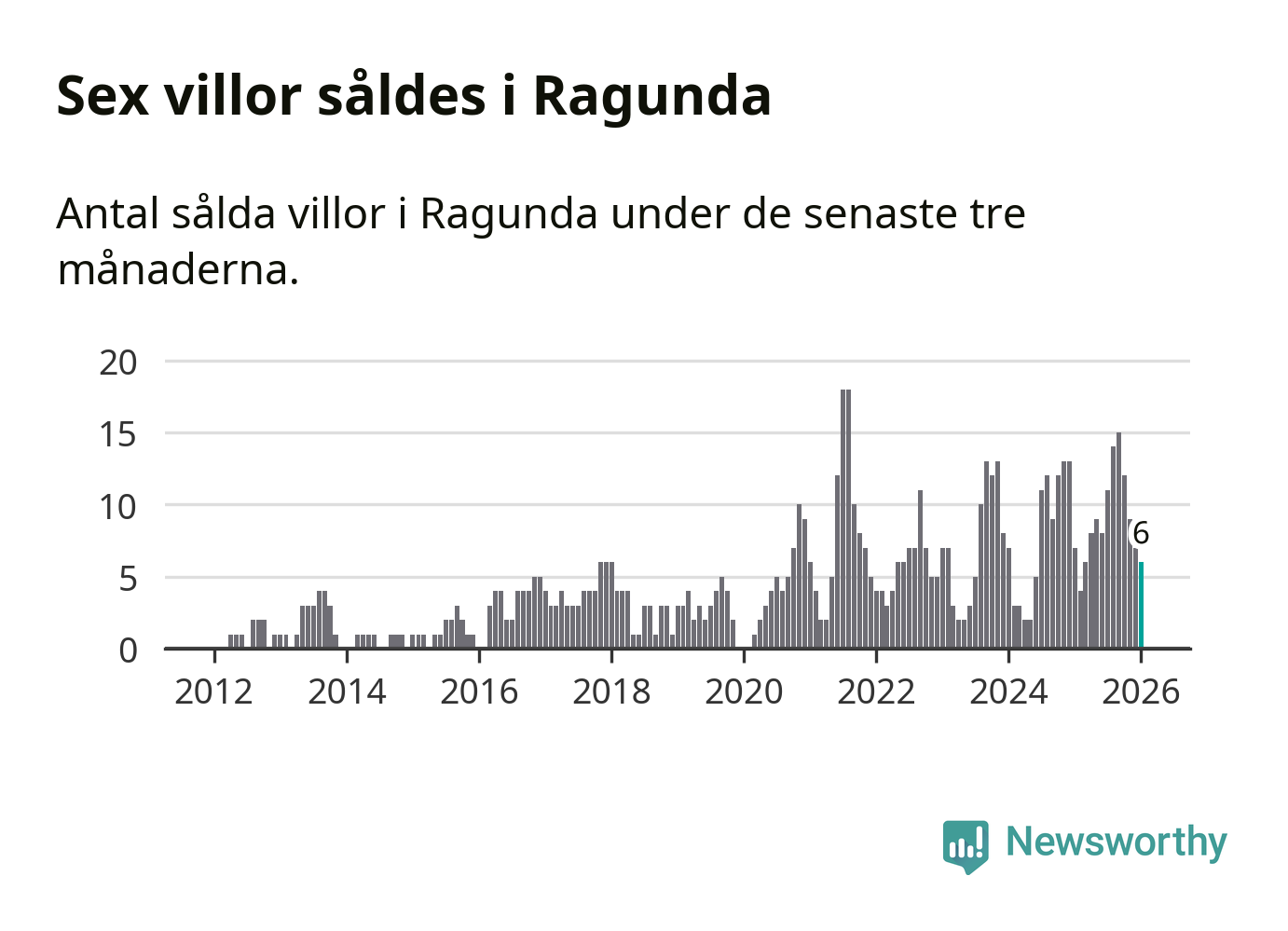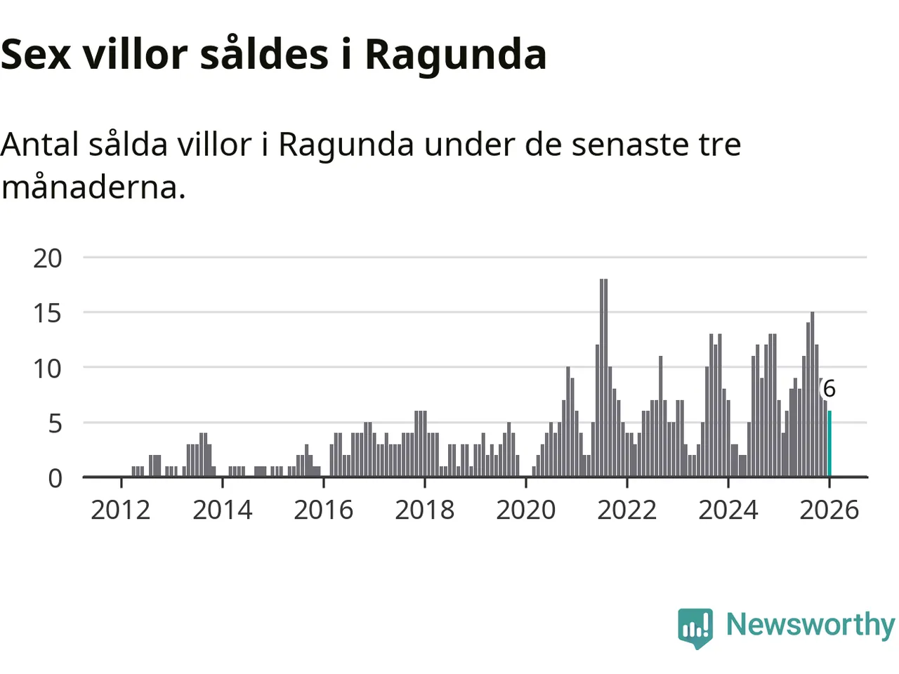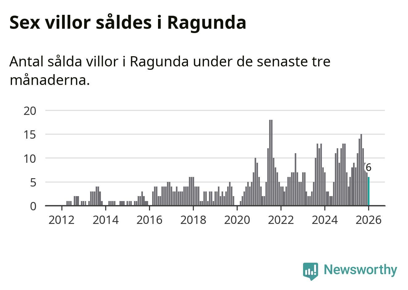 Mellan november och januari gjordes sammanlagt sex affärer med villor i Ragunda kommun. Det kan jämföras med sju vid motsvarande tid i fjol.