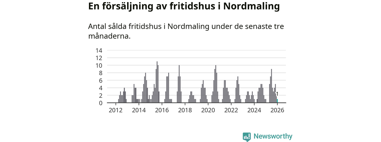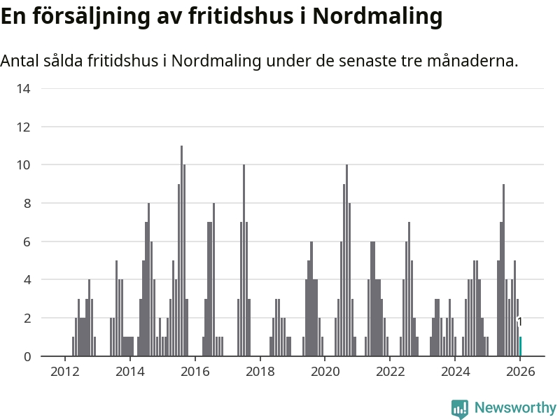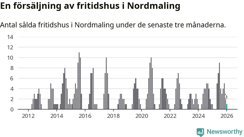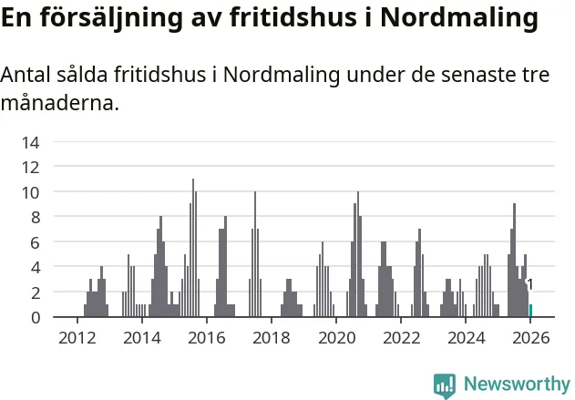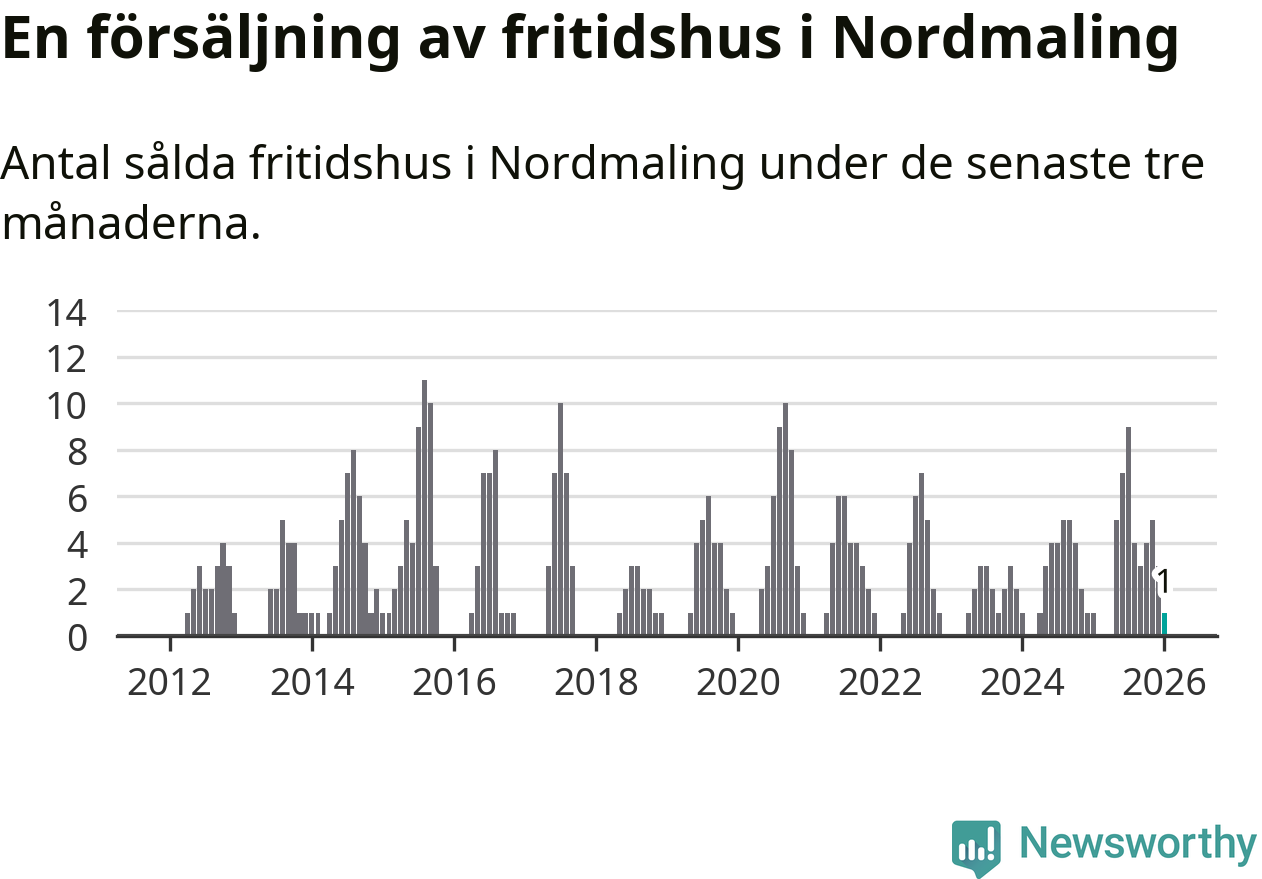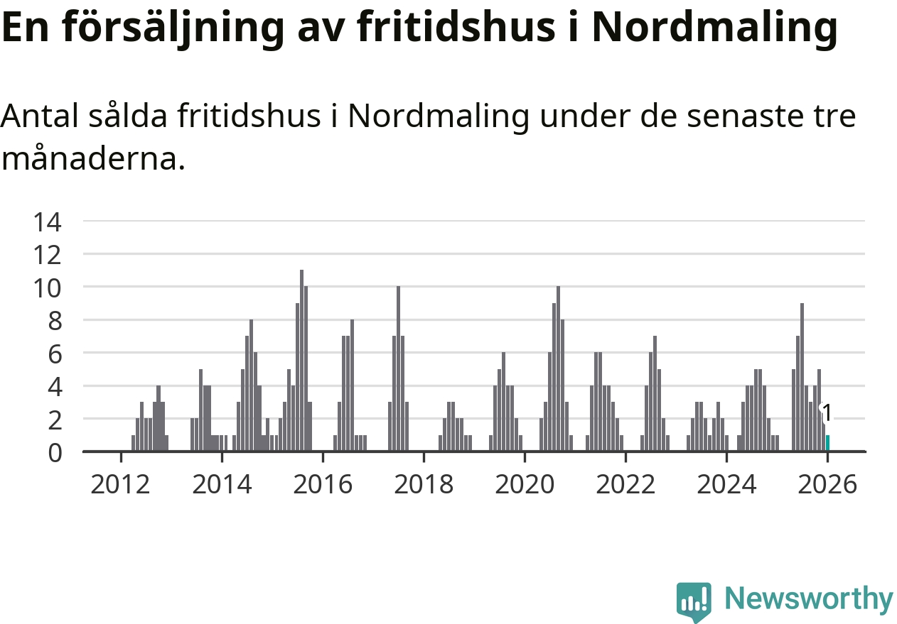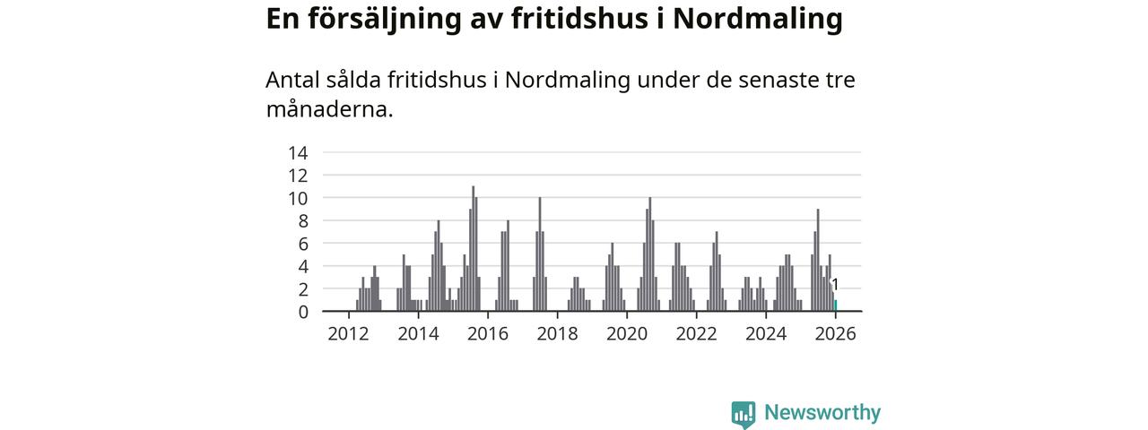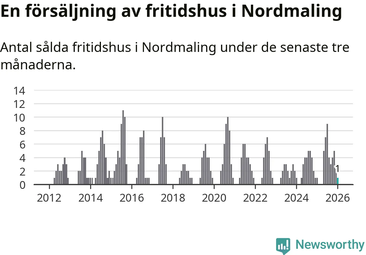 Mellan november och januari gjordes sammanlagt en affär med fritidshus i Nordmalings kommun. Det är lika många affärer som vid motsvarande tid i fjol.
