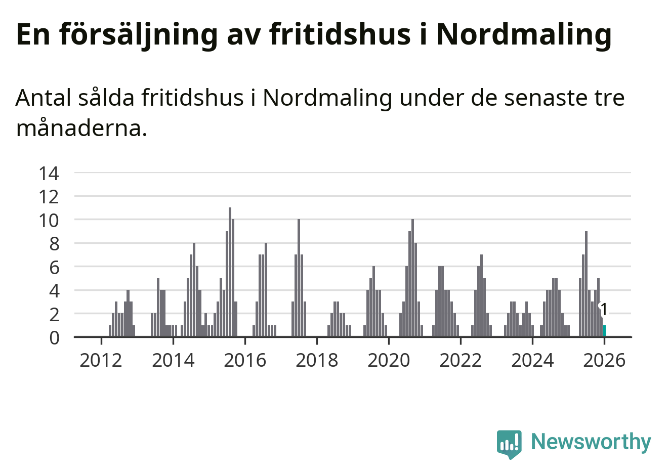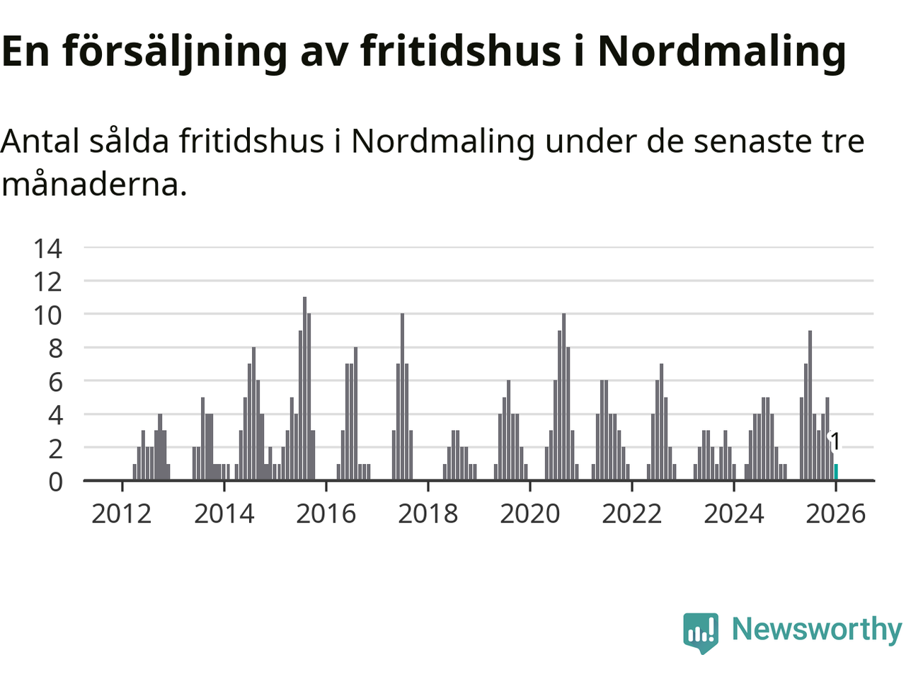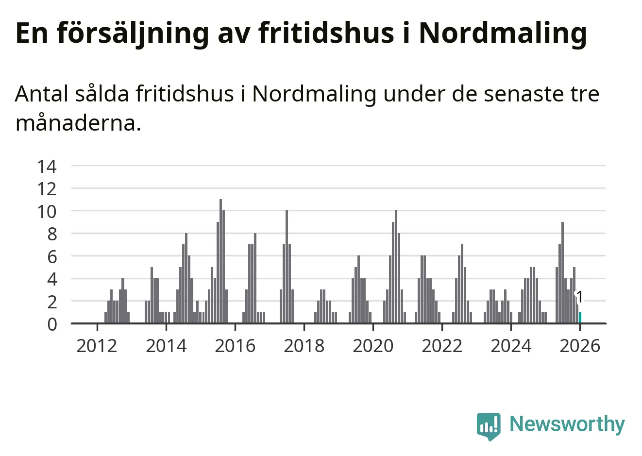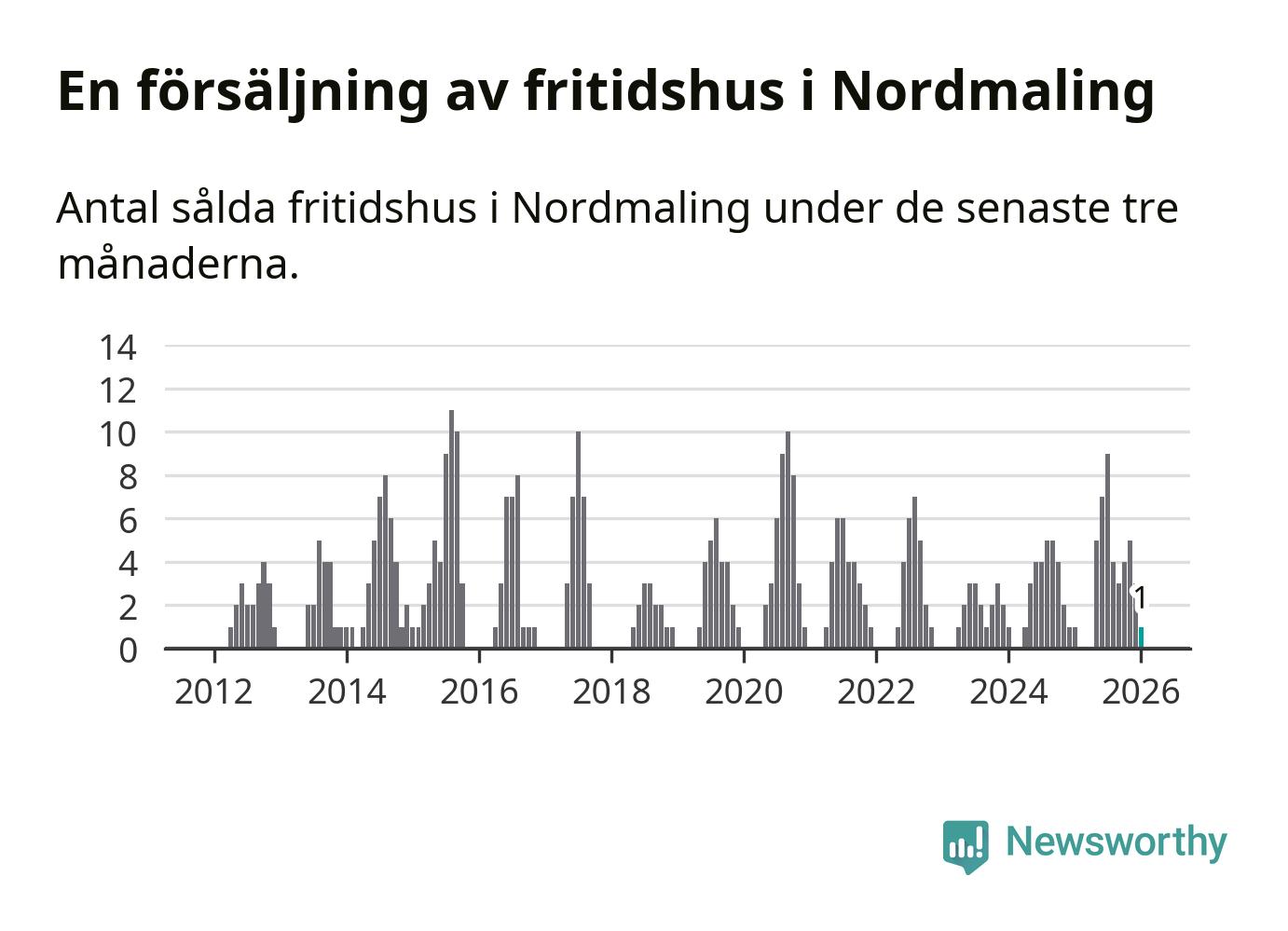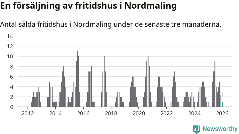 Mellan november och januari gjordes sammanlagt en affär med fritidshus i Nordmalings kommun. Det är lika många affärer som vid motsvarande tid i fjol.