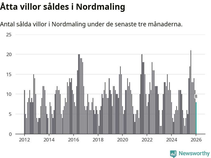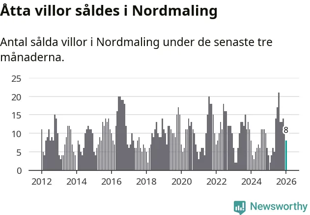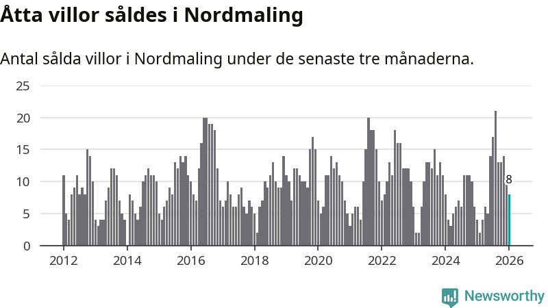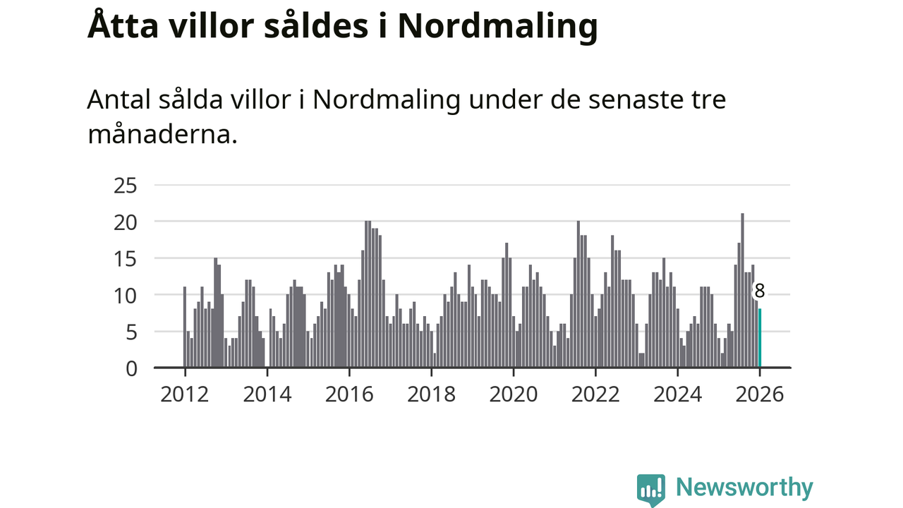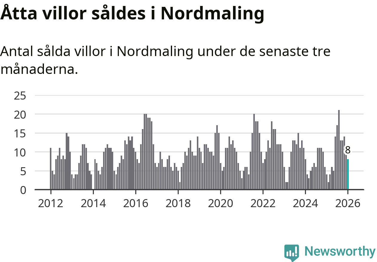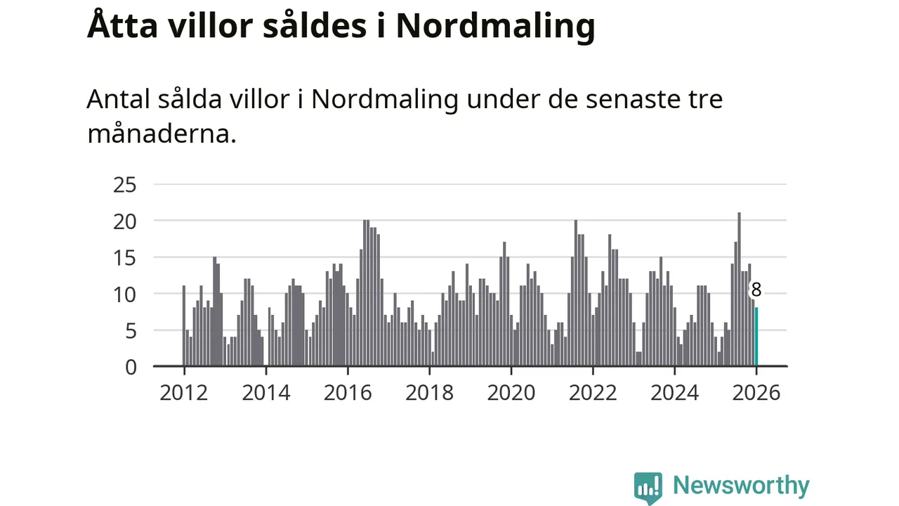 Mellan november och januari gjordes sammanlagt åtta affärer med villor i Nordmalings kommun. Det kan jämföras med fyra vid motsvarande tid i fjol.