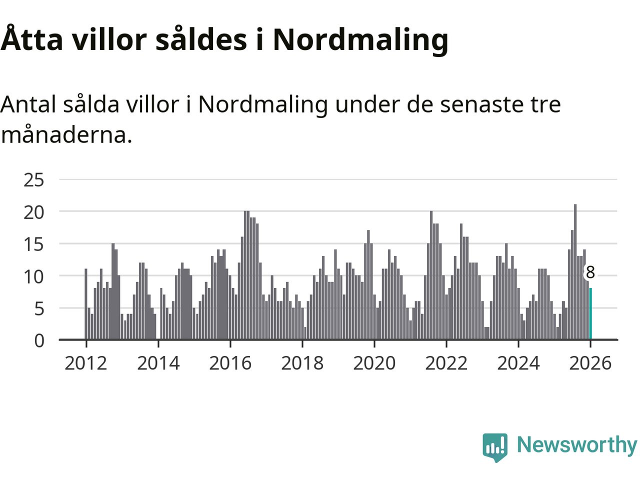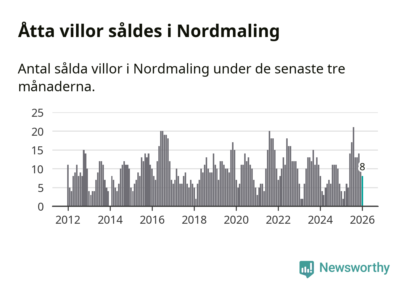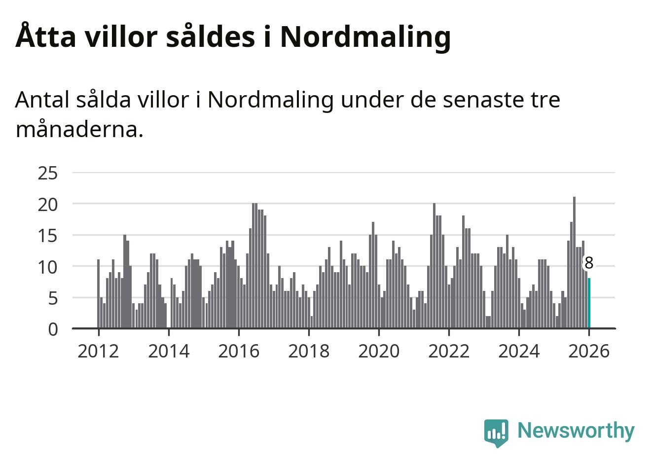 Graf: Antal sålda villor i Nordmalings kommun