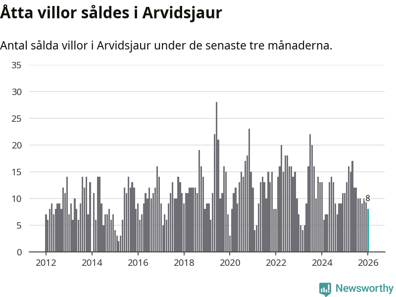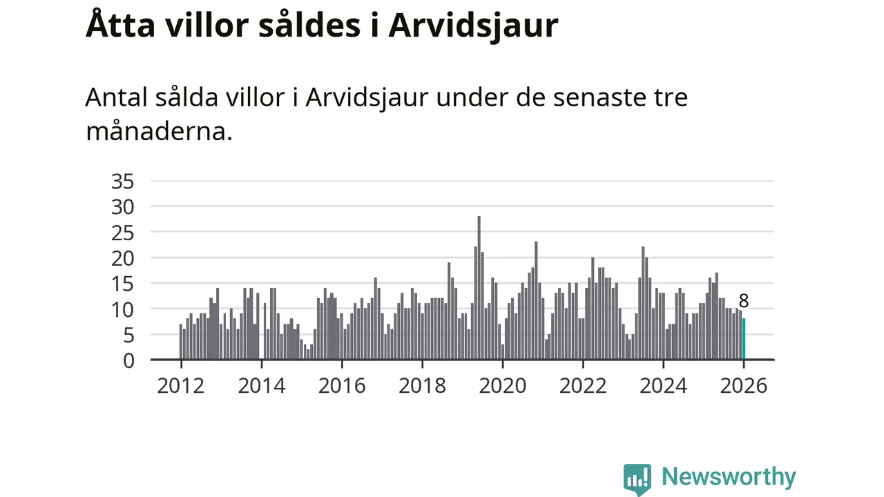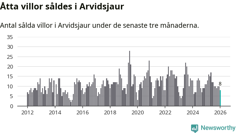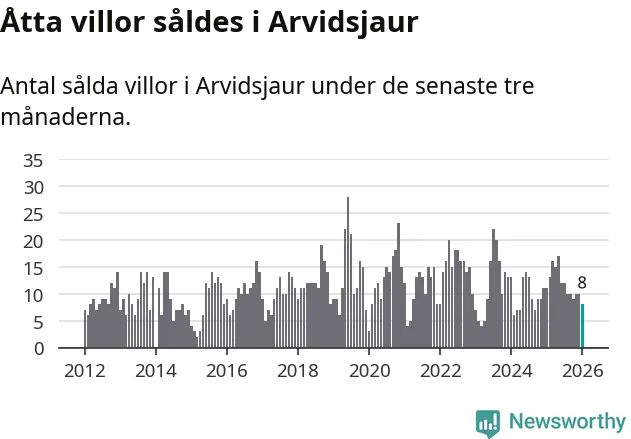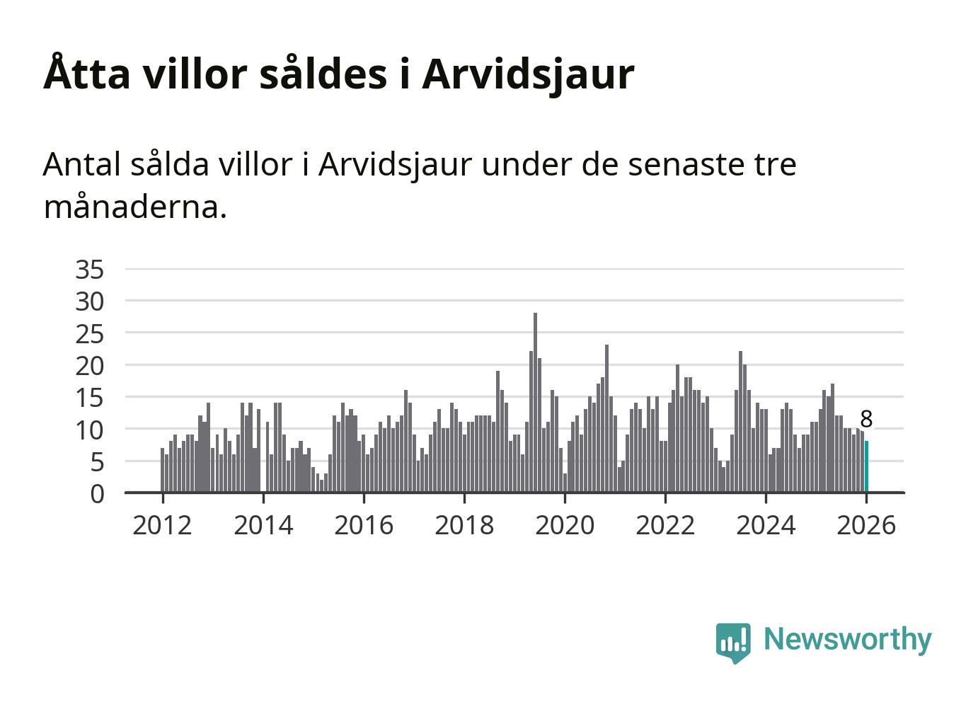 Mellan november och januari gjordes sammanlagt åtta affärer med villor i Arvidsjaurs kommun. Det kan jämföras med elva vid motsvarande tid i fjol.