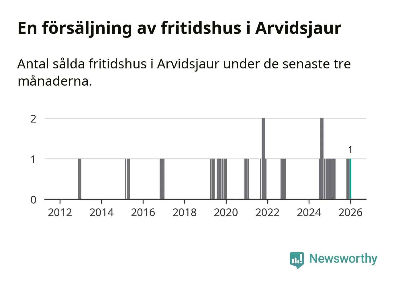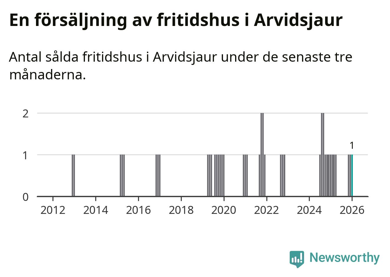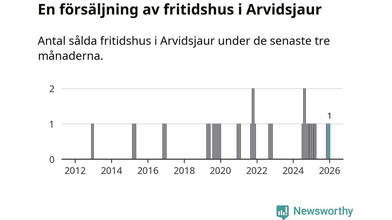 Mellan november och januari gjordes sammanlagt en affär med fritidshus i Arvidsjaurs kommun. Det är lika många affärer som vid motsvarande tid i fjol.