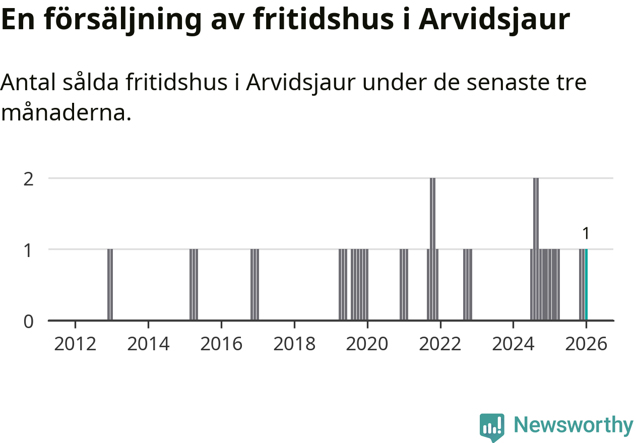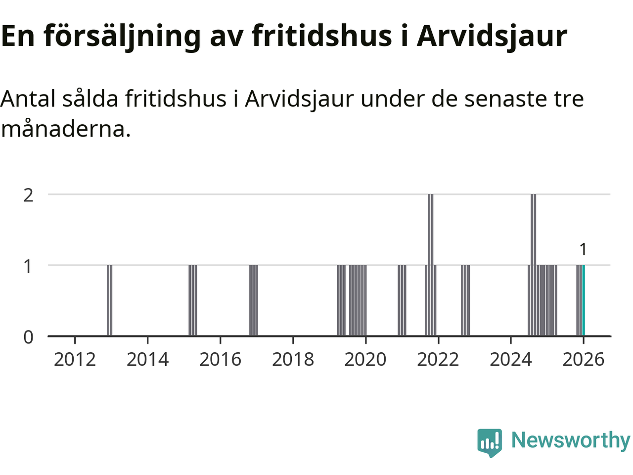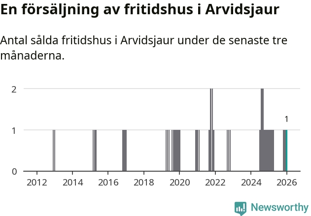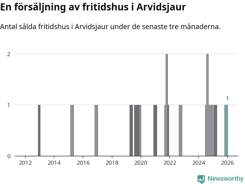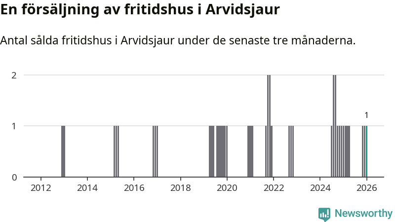 Mellan november och januari gjordes sammanlagt en affär med fritidshus i Arvidsjaurs kommun. Det är lika många affärer som vid motsvarande tid i fjol.
