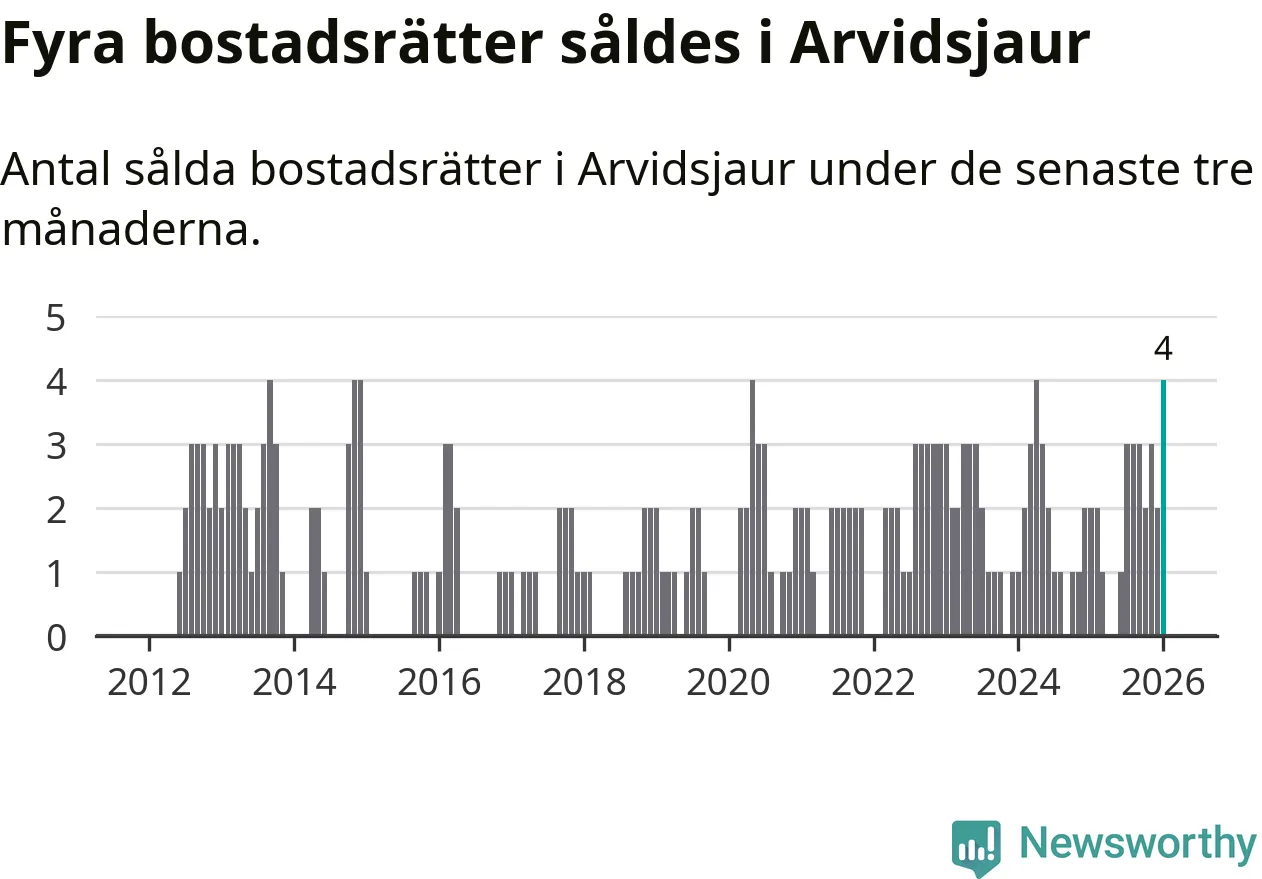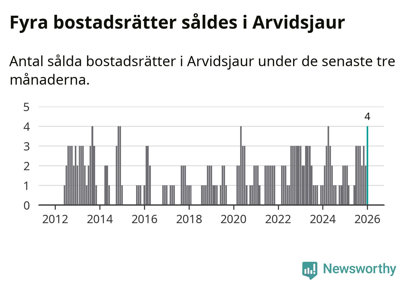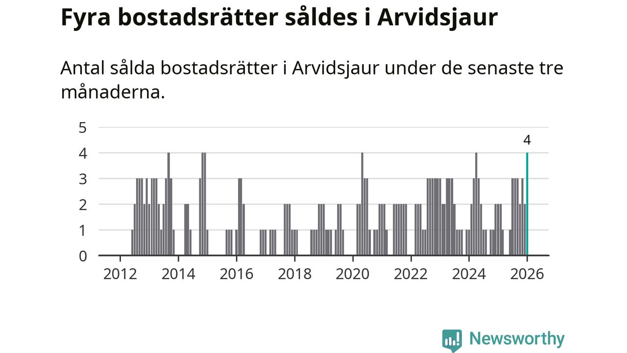 Mellan november och januari gjordes sammanlagt fyra affärer med bostadsrätter i Arvidsjaurs kommun. Det kan jämföras med två vid motsvarande tid i fjol.