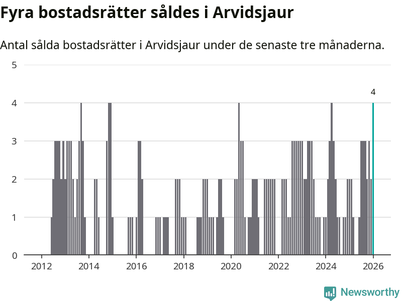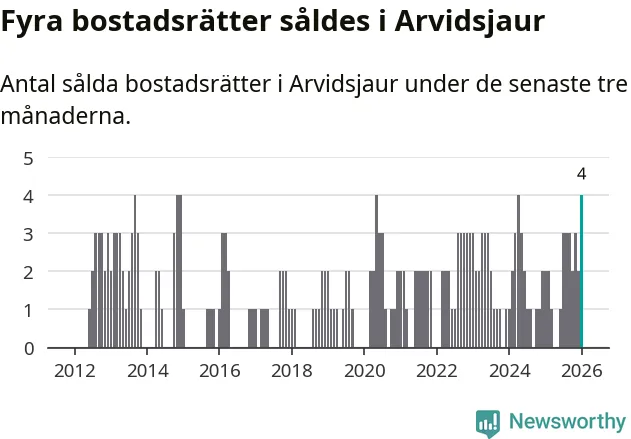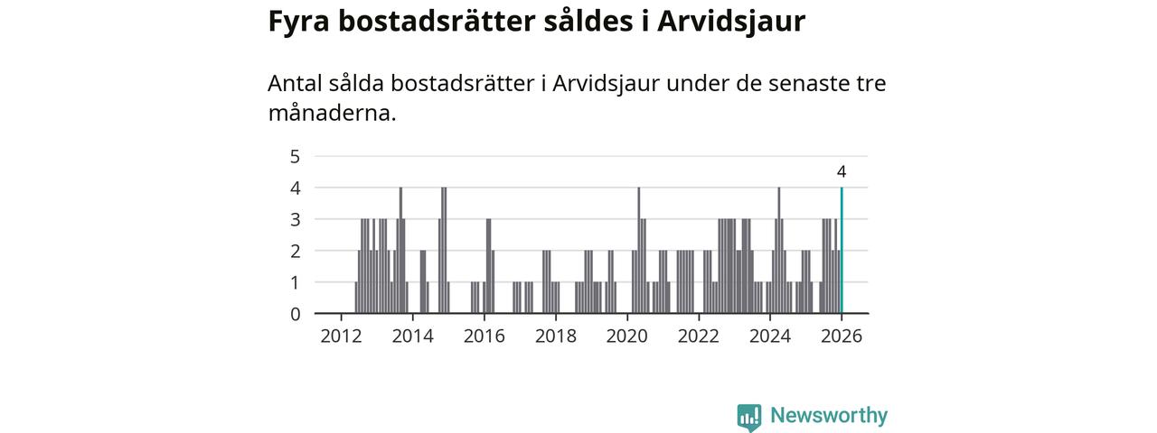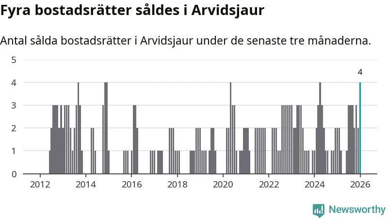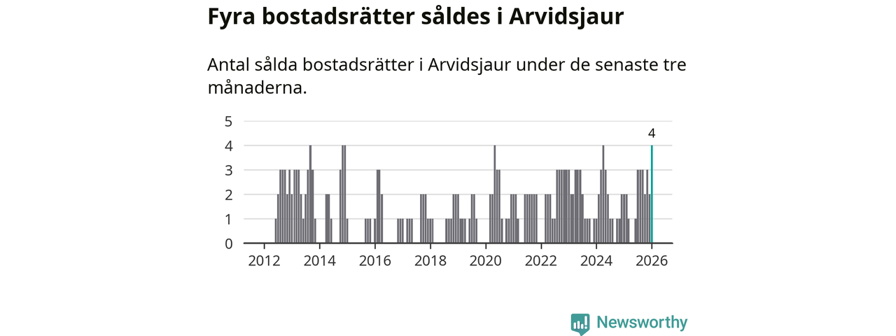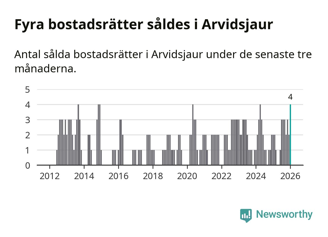 Mellan november och januari gjordes sammanlagt fyra affärer med bostadsrätter i Arvidsjaurs kommun. Det kan jämföras med två vid motsvarande tid i fjol.