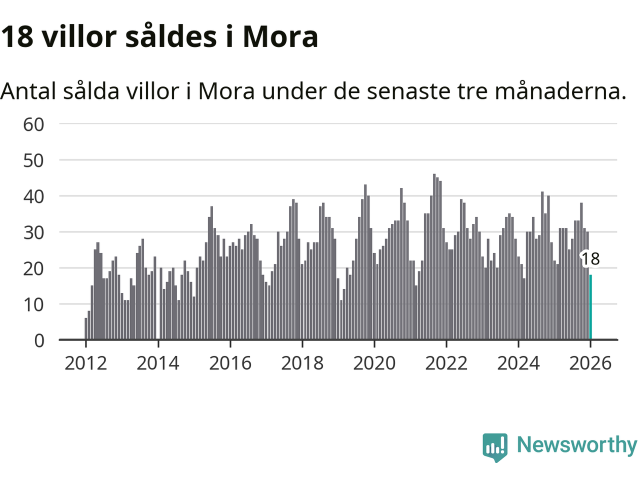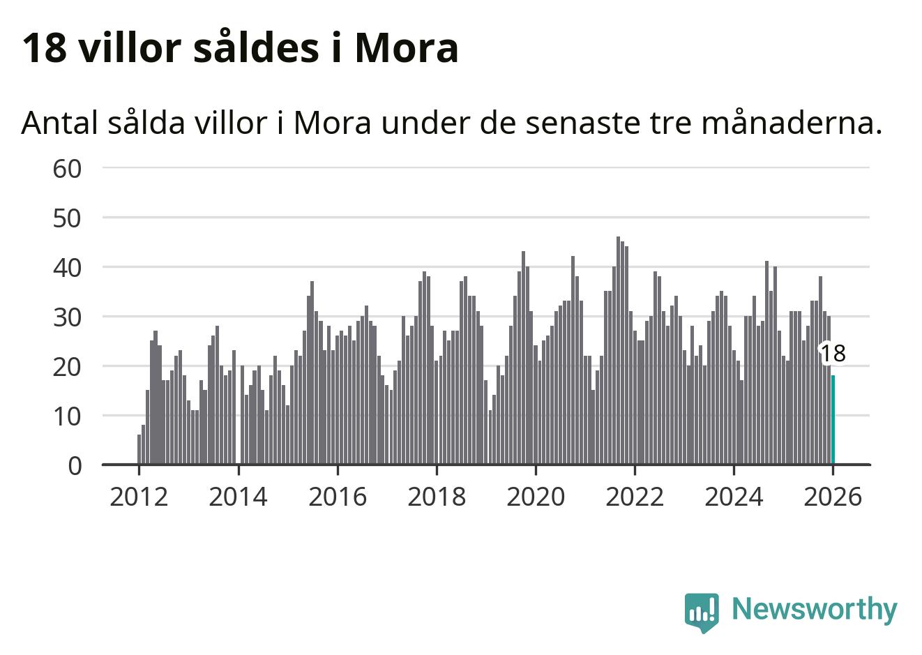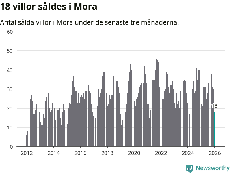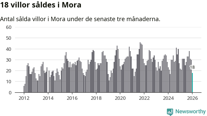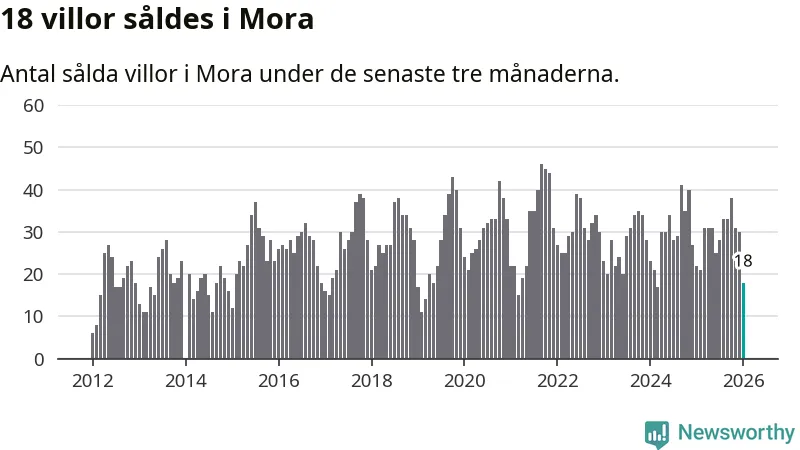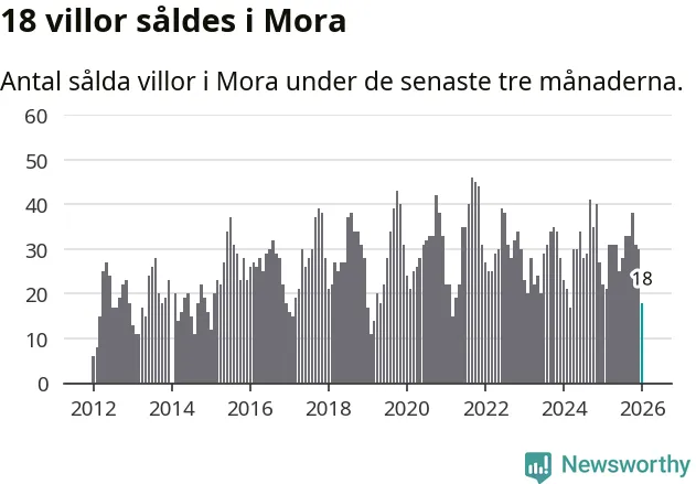 Mellan november och januari gjordes sammanlagt 18 affärer med villor i Mora kommun. Det kan jämföras med 22 vid motsvarande tid i fjol.