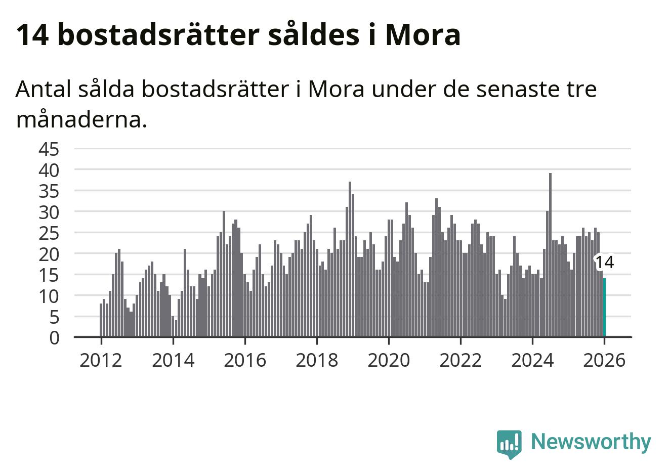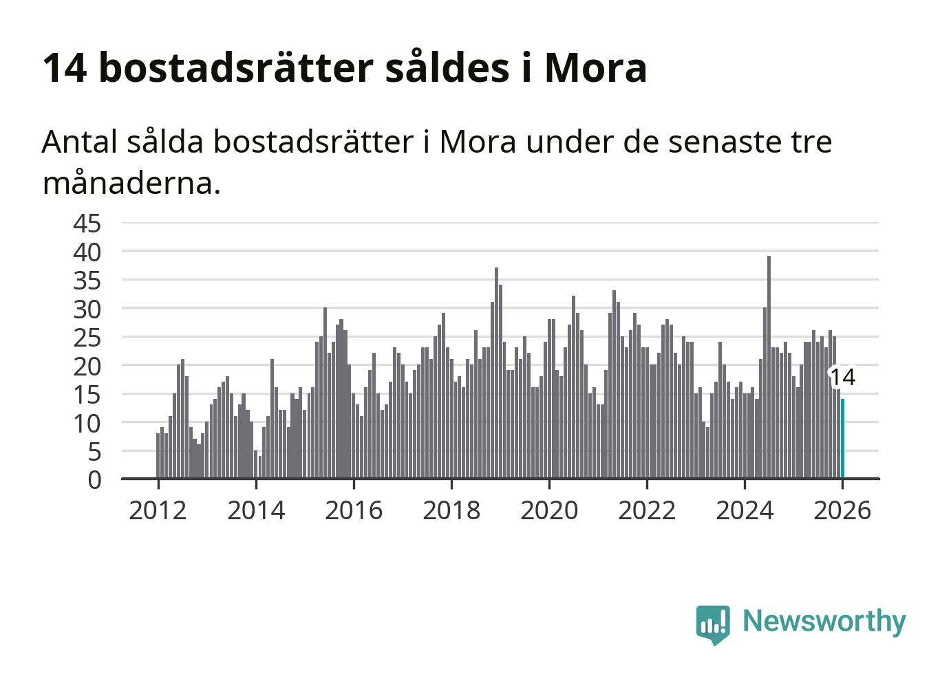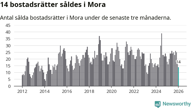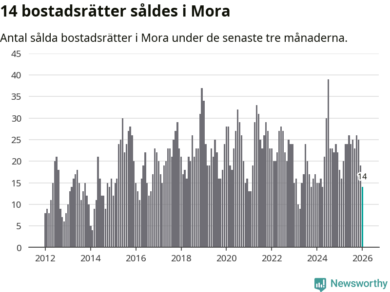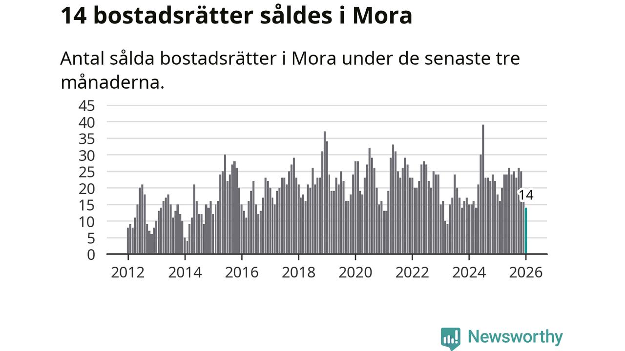 Mellan november och januari gjordes sammanlagt 14 affärer med bostadsrätter i Mora kommun. Det kan jämföras med 18 vid motsvarande tid i fjol.