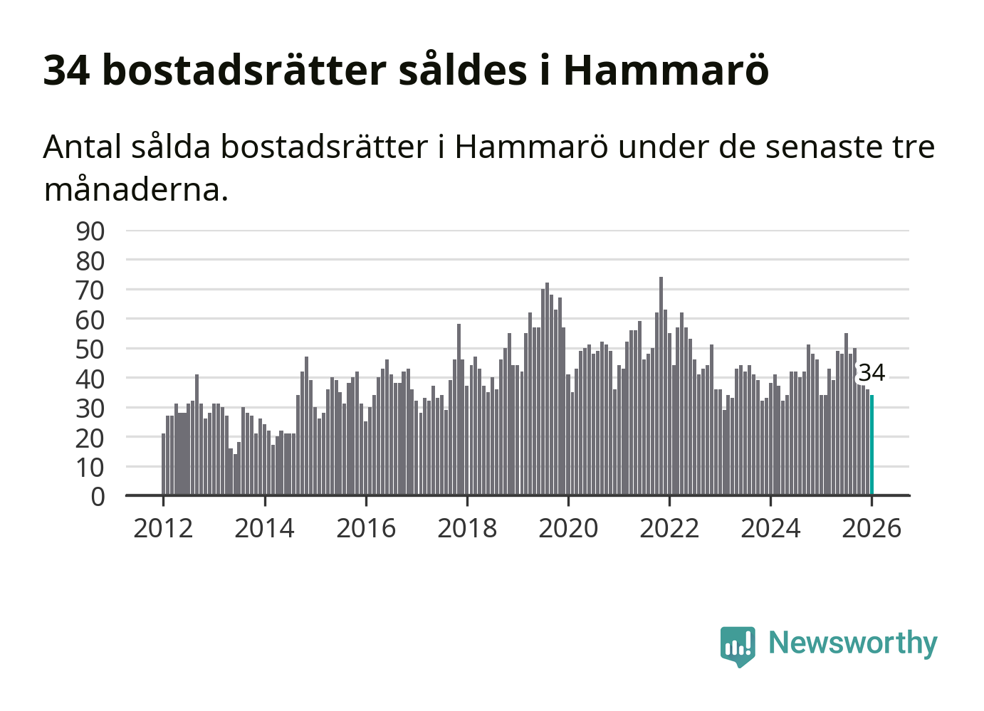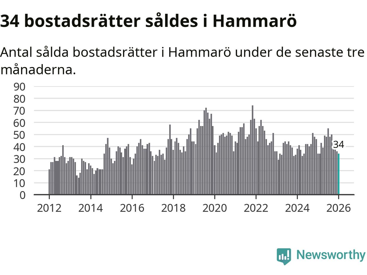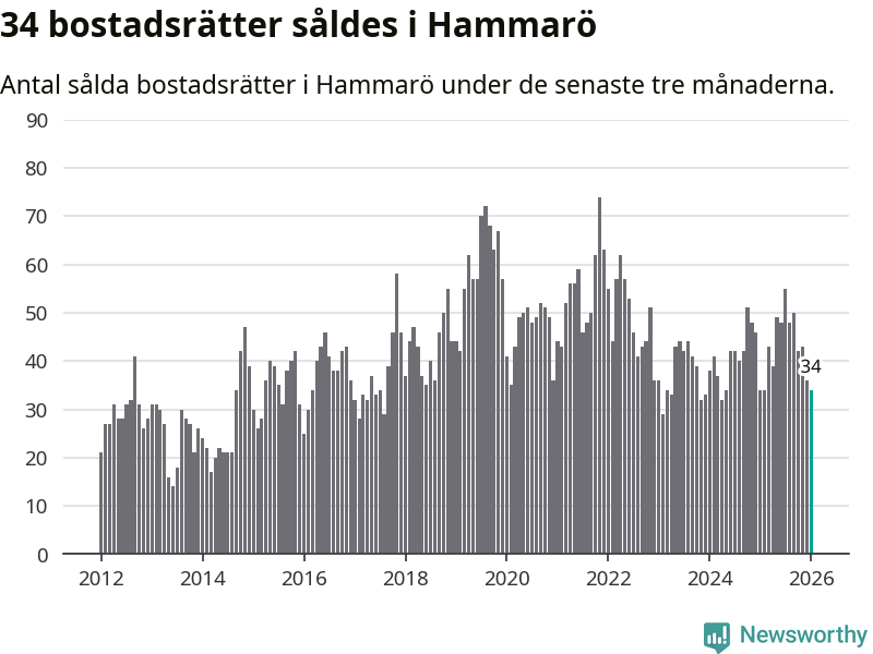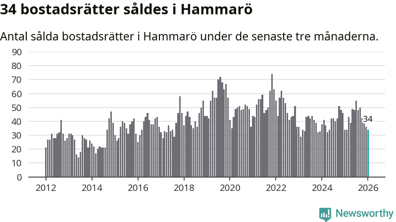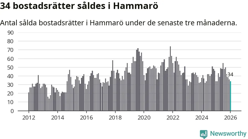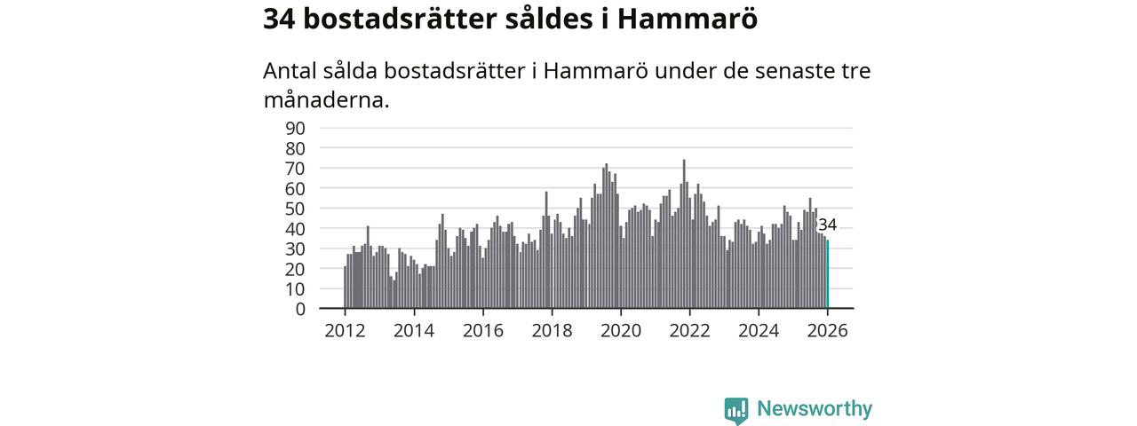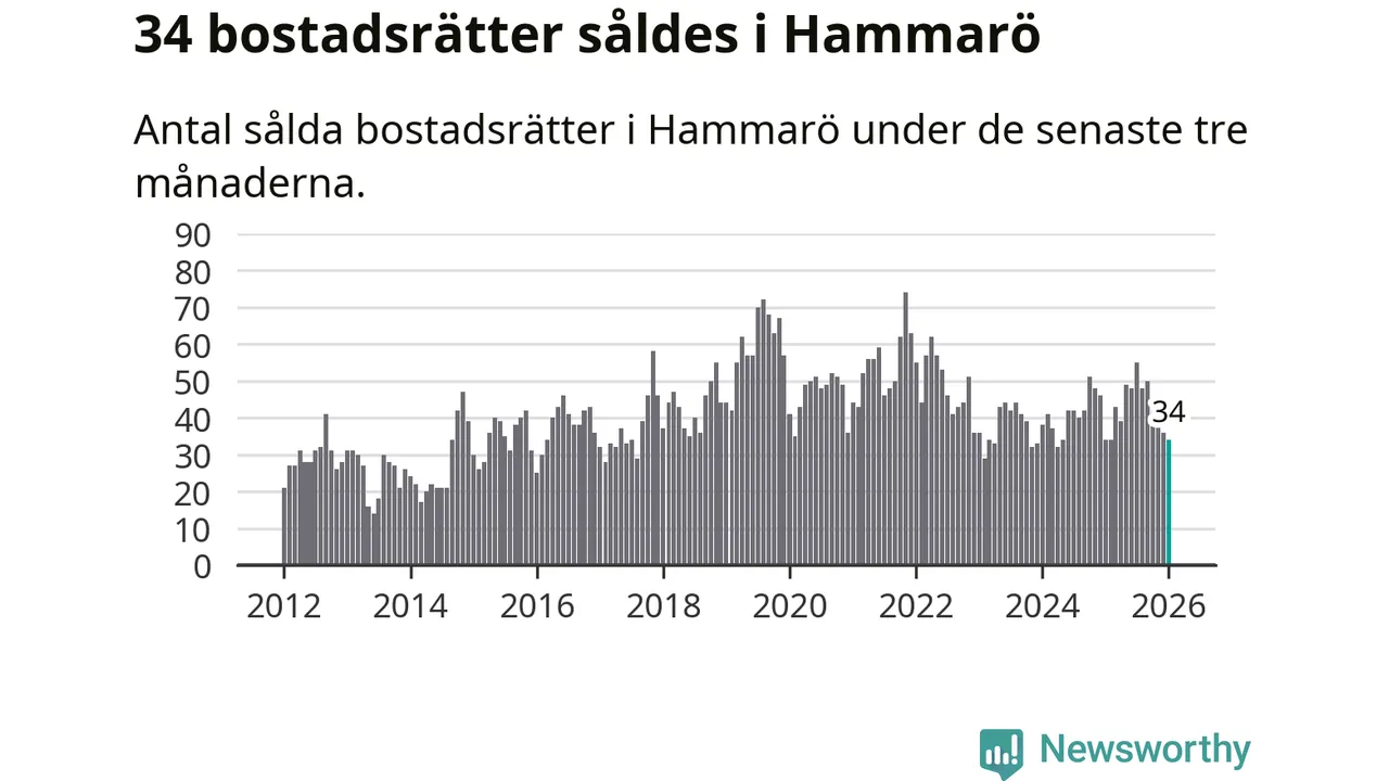 Sammanlagt såldes 34 bostadsrätter i Hammarö kommun mellan november och januari till ett genomsnittligt pris på 1,2 miljoner kronor. I fjol gjordes 34 affärer vid den här tiden på året.