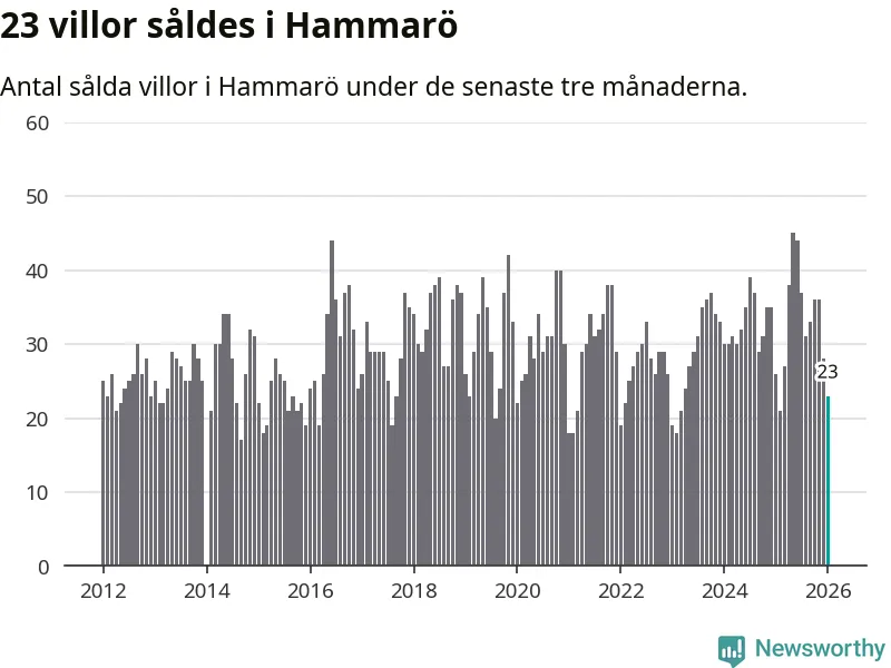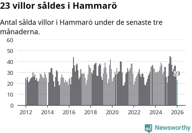 Mellan november och januari gjordes sammanlagt 23 affärer med villor i Hammarö kommun. Det kan jämföras med 26 vid motsvarande tid i fjol.