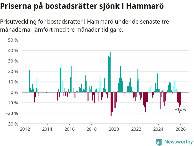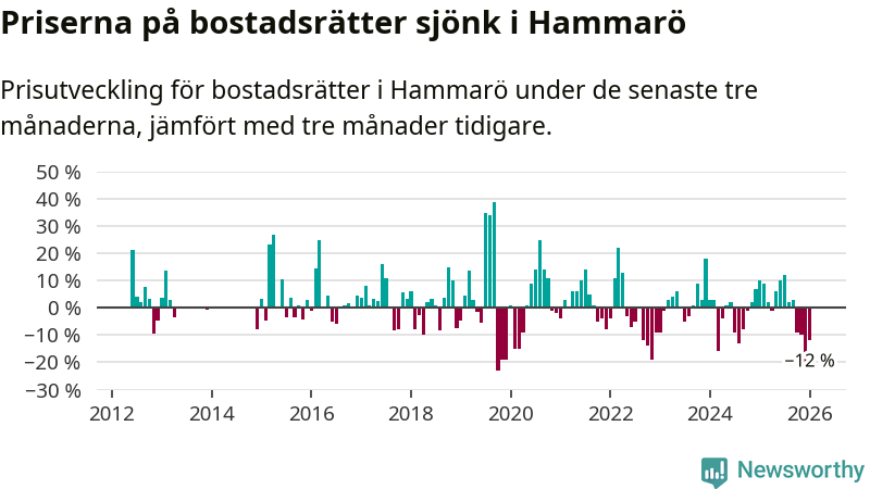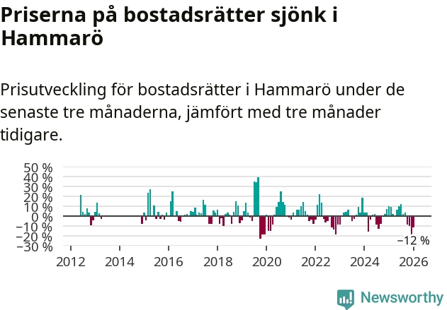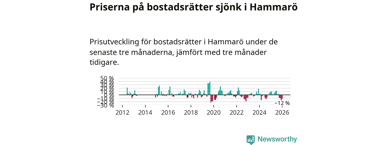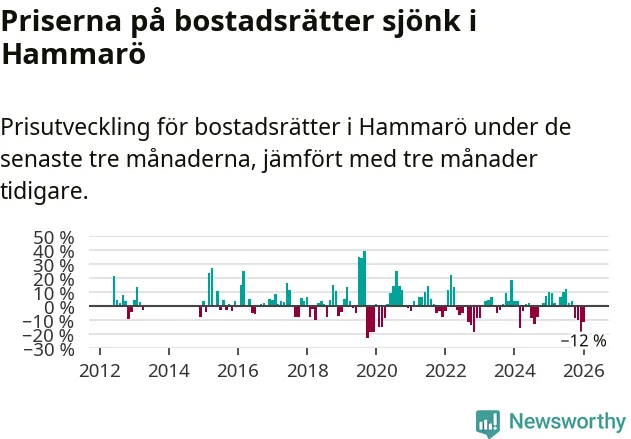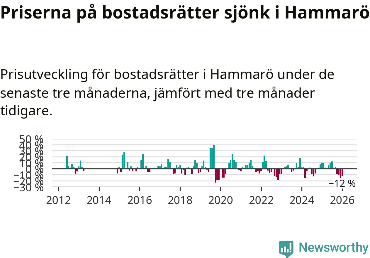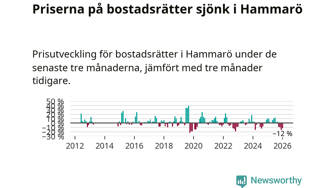 Priserna på bostadsrätter har gått ner i Hammarö kommun. Medelpriset på försäljningarna under de senaste tre månaderna visar på en nedgång med 12 procent.