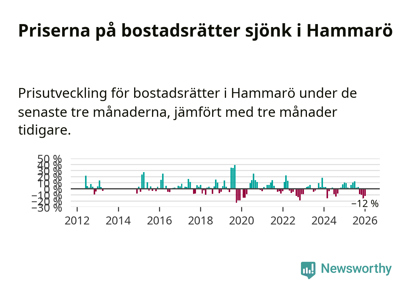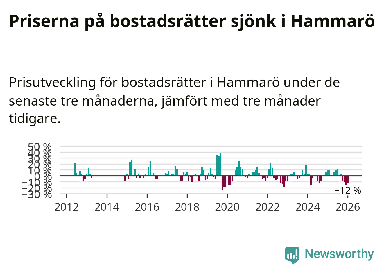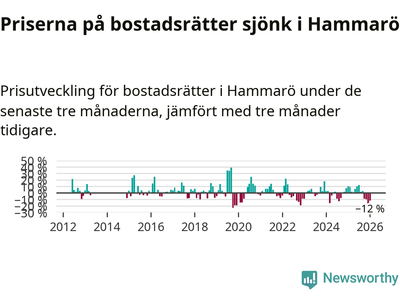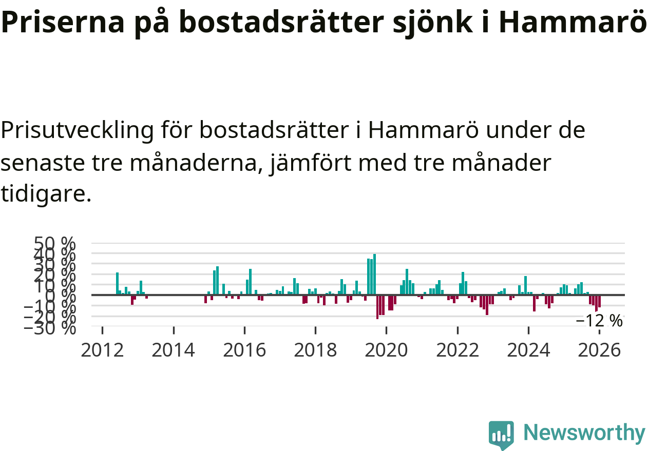 Priserna på bostadsrätter har gått ner i Hammarö kommun. Medelpriset på försäljningarna under de senaste tre månaderna visar på en nedgång med 12 procent.