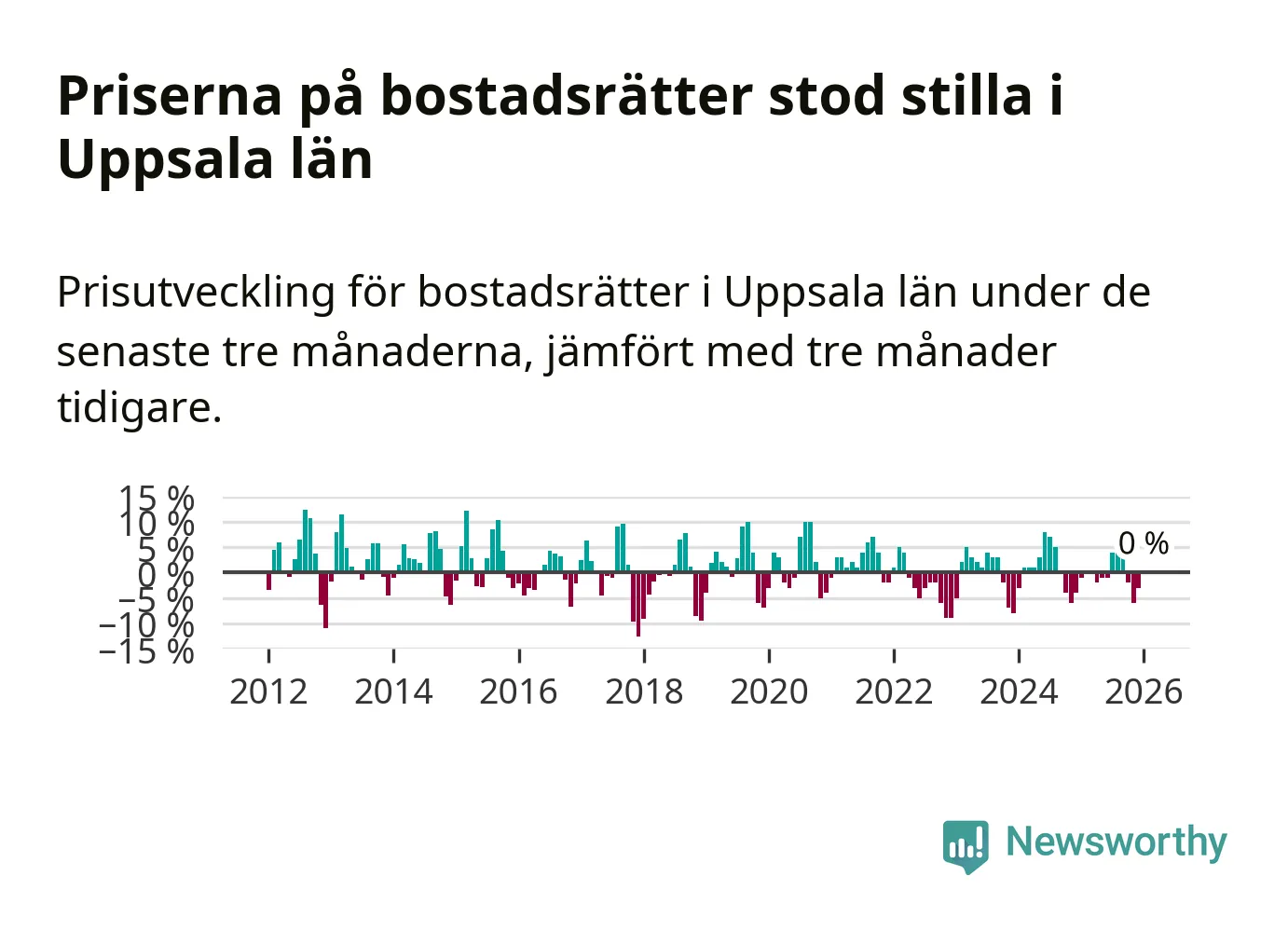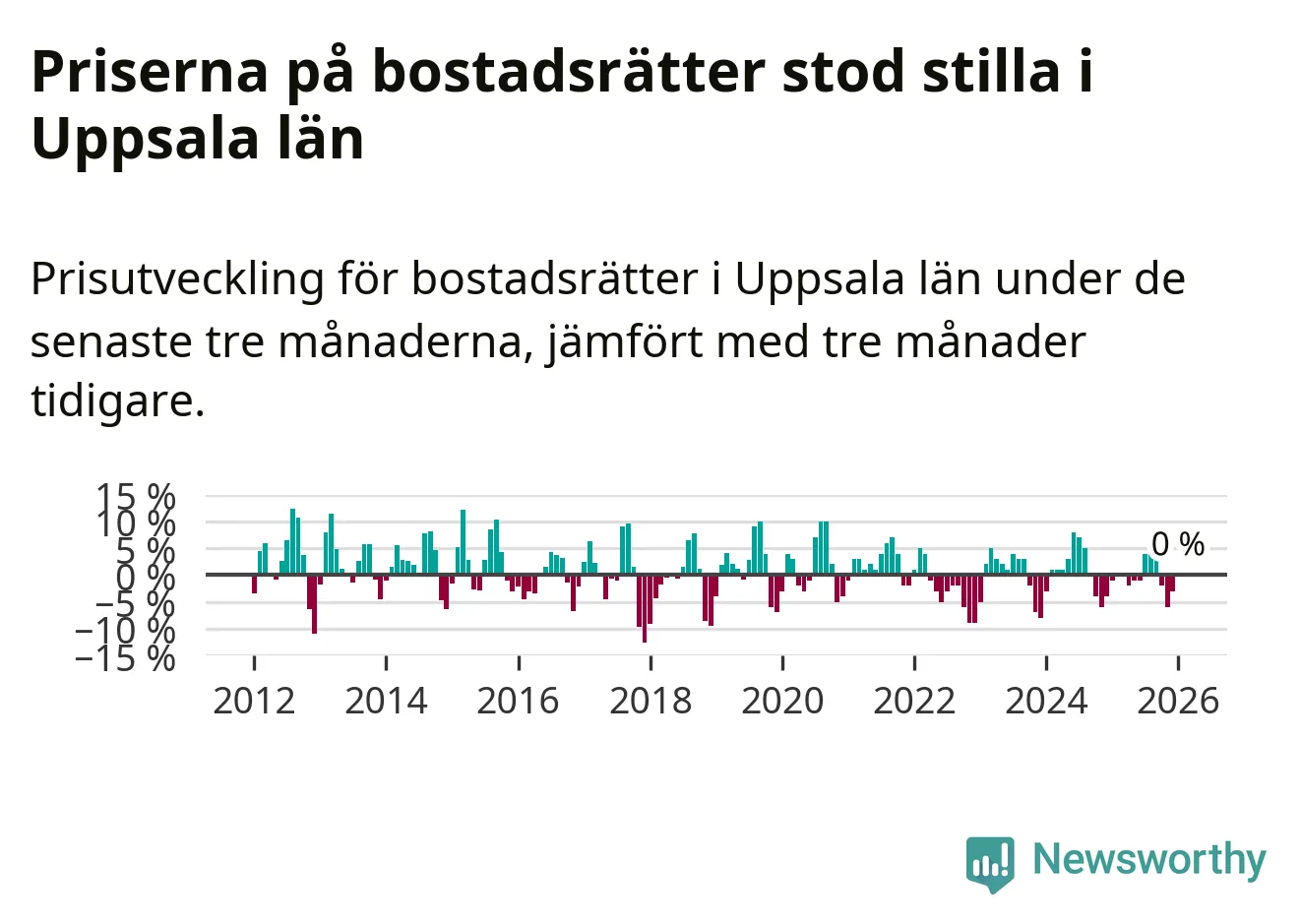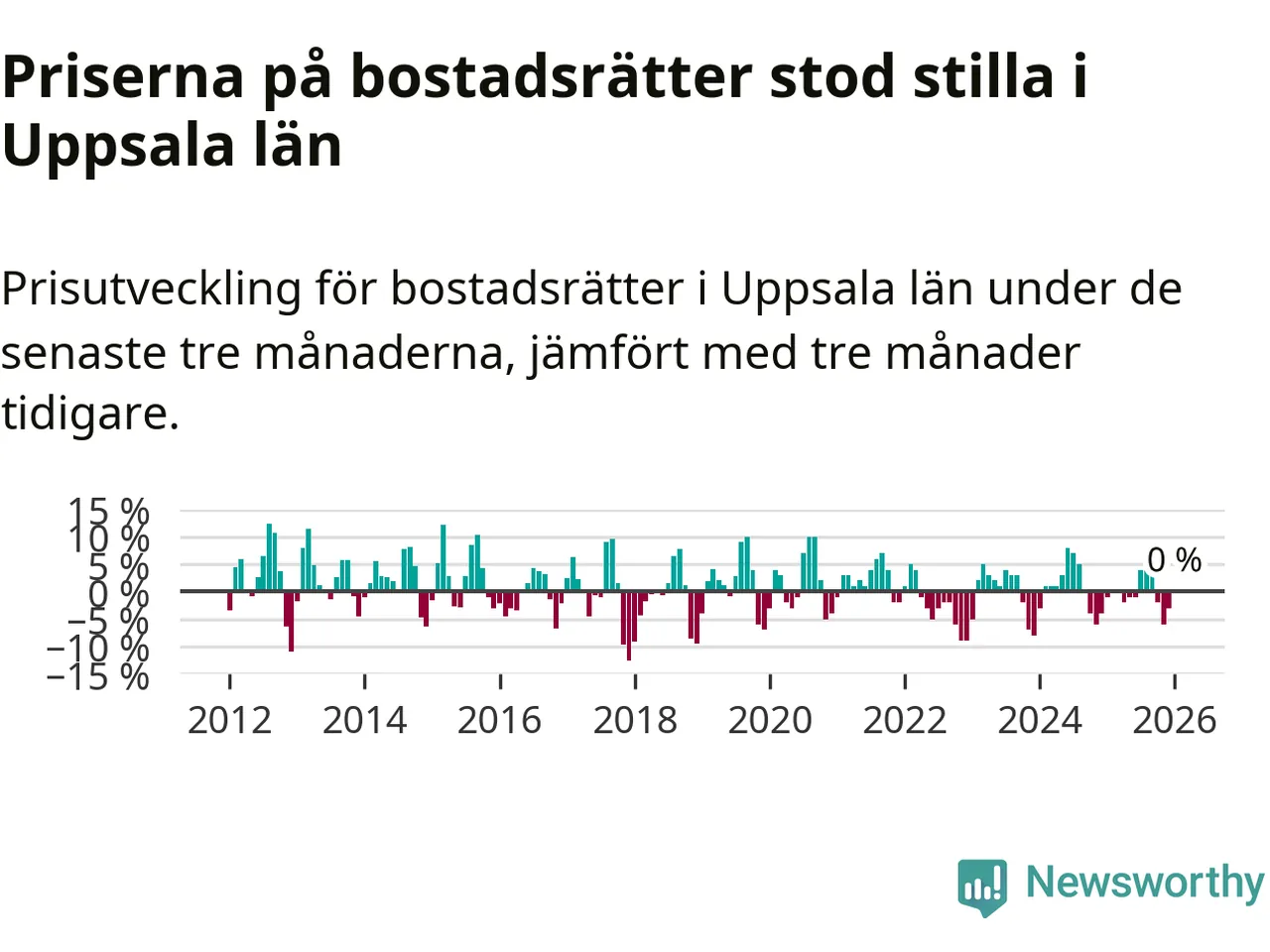 Priserna på bostadsrätter står i stort sett stilla i Uppsala län. Medelpriset på de på försäljningarna under de senaste tre månaderna låg på samma nivå som för tre månader sedan.
