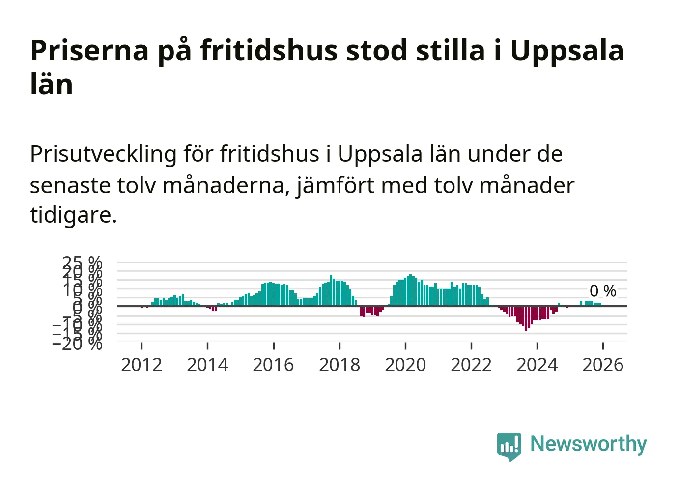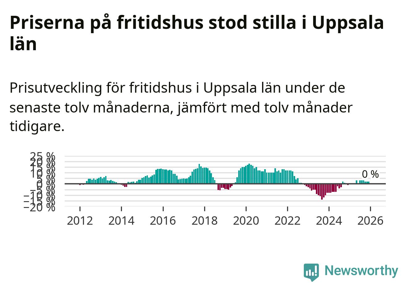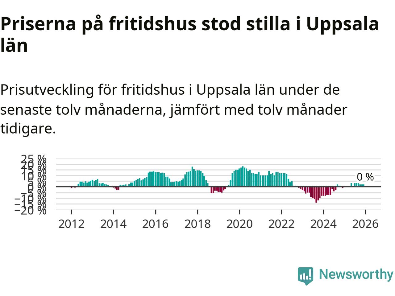 Priserna på fritidshus står i stort sett stilla i Uppsala län. Medelpriset på de på försäljningarna under de senaste tolv månaderna låg på samma nivå som för ett år sedan.