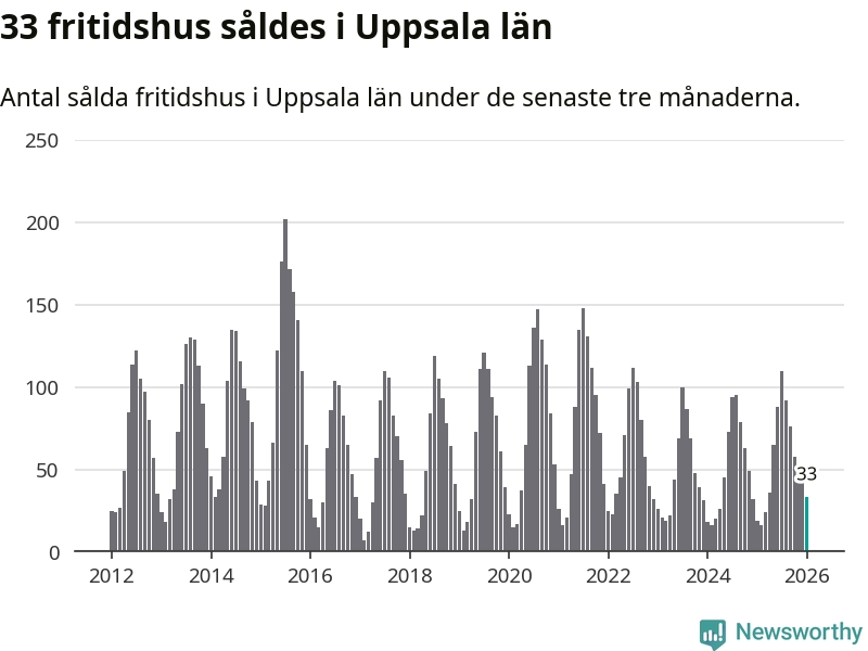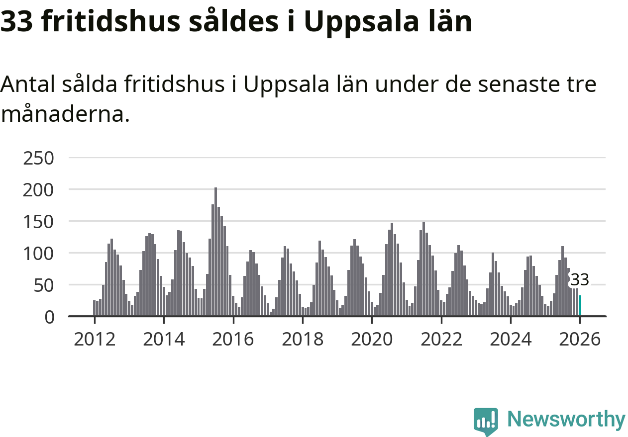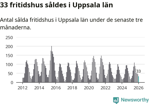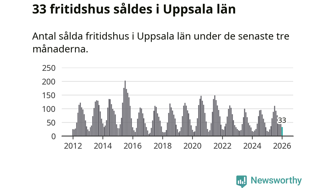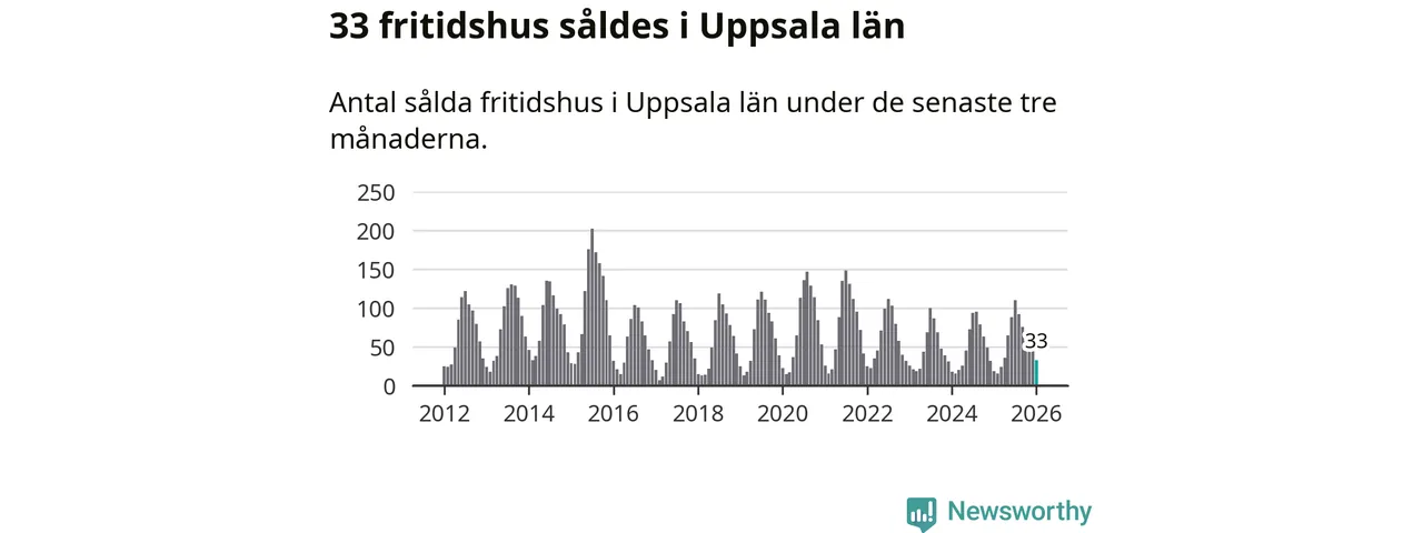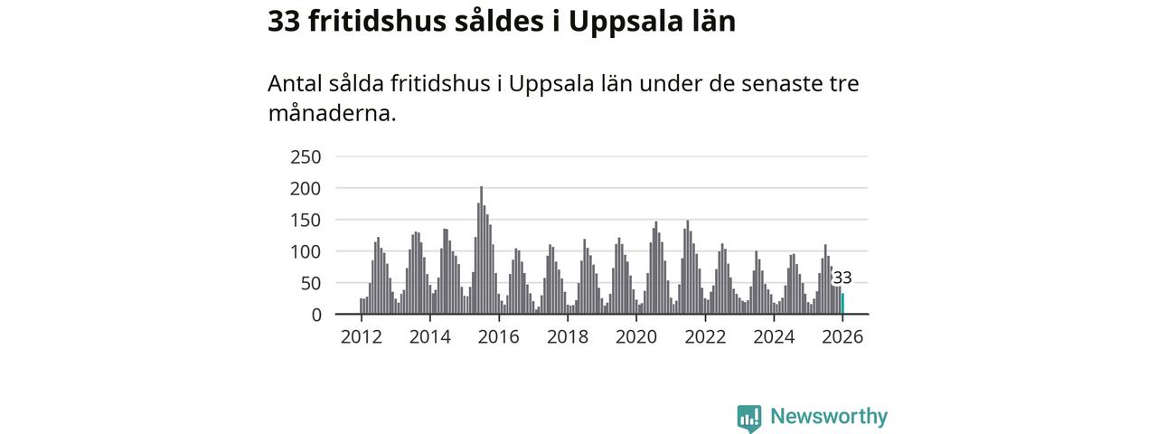 Sammanlagt såldes 33 fritidshus i Uppsala län mellan november 2025 och januari till ett genomsnittligt pris på 1,5 miljoner kronor. I fjol gjordes 19 affärer vid den här tiden på året.