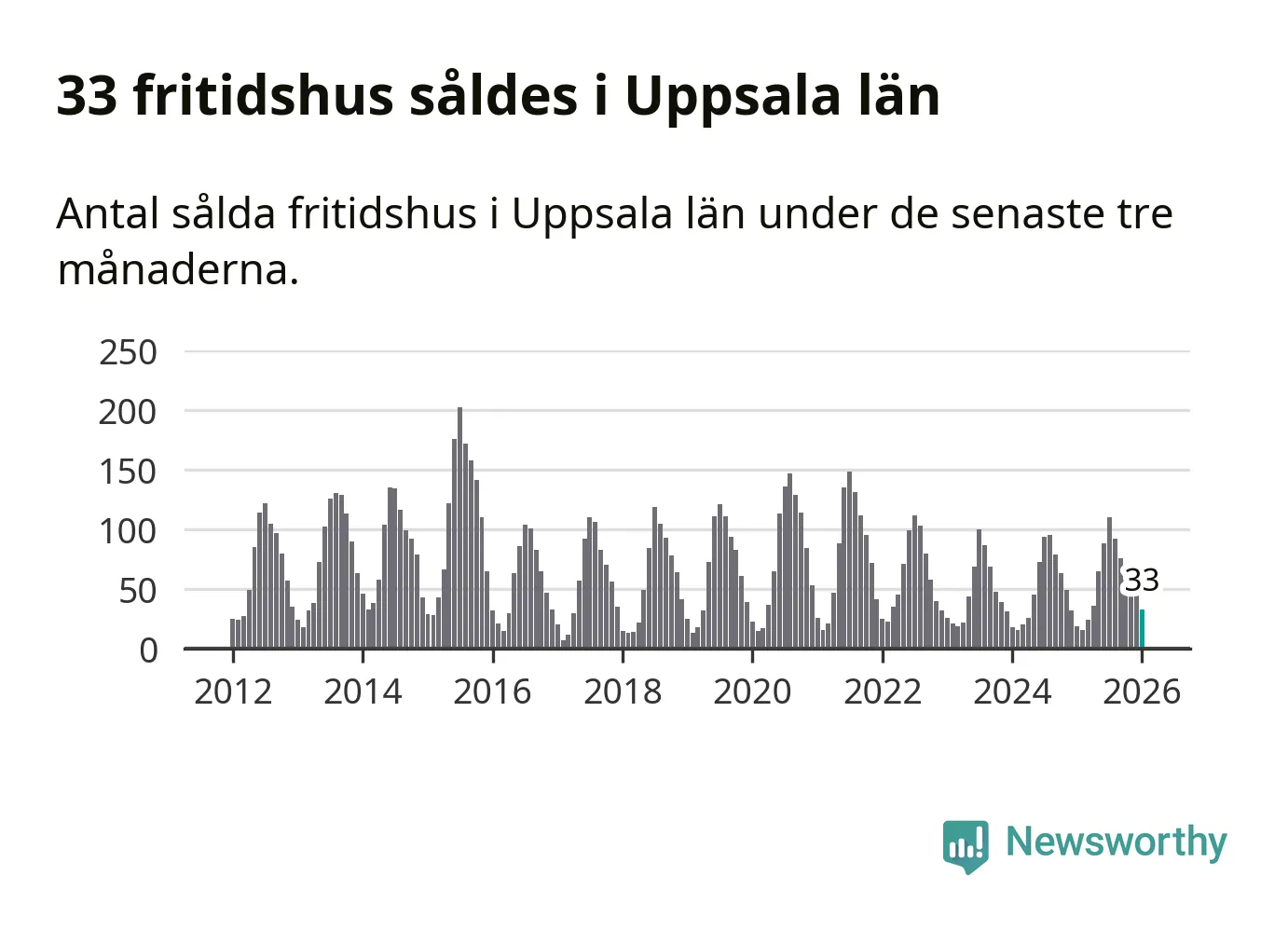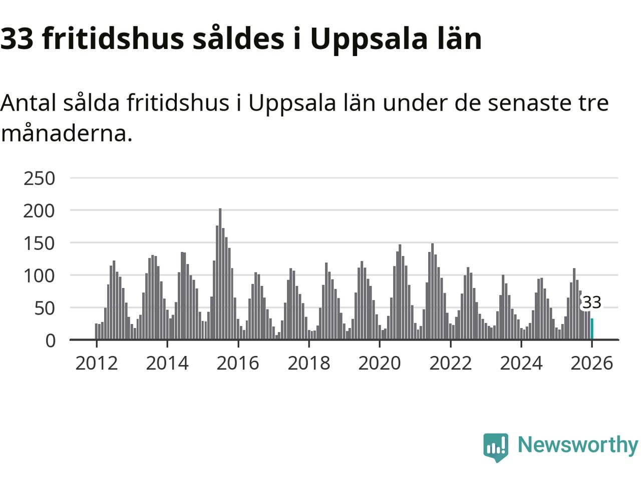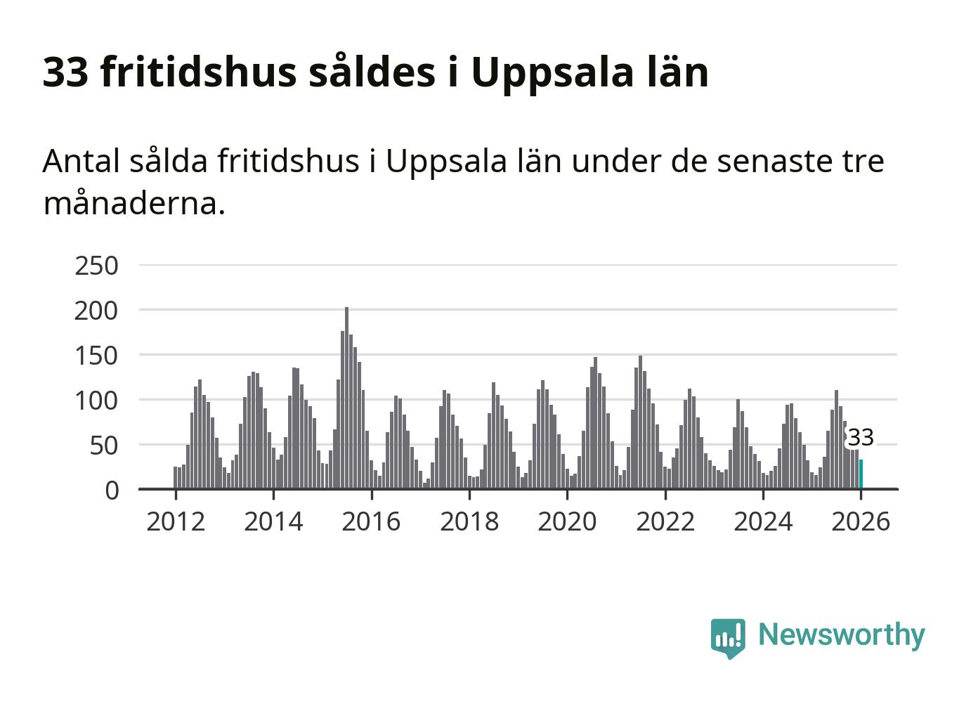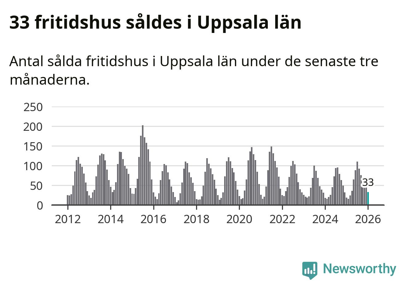 Sammanlagt såldes 33 fritidshus i Uppsala län mellan november 2025 och januari till ett genomsnittligt pris på 1,5 miljoner kronor. I fjol gjordes 19 affärer vid den här tiden på året.