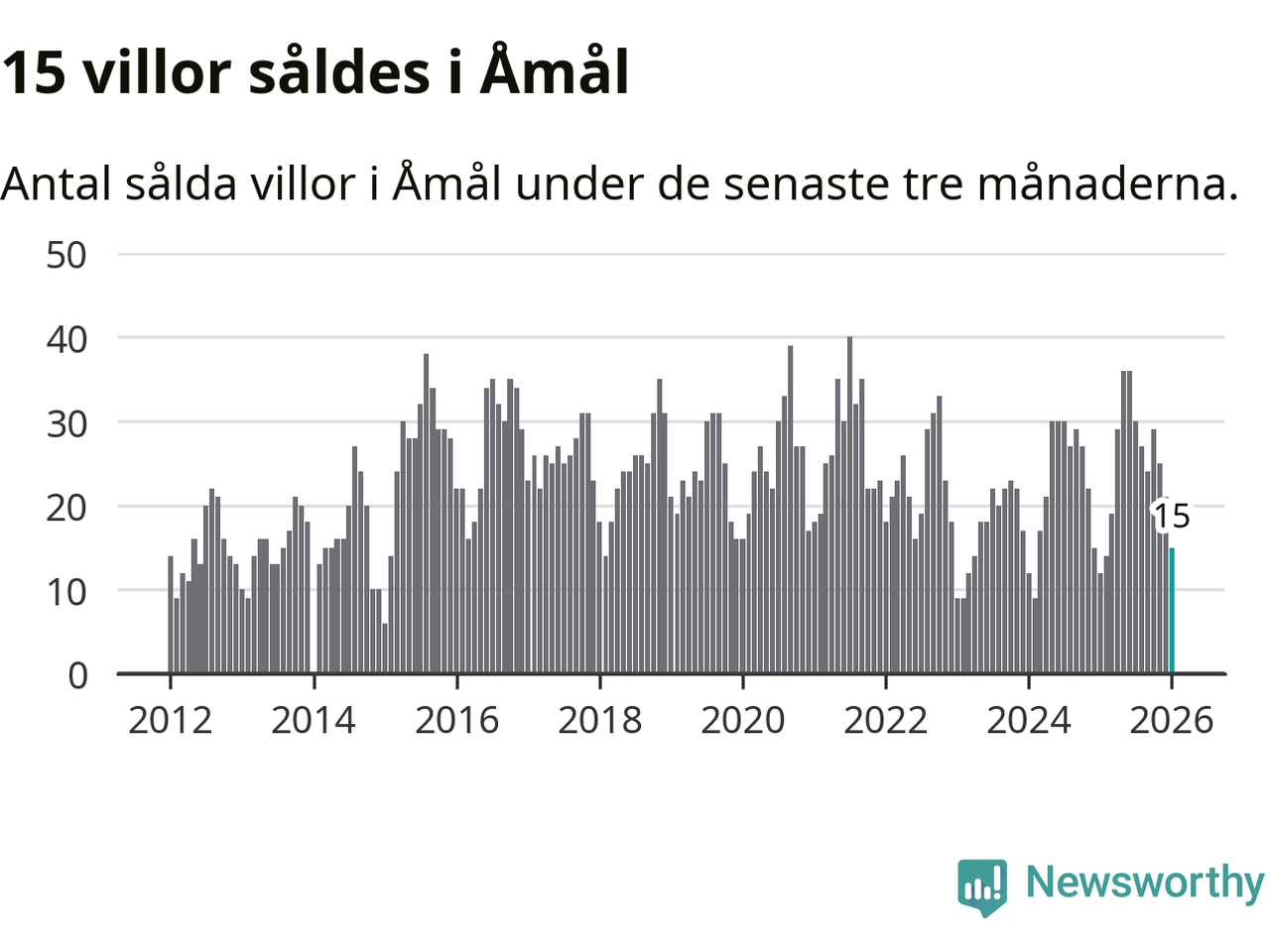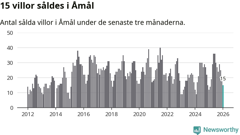 Mellan november och januari gjordes sammanlagt 15 affärer med villor i Åmåls kommun. Det kan jämföras med tolv vid motsvarande tid i fjol.