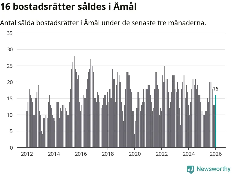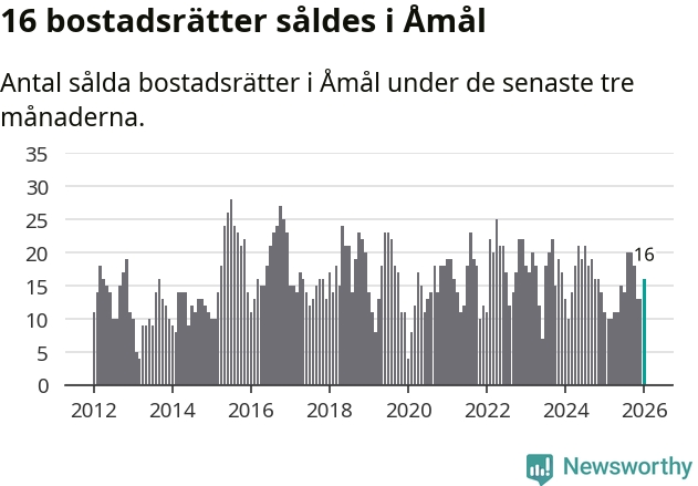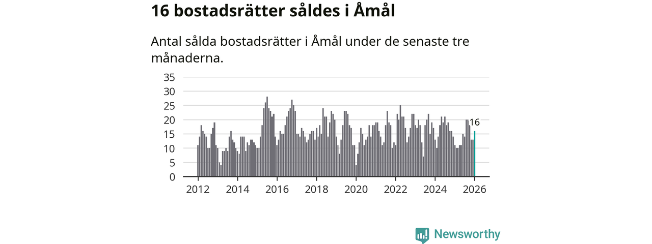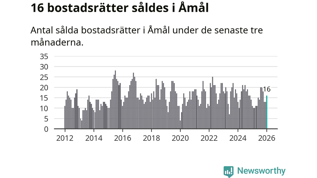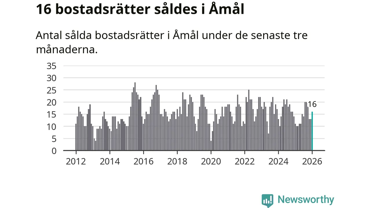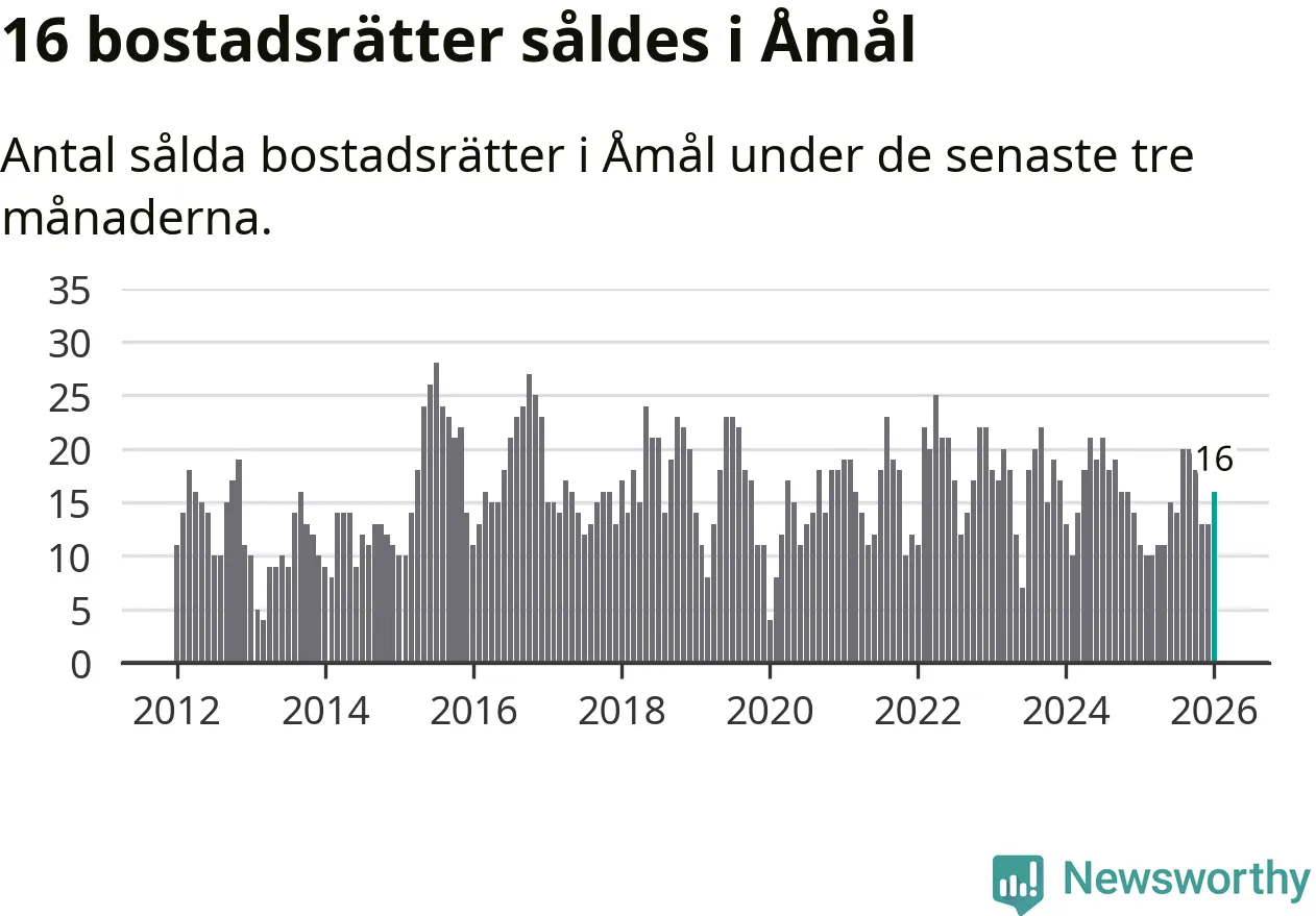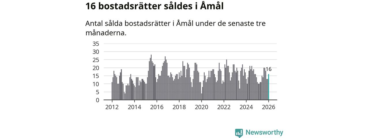 Mellan november och januari gjordes sammanlagt 16 affärer med bostadsrätter i Åmåls kommun. Det kan jämföras med elva vid motsvarande tid i fjol.
