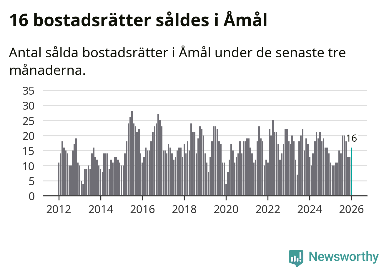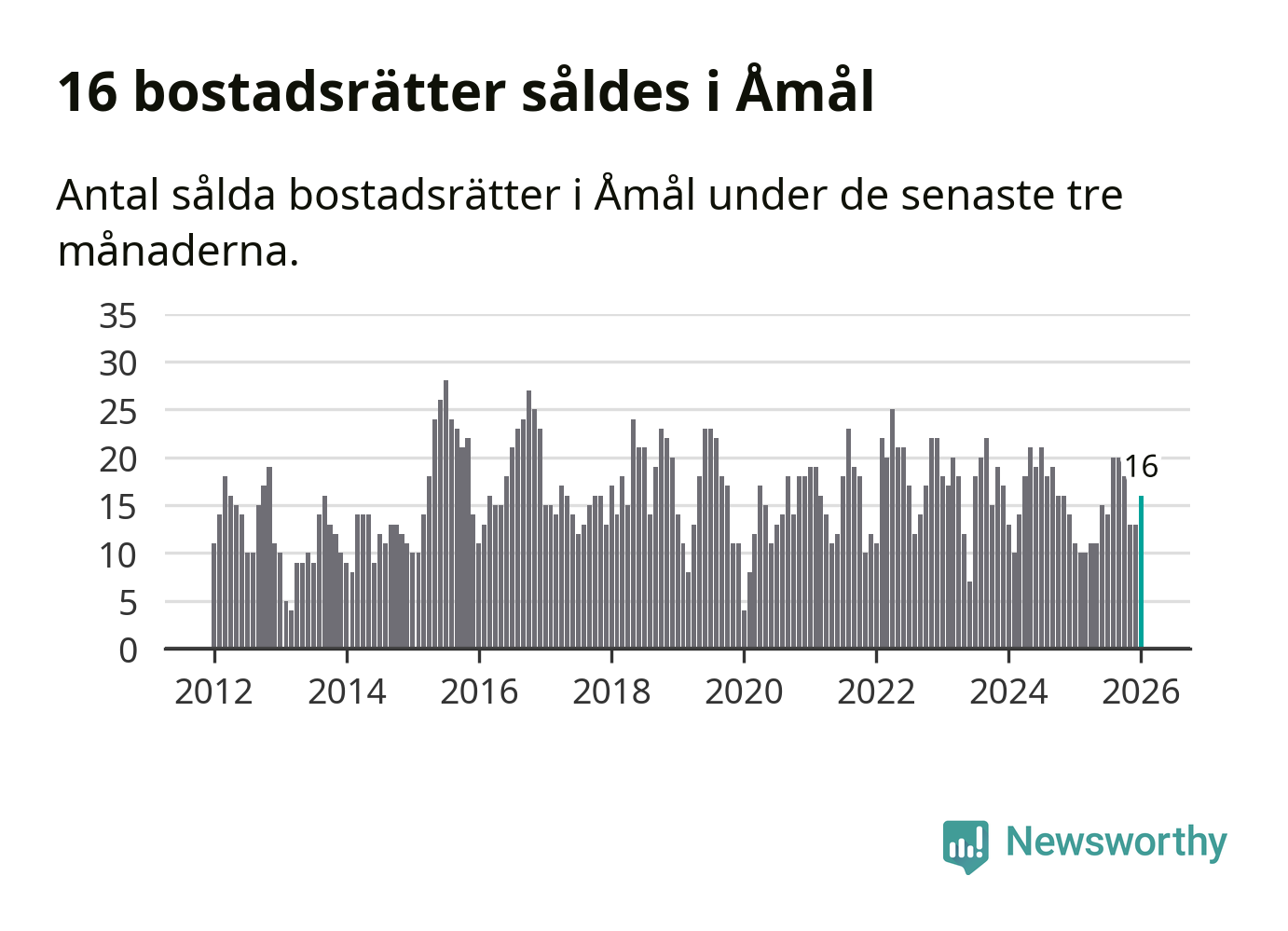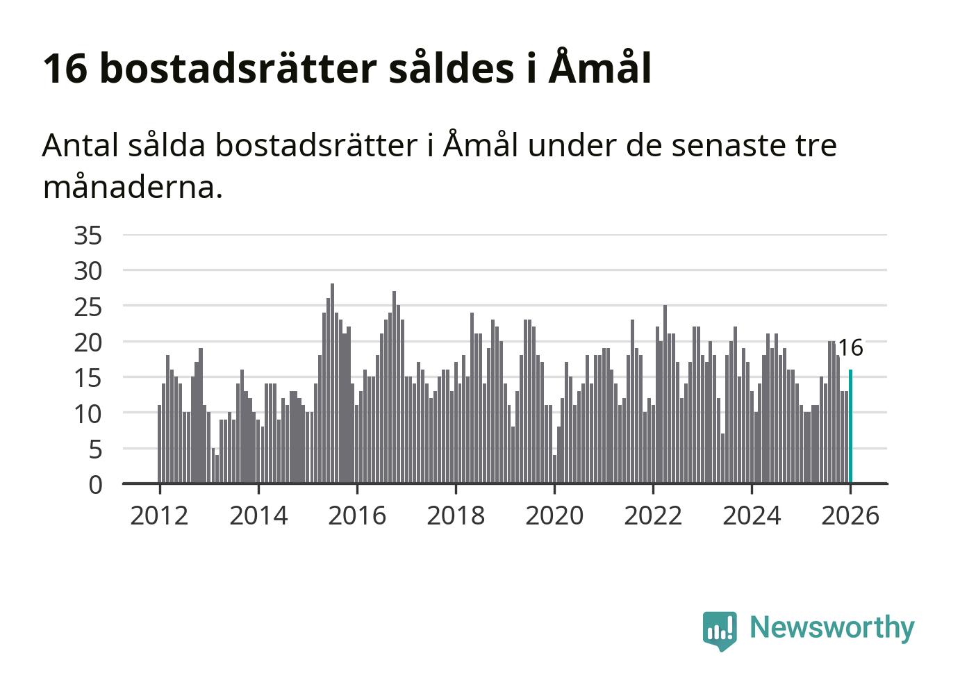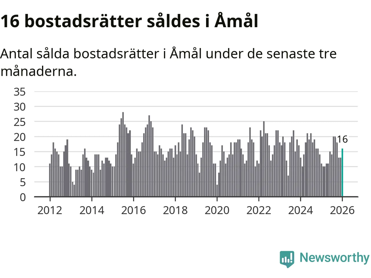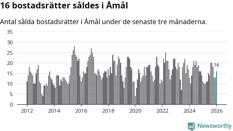 Mellan november och januari gjordes sammanlagt 16 affärer med bostadsrätter i Åmåls kommun. Det kan jämföras med elva vid motsvarande tid i fjol.