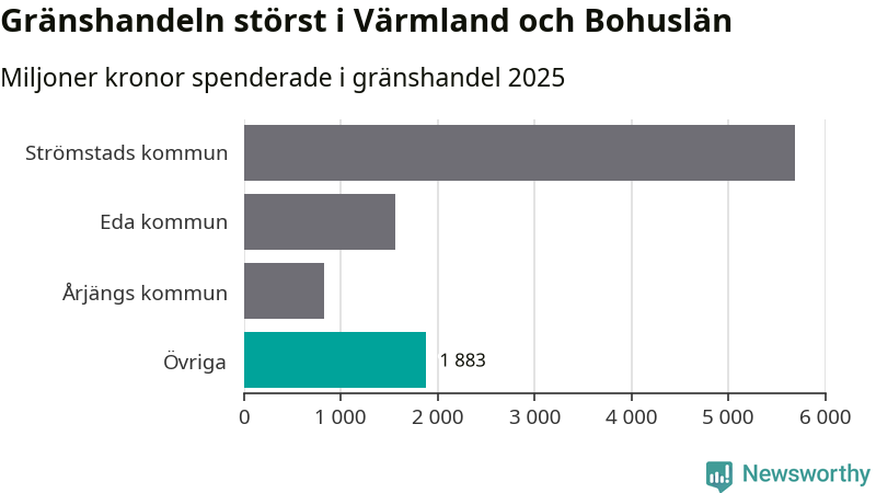 Tillsammans spenderade besökarna tio miljarder norska kronor i Sverige under 2025, vilket är 223 miljoner kronor (eller 2 procent) mer än året innan.