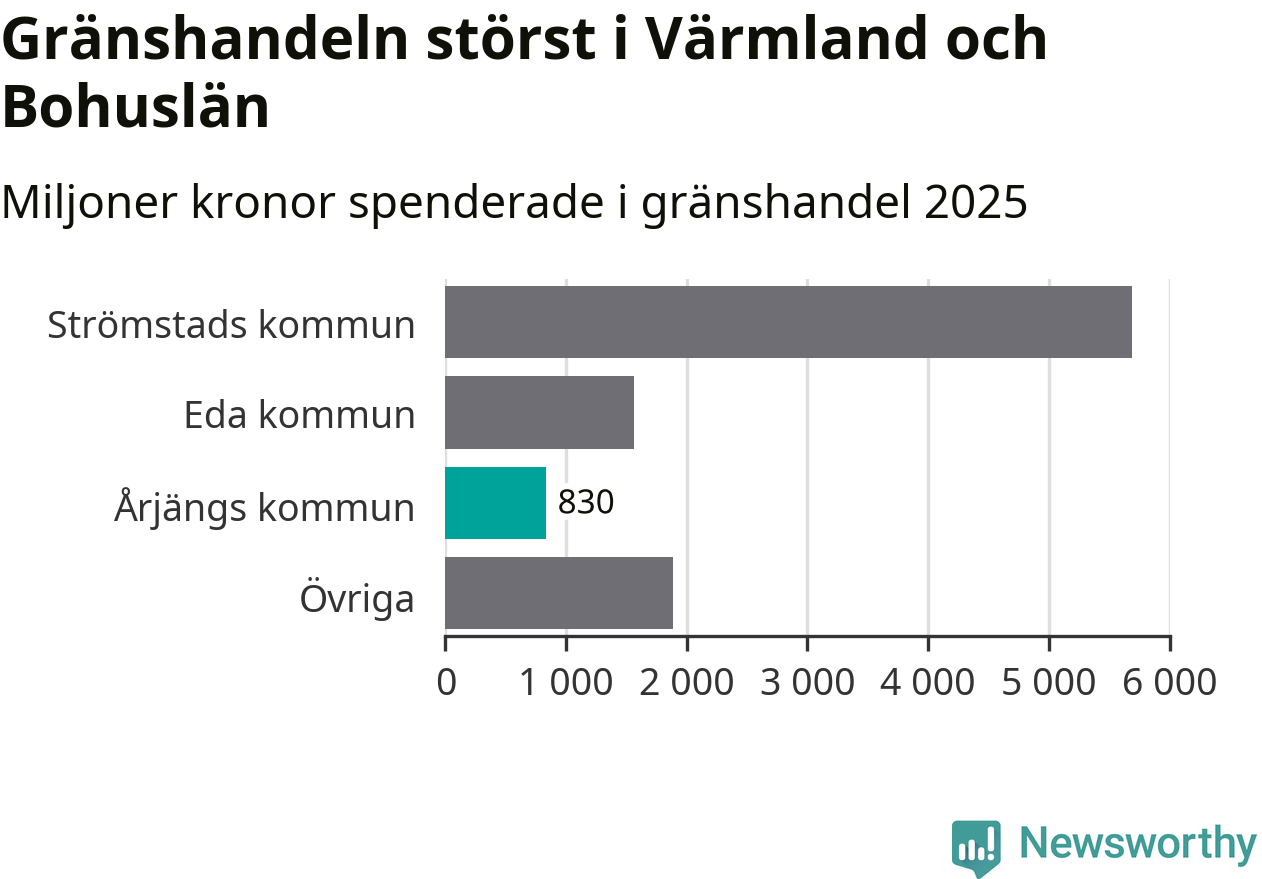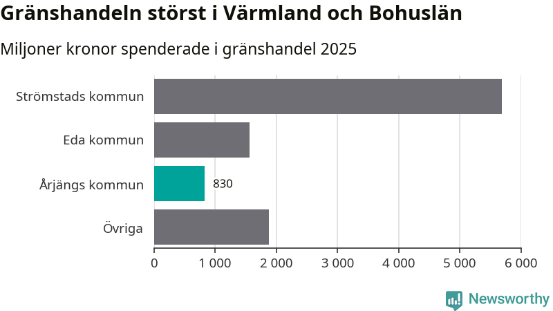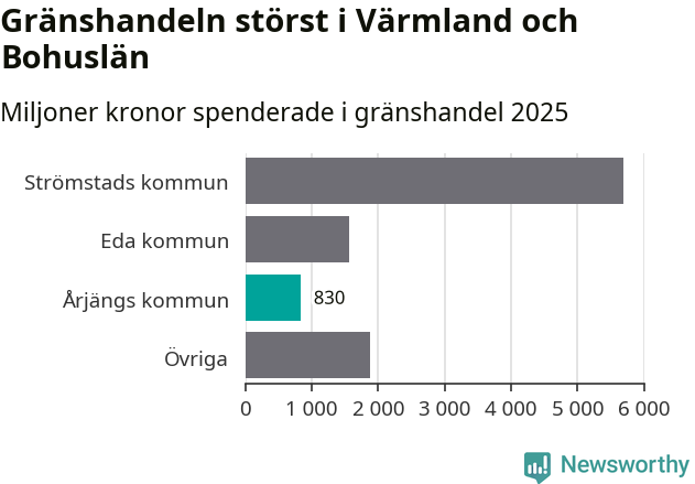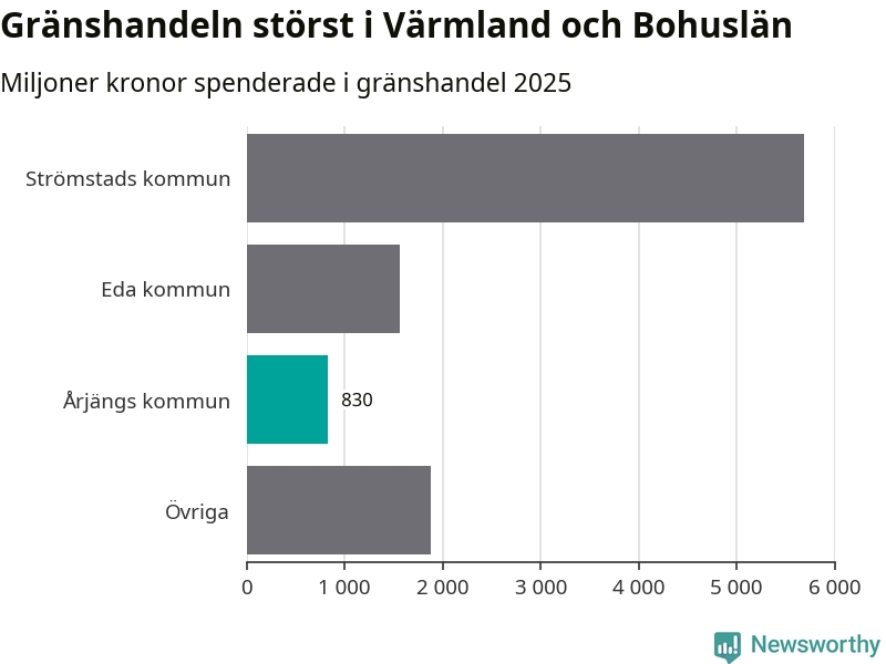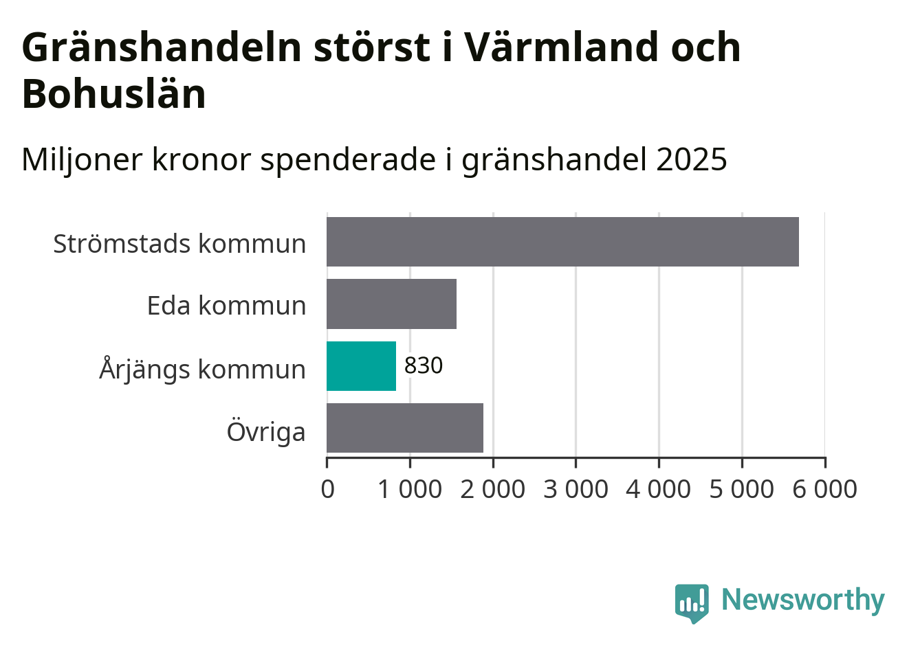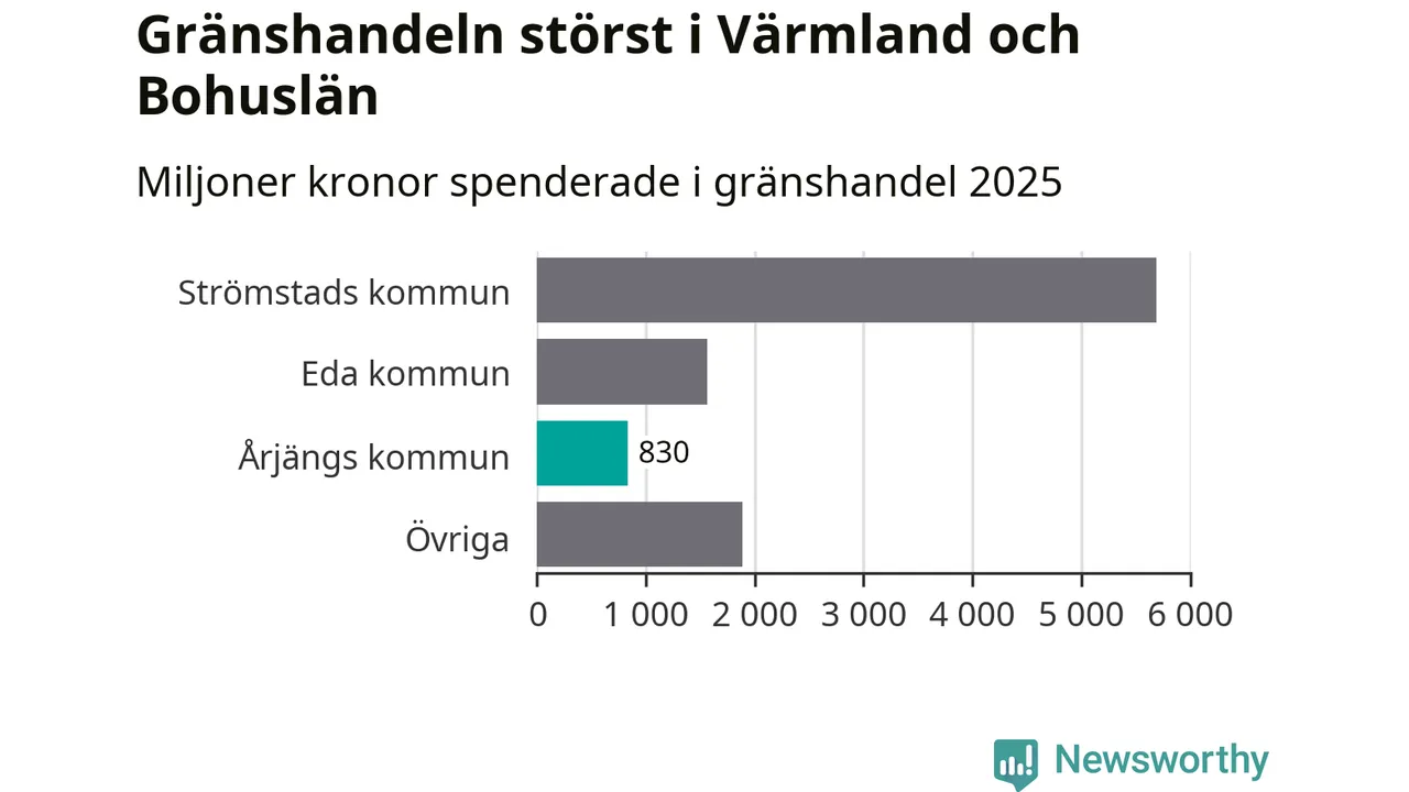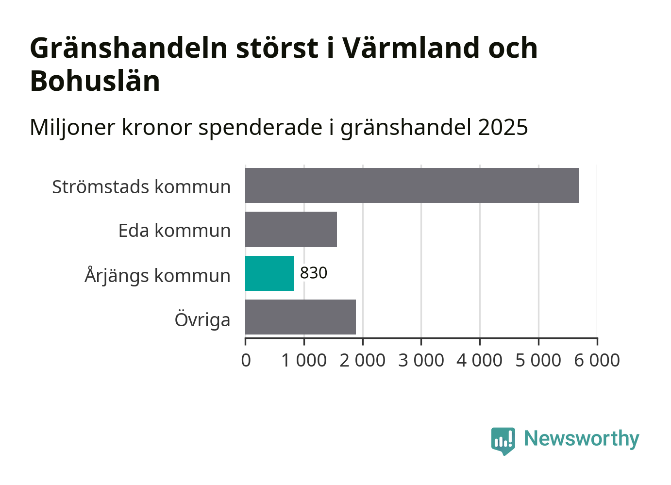 Gränshandeln i Töcksfors ökade förra året med 19 procent jämfört med 2024, räknat i antal dagsresor över gränsen. Totalt gjordes 424 000 sådana resor till Töcksfors under 2025 enligt Statistisk Sentralbyrå (SSB), att jämföra med 356 000 under 2024.