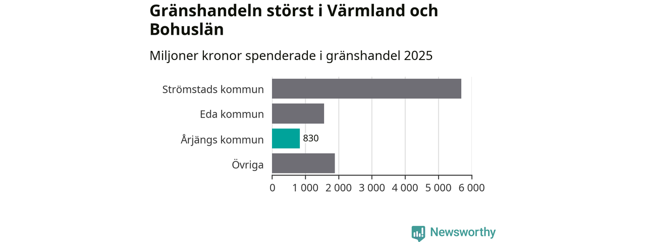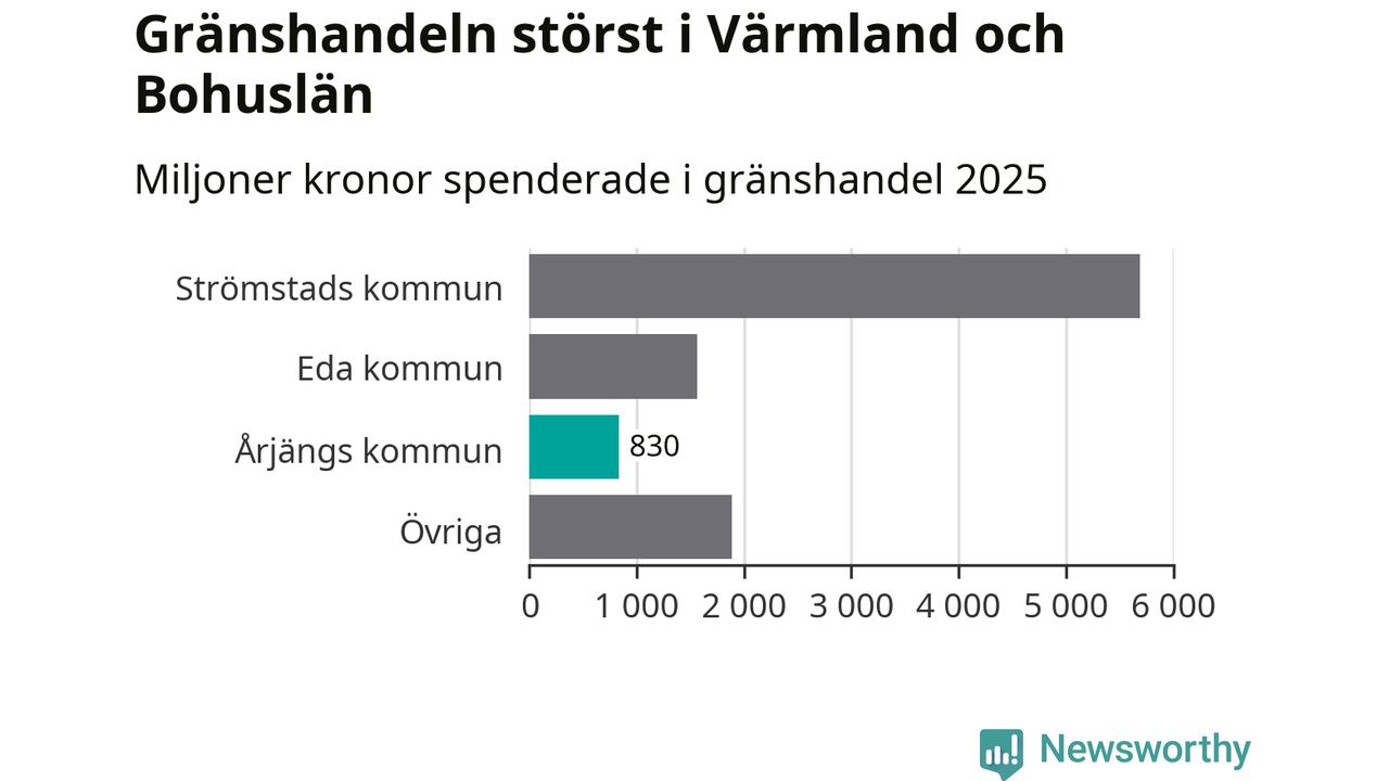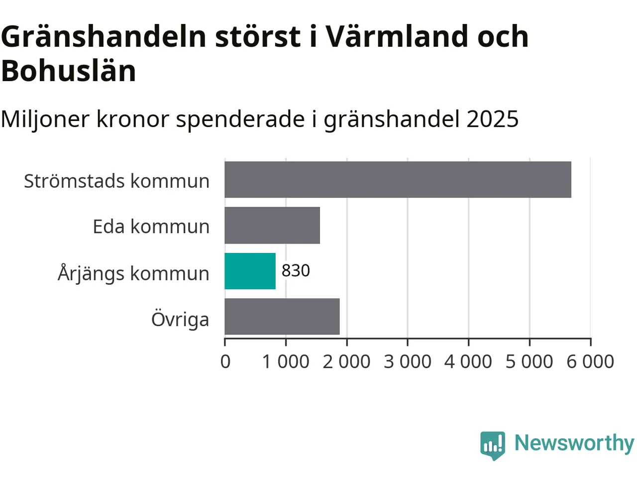 Den norska gränshandeln till Töcksfors visar färska siffror från den norska statistikmyndigheten SSB.