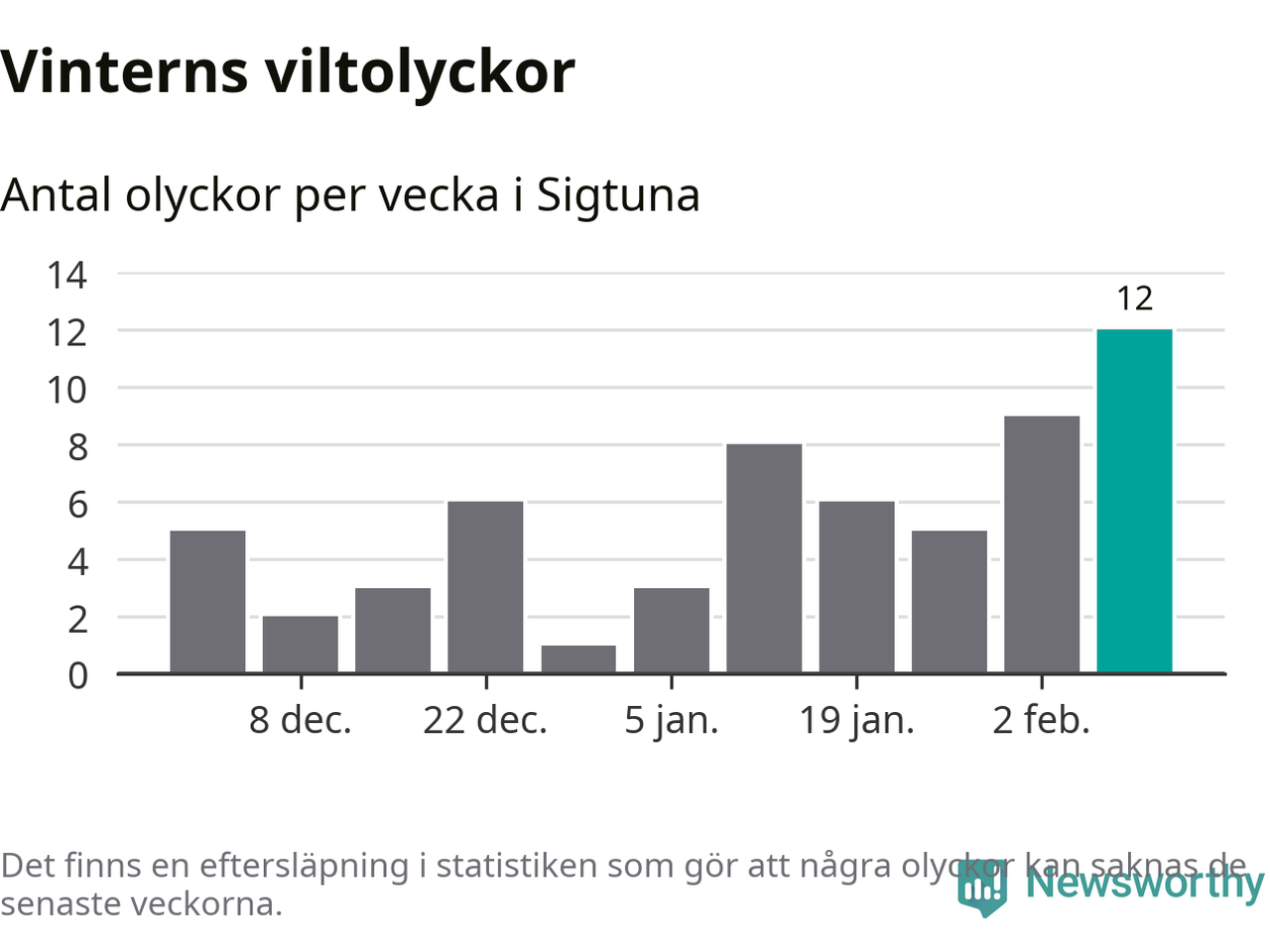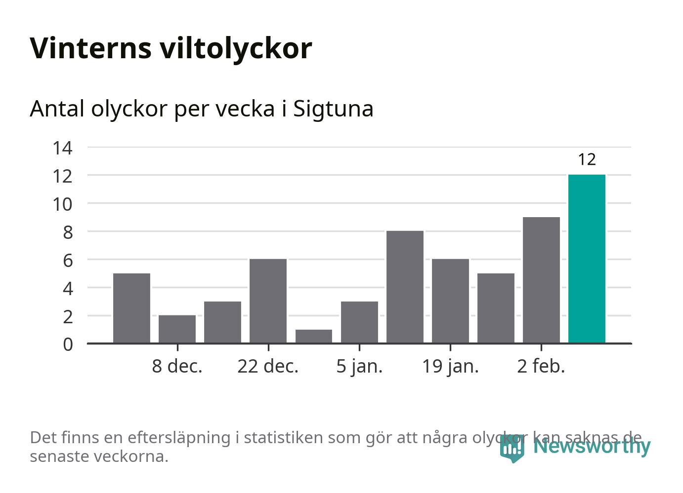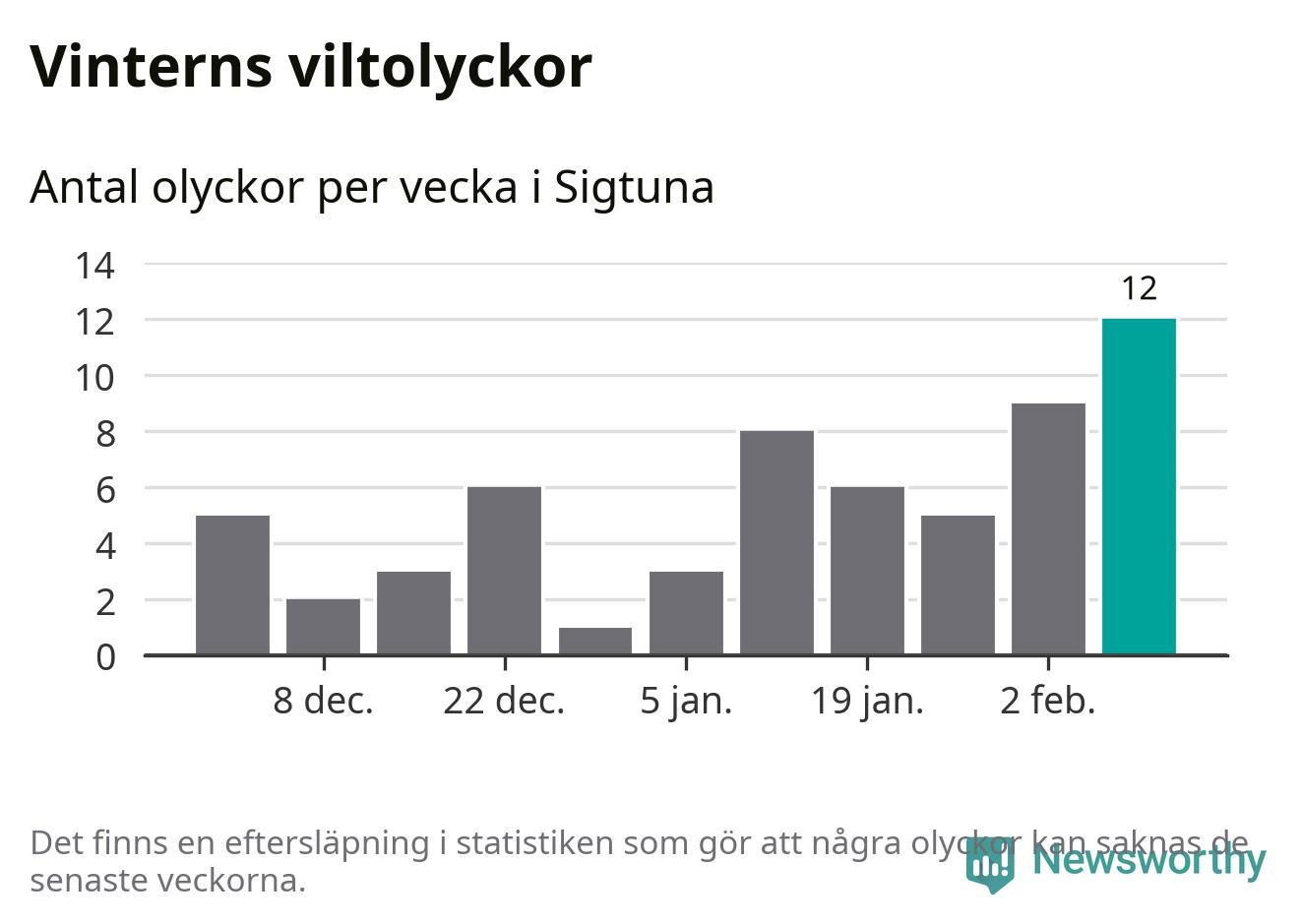 Under vecka 7 rapporterades tolv viltolyckor in i Sigtuna kommun. Det är det största antalet på en vecka den här vintern.