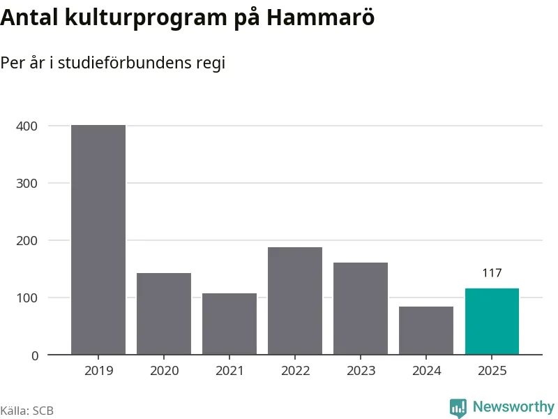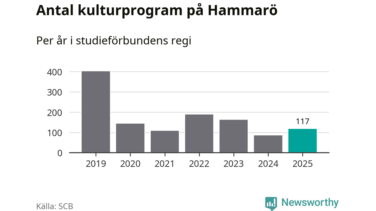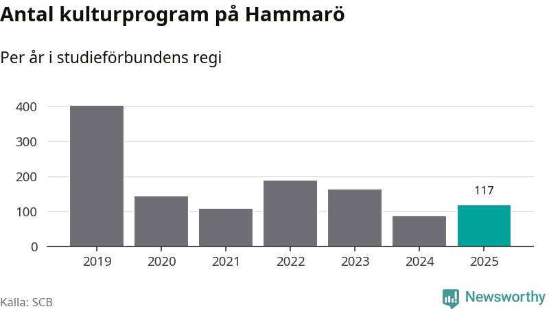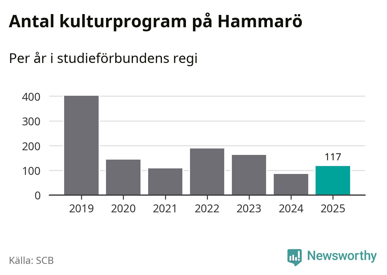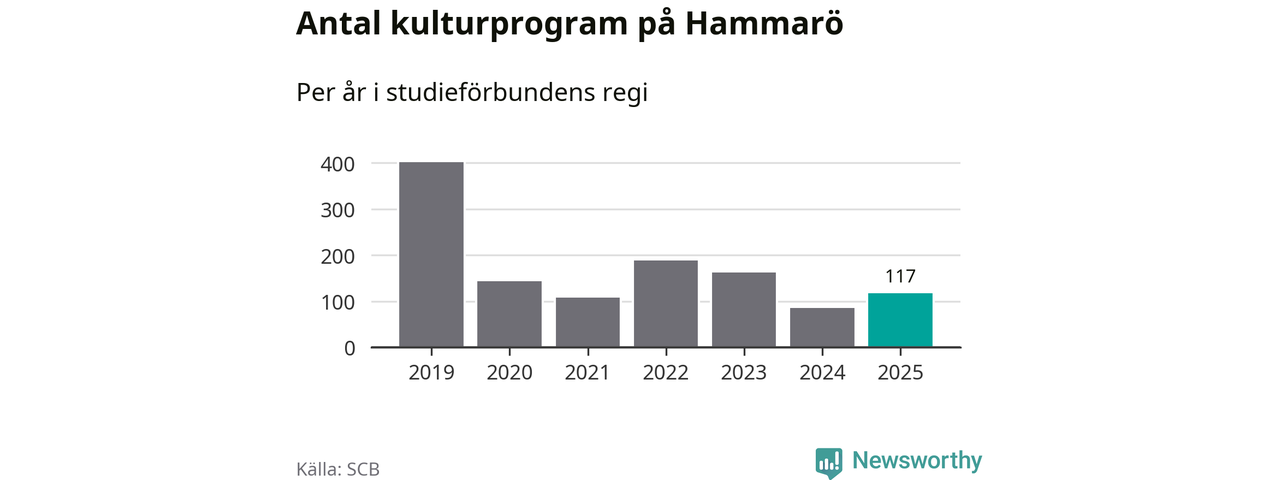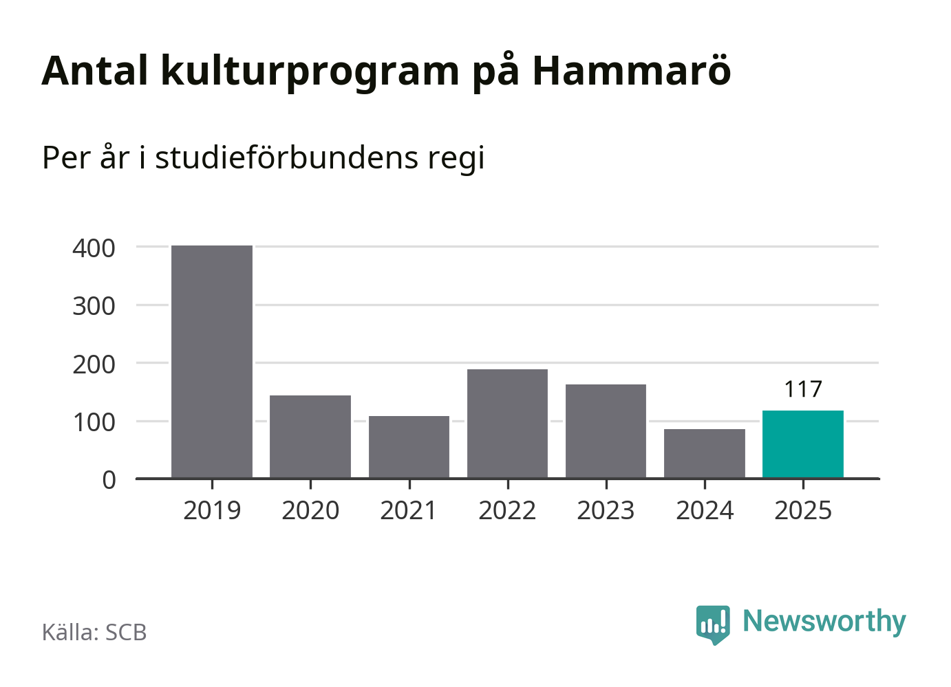 Även sett till unika deltagare är folkbildningen på tillbakagång på Hammarö. 2025 deltog 642 personer i studieförbundens verksamhet, vilket är en minskning med åtta procent jämfört med året innan. Det innebär att fyra procent av befolkningen i kommunen deltog i studieförbundens verksamhet under 2025, vilket är ungefär som rikssnittet.