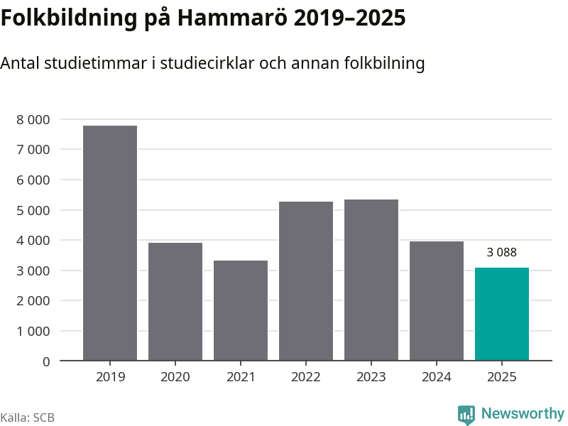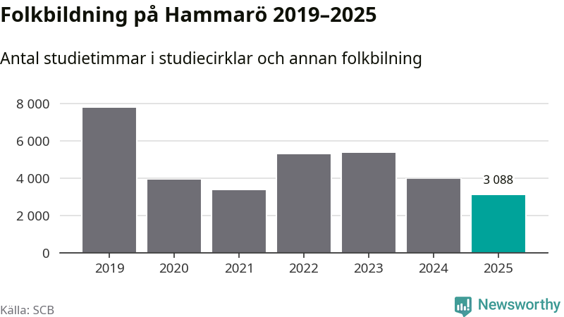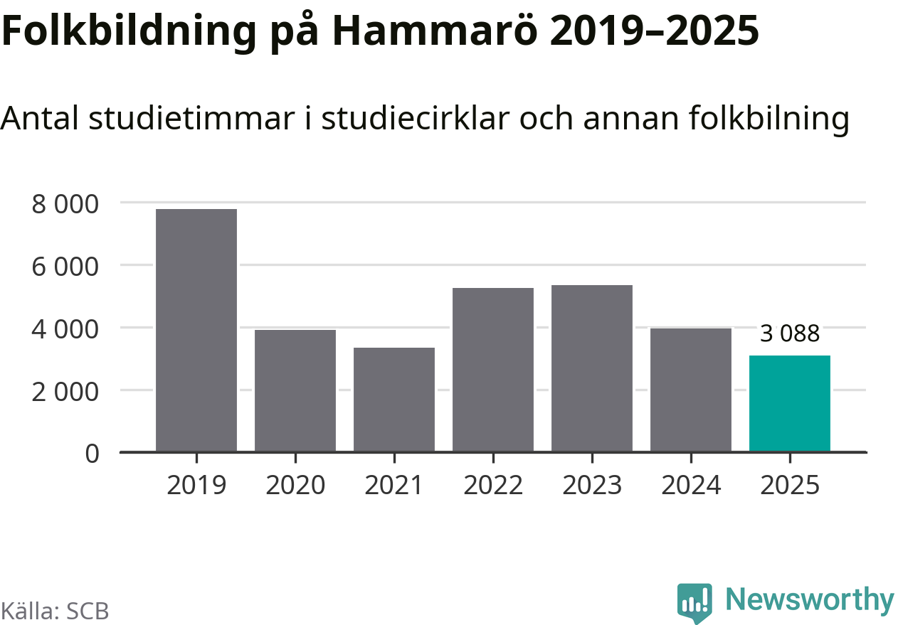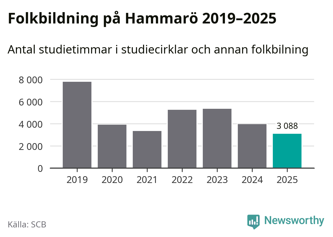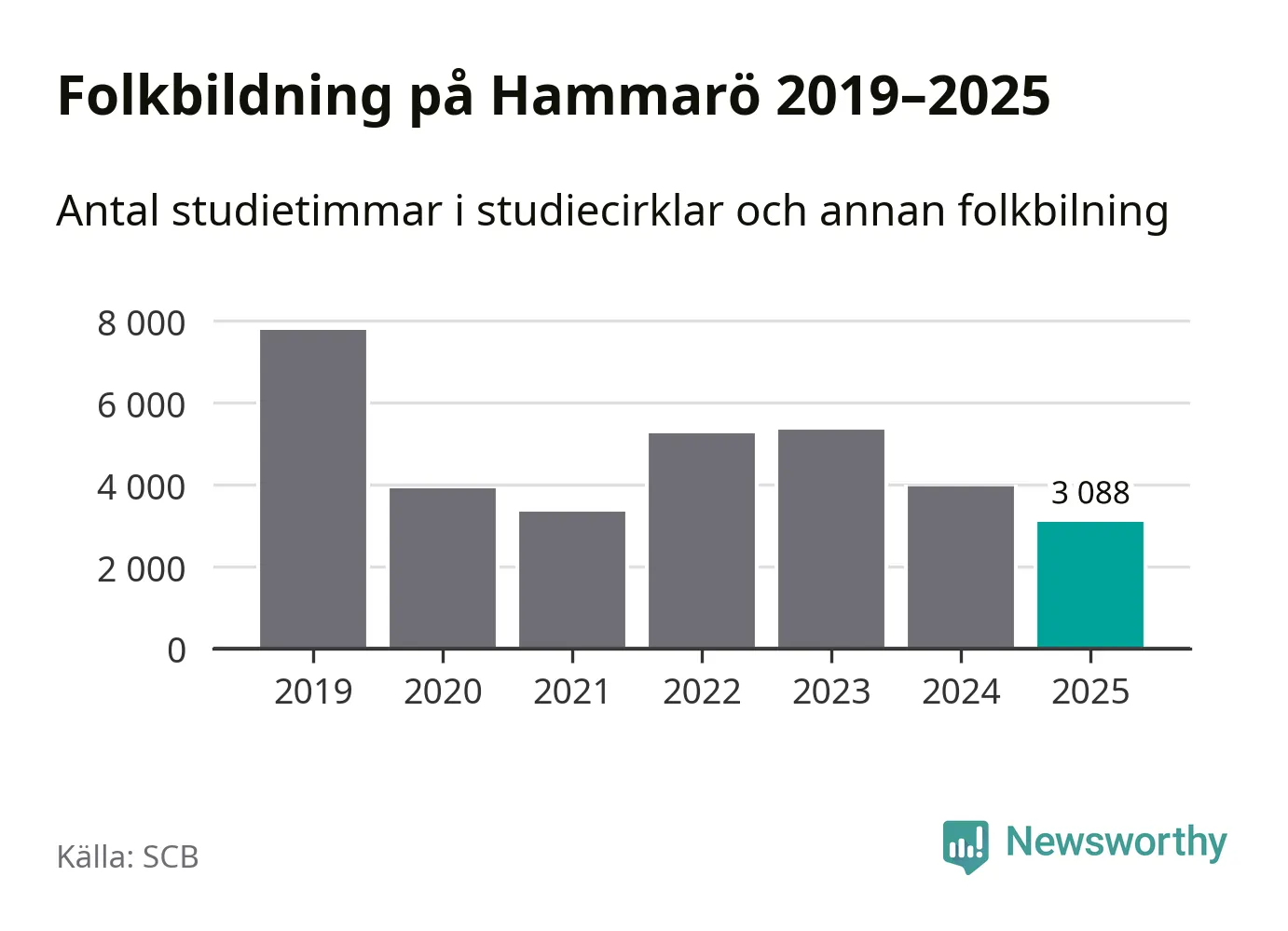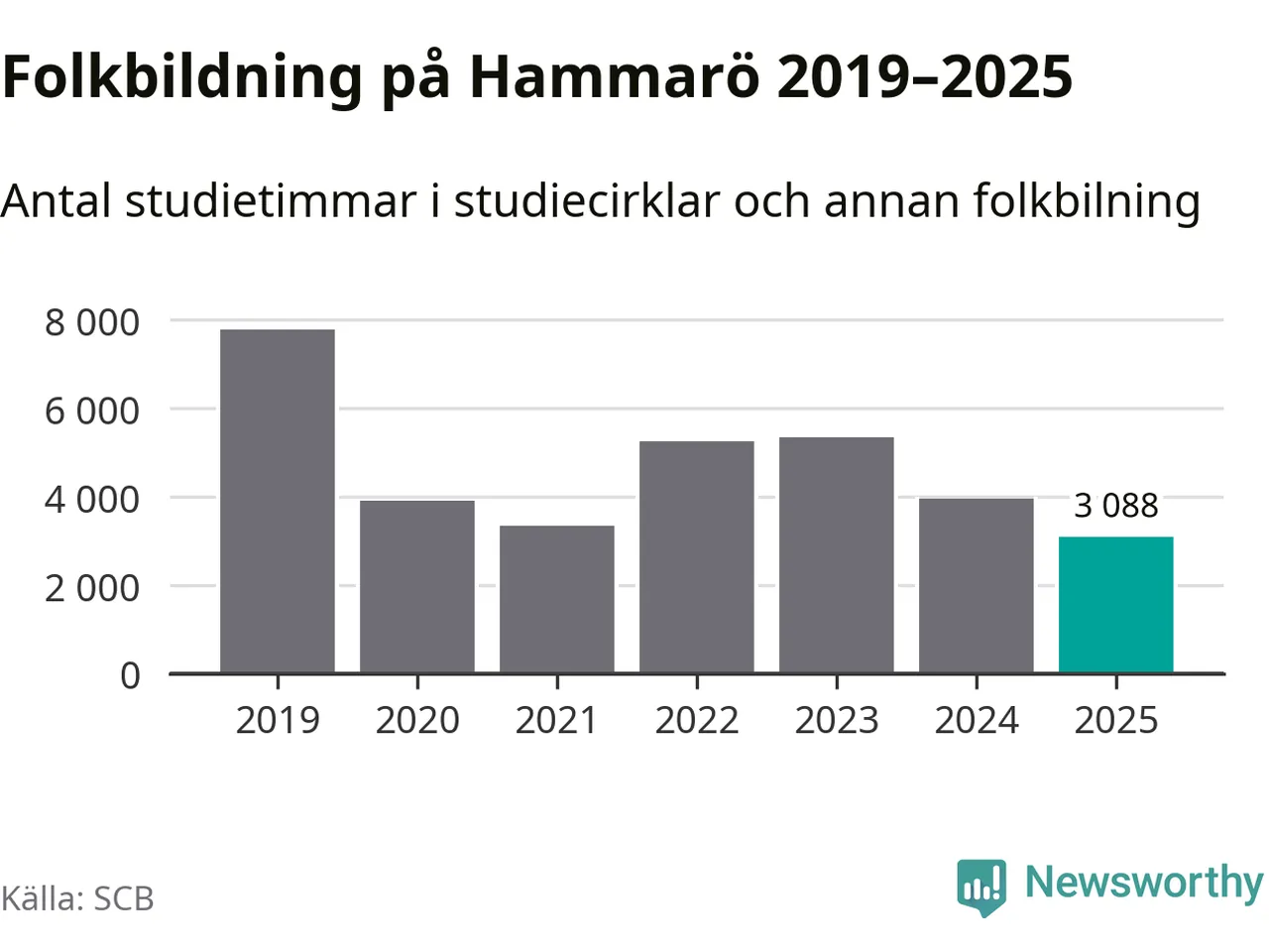 Studieförbunden drabbades hårt av pandemin. Även på Hammarö noterades det lägsta antalet studietimmar under 2021, som då var 57 procent färre än 2019 – vilket fortfarande är fler än 2025.