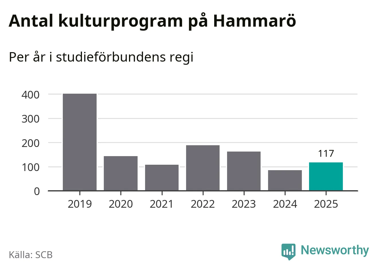 På Hammarö är minskningen ännu större: förra året hade studieförbunden omkring 3 100 studietimmar i kommunen, vilket är en minskning med 22 procent jämfört med året innan. Men medan studiecirklar och annan folkbildningsverksamhet minskade ökade faktiskt antalet kulturarrangemang i studieförbundens regi från 85 till knappt 120.