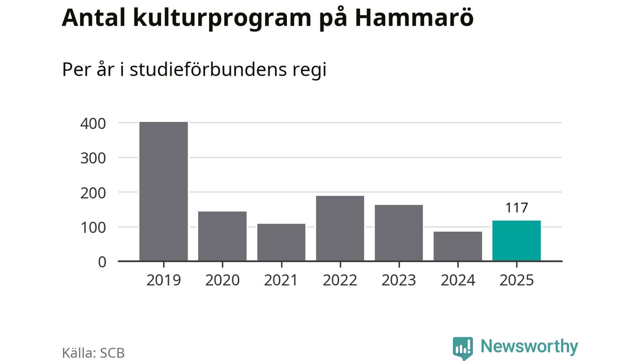 Åtta av de studieförbund som 2025 fick bidrag från Folkbildningsrådet har haft någon form av verksamhet – antingen studiecirkel, annan folkbildning eller kulturprogram – på Hammarö under de två senaste åren. Under 2025 ökade Folkuniversitetet, Sensus och Bilda antalet studietimmar i kommunen jämfört med året innan, medan de fem andra förbunden i kommunen noterade färre timmar.