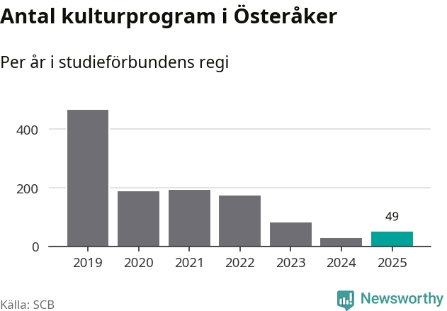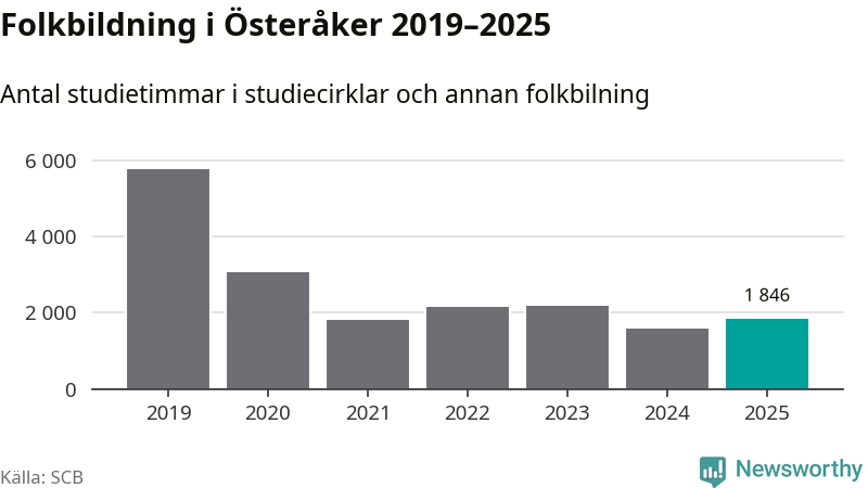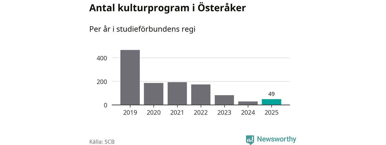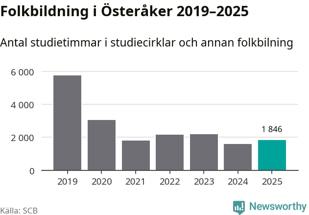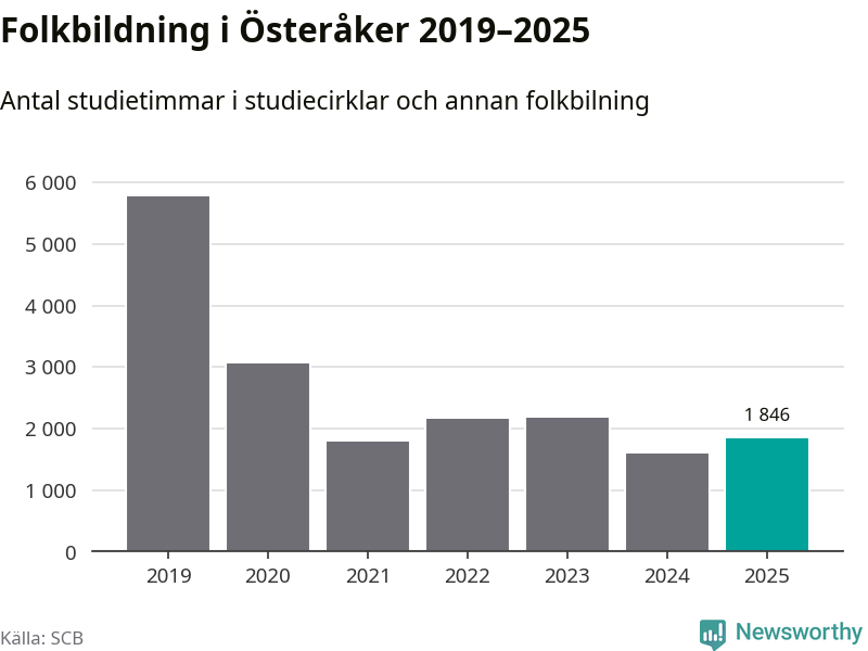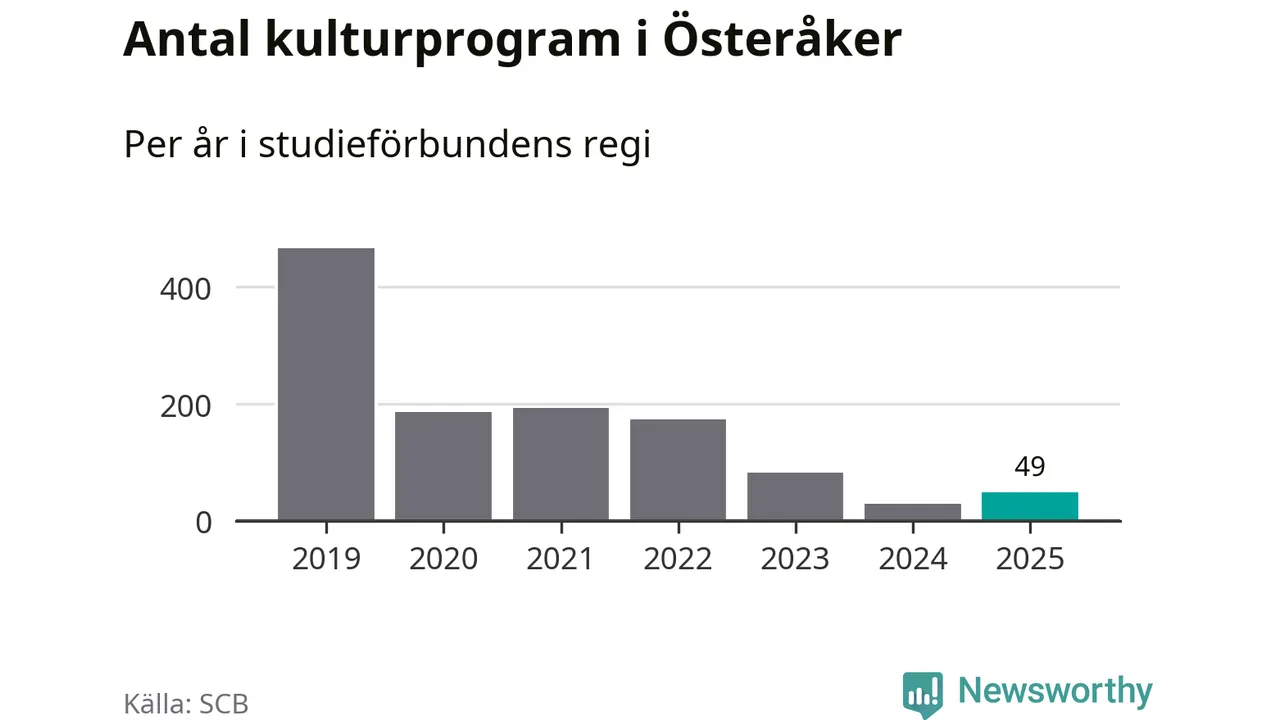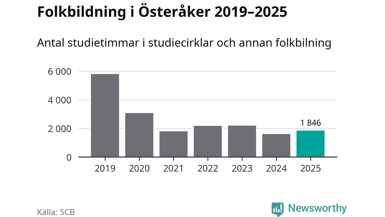 Studieförbunden drabbades hårt av pandemin. Även i Österåker noterades det lägsta antalet studietimmar under 2021, som då var 69 procent färre än 2019 – vilket är ungefär samma nivå som 2025.