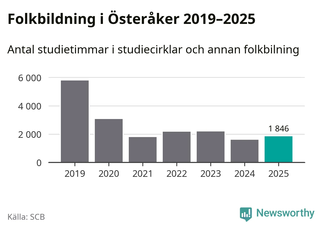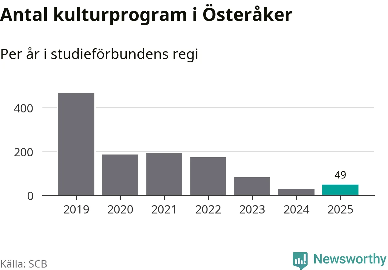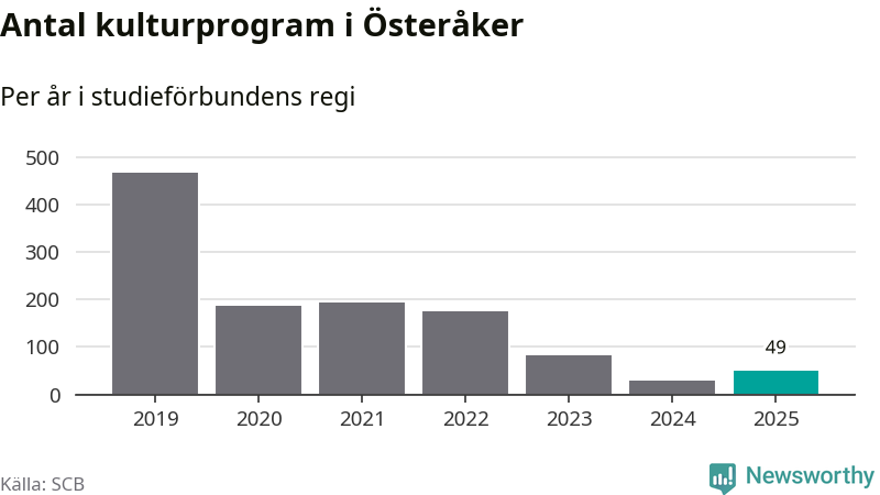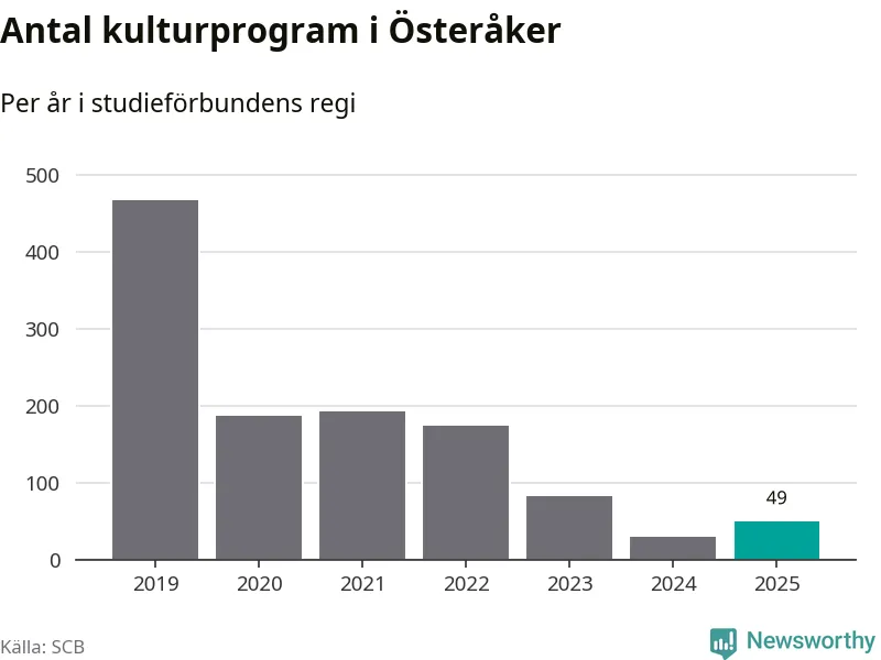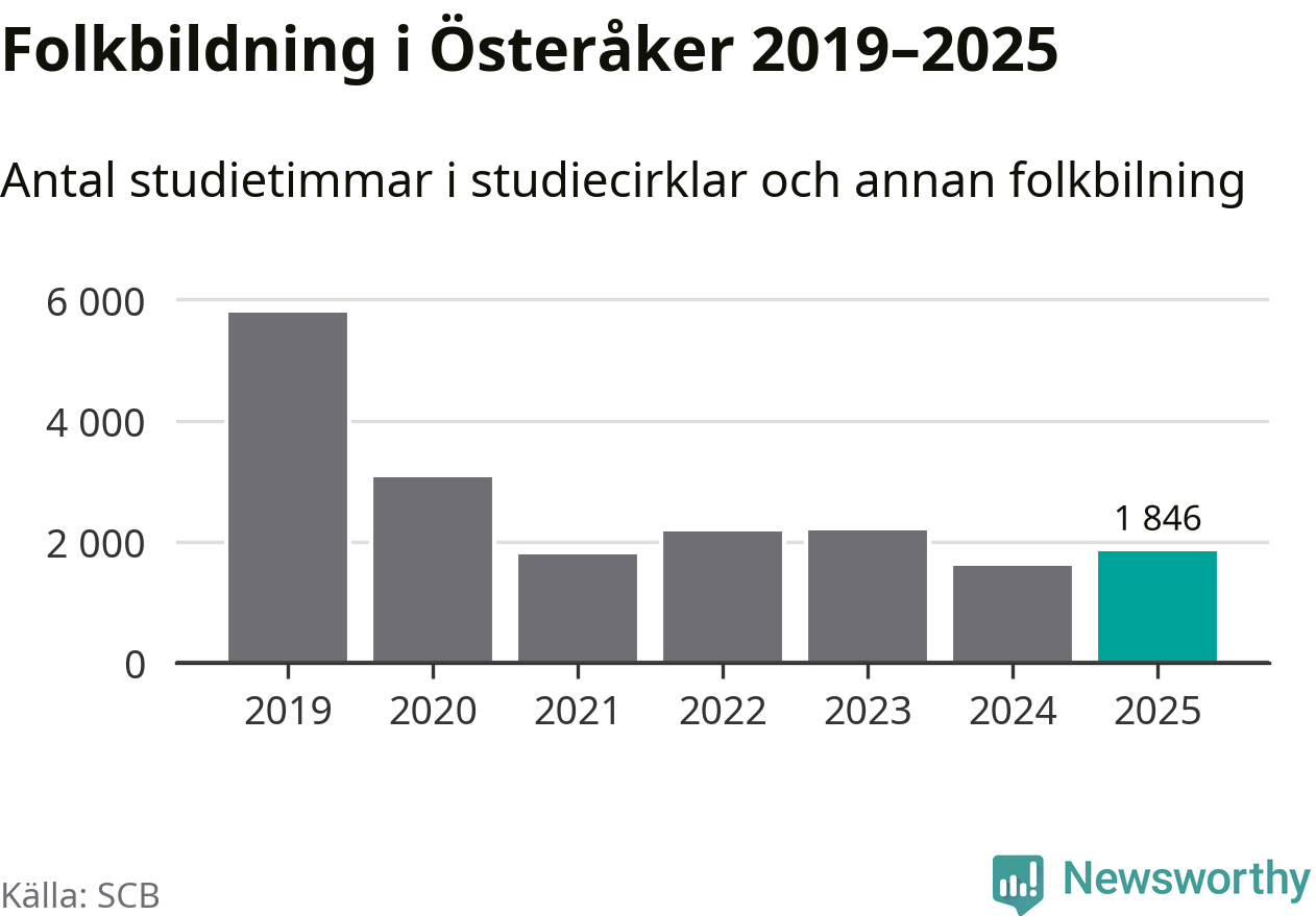Studieförbunden drabbades hårt av pandemin. Även i Österåker noterades det lägsta antalet studietimmar under 2021, som då var 69 procent färre än 2019 – vilket är ungefär samma nivå som 2025.