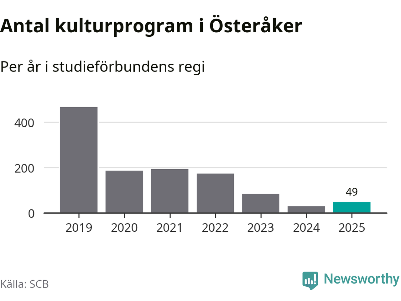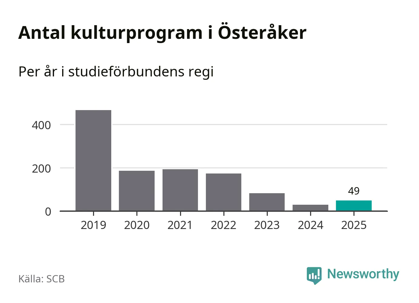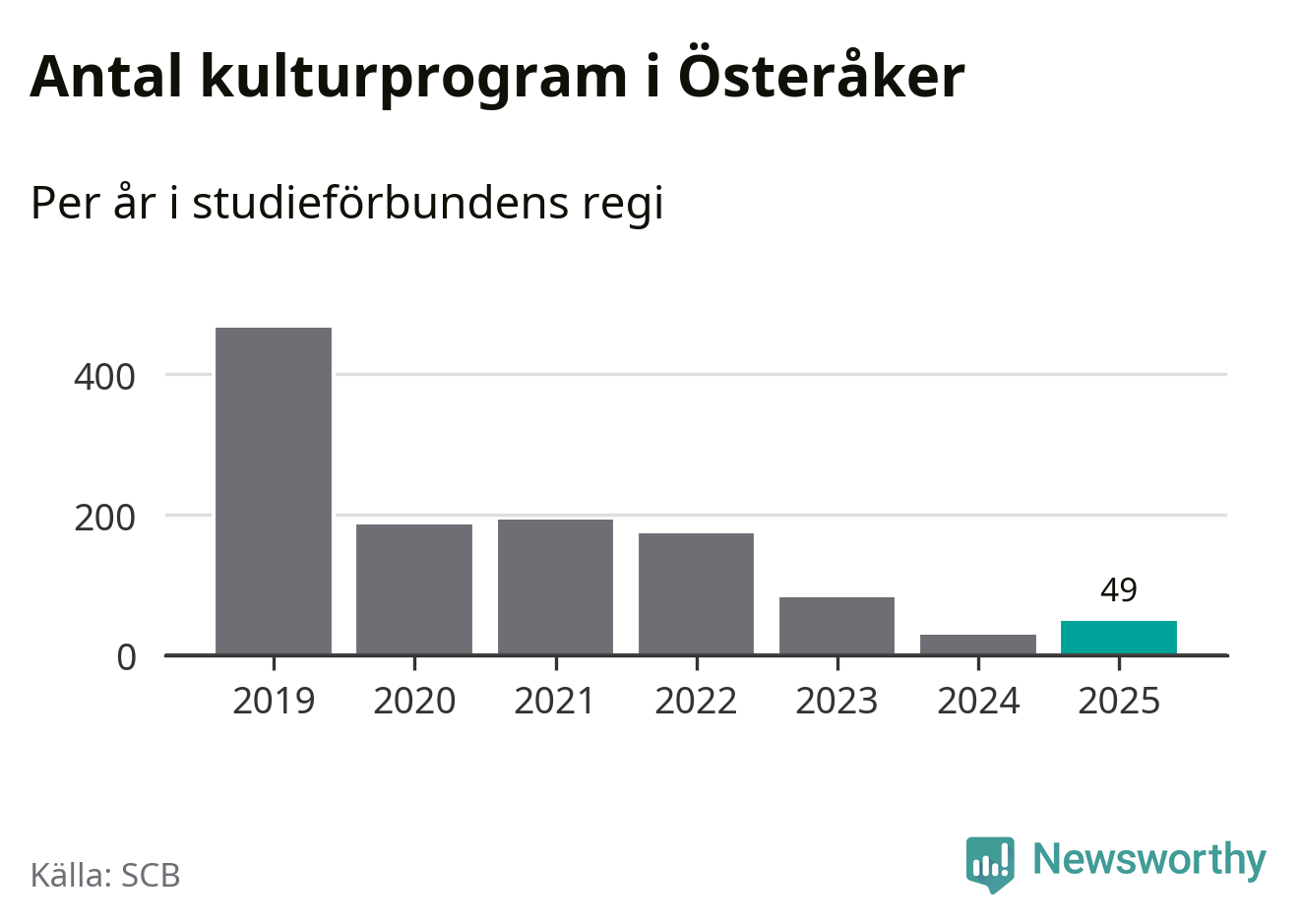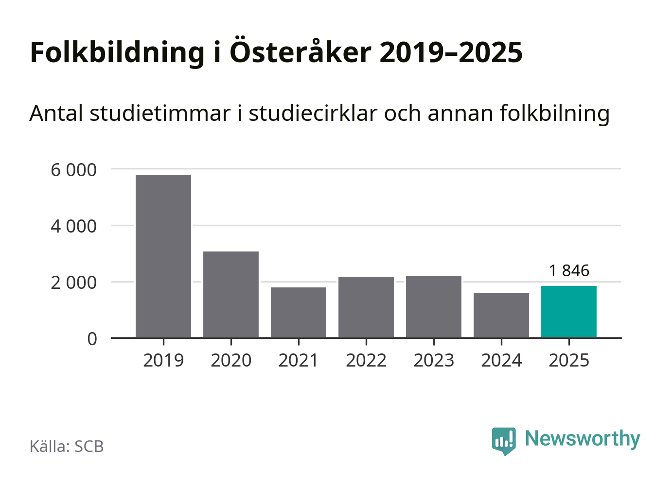 Studieförbunden drabbades hårt av pandemin. Även i Österåker noterades det lägsta antalet studietimmar under 2021, som då var 69 procent färre än 2019 – vilket är ungefär samma nivå som 2025.