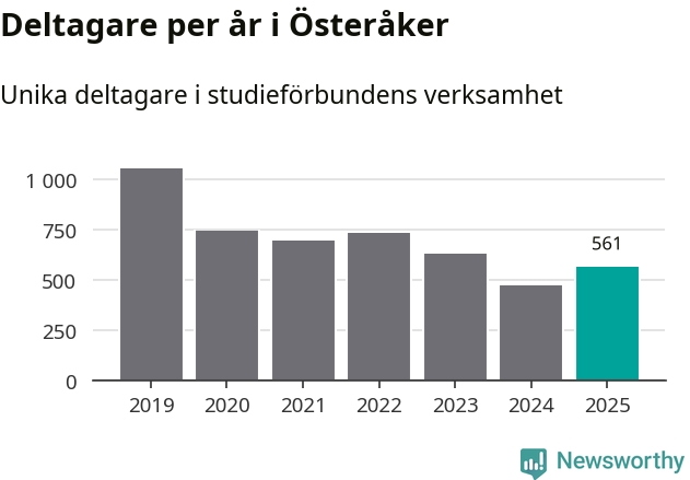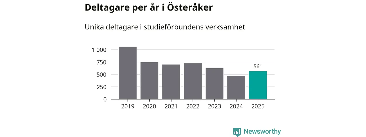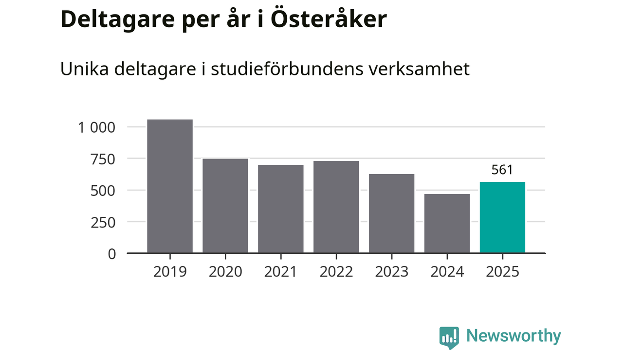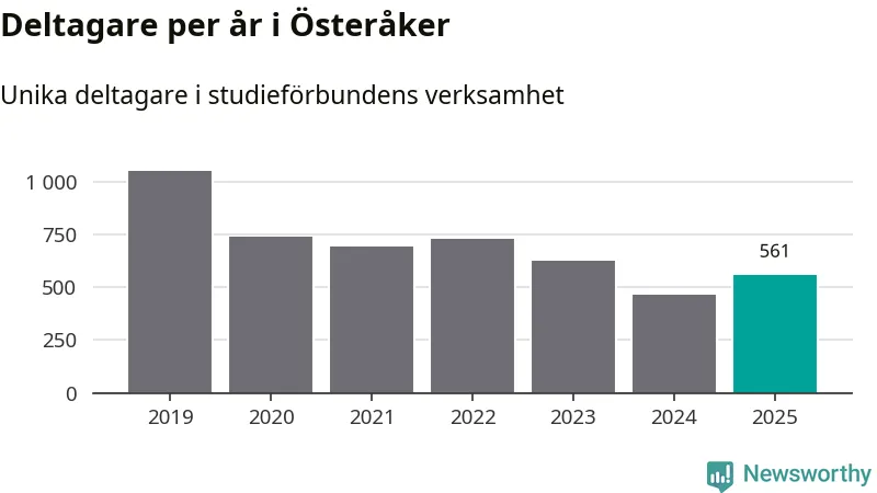 Även antalet unika deltagare ökade i Österåker i fjol: från 468 till 561 personer. Det innebär att en procent av befolkningen i kommunen deltog i studieförbundens verksamhet under 2025, vilket är lägre än rikssnittet.