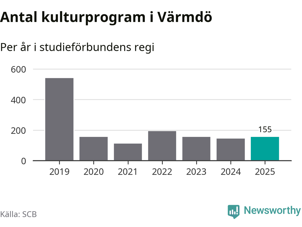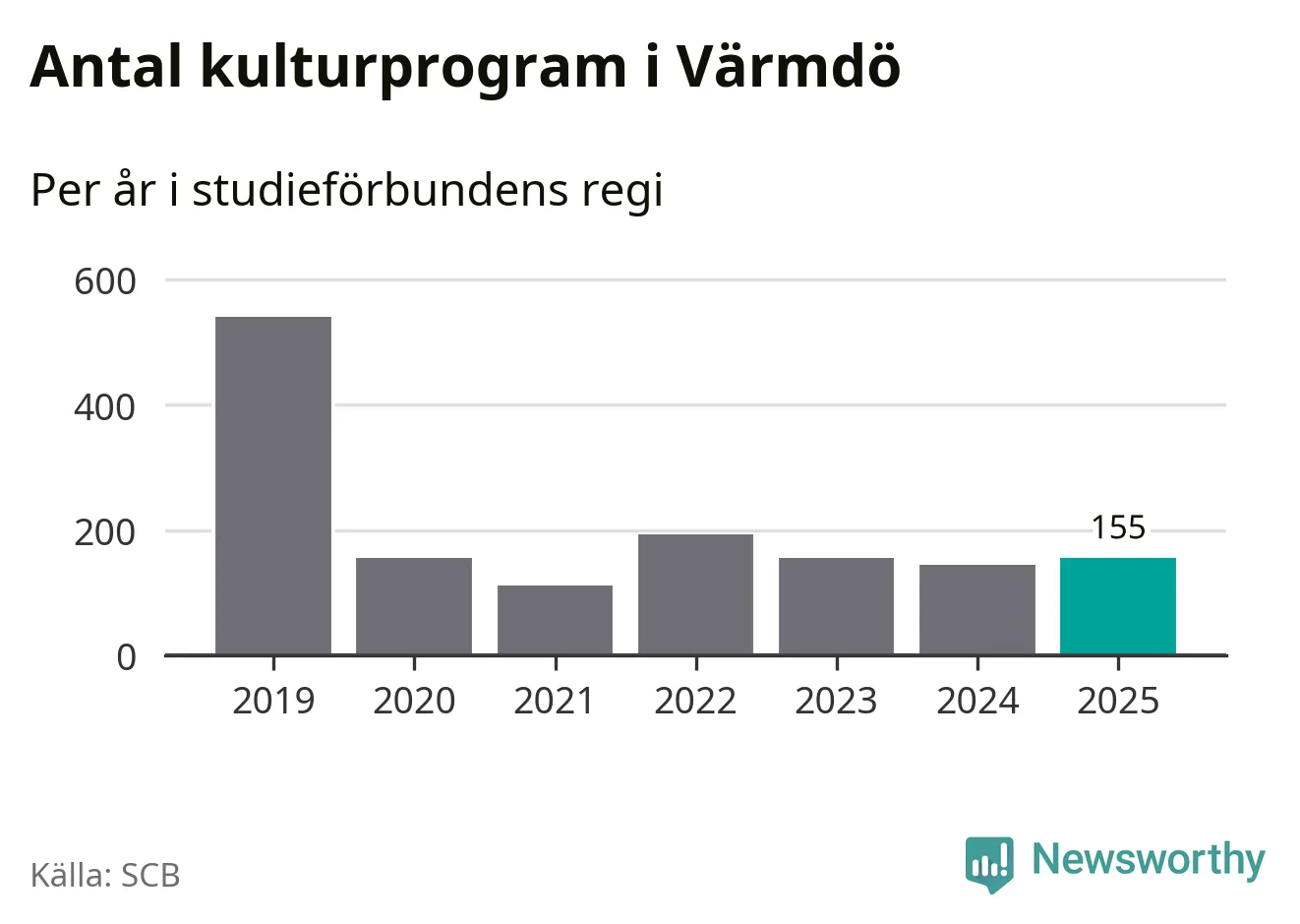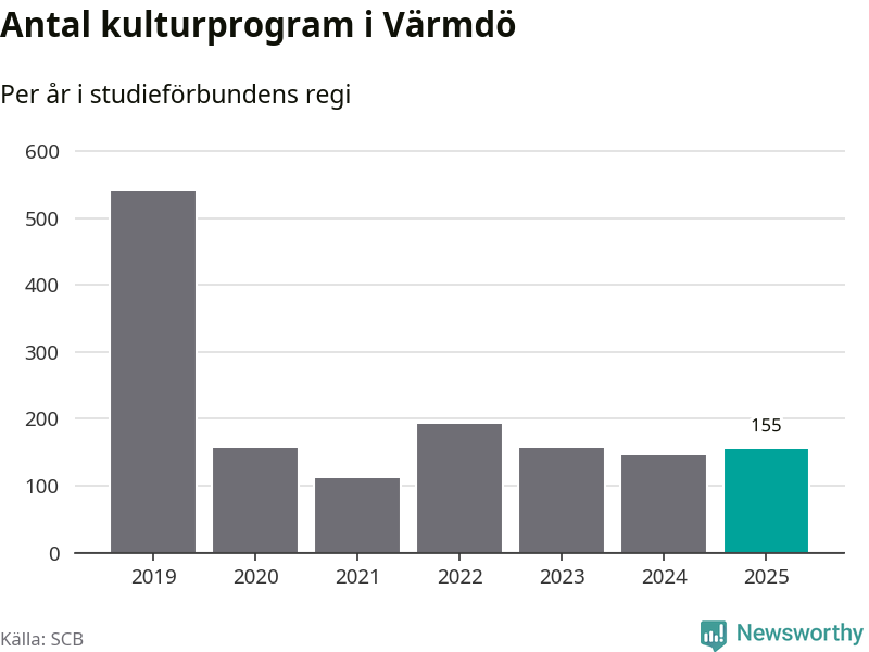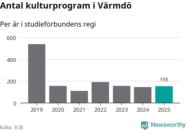 I Värmdö är minskningen ännu större: förra året hade studieförbunden omkring 5 700 studietimmar i kommunen, vilket är en minskning med nio procent jämfört med året innan. Men medan studiecirklar och annan folkbildningsverksamhet minskade ökade faktiskt antalet kulturarrangemang i studieförbundens regi från knappt 150 till knappt 160.