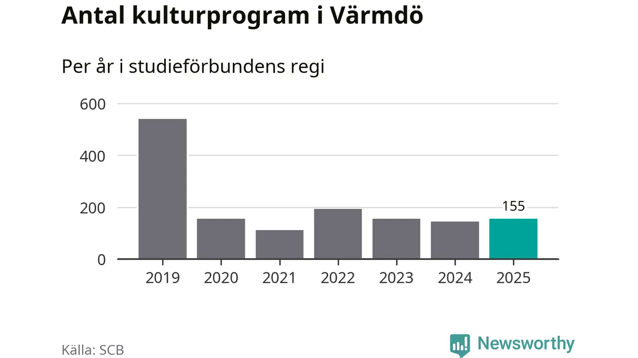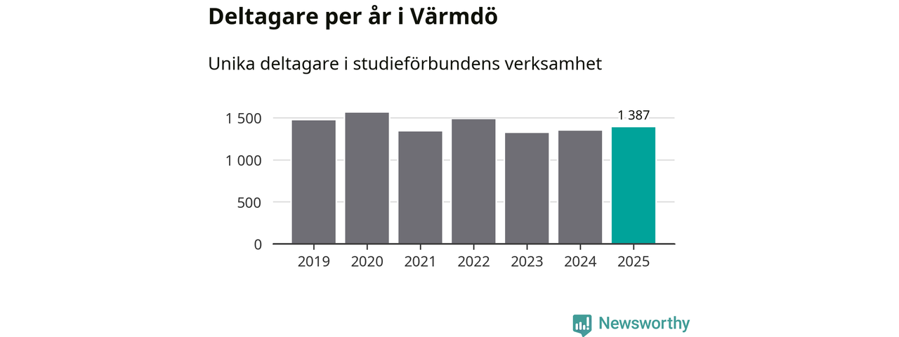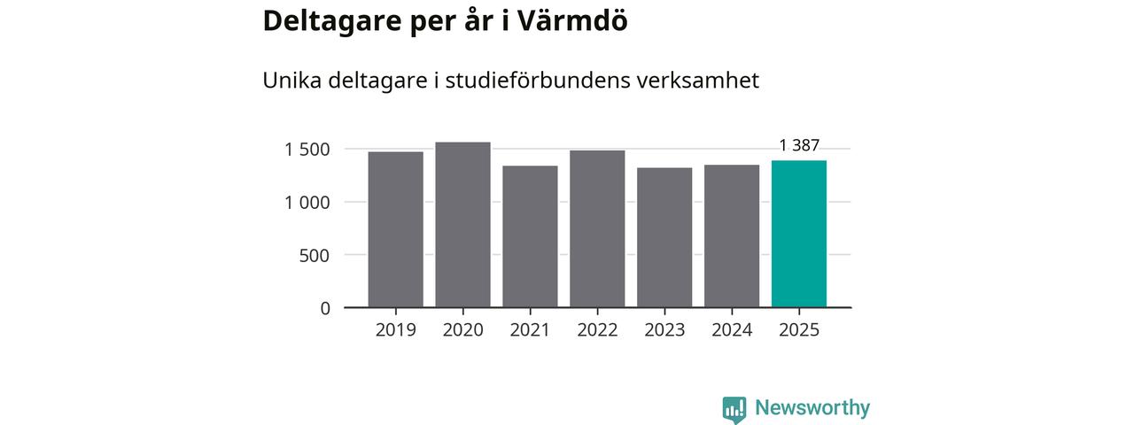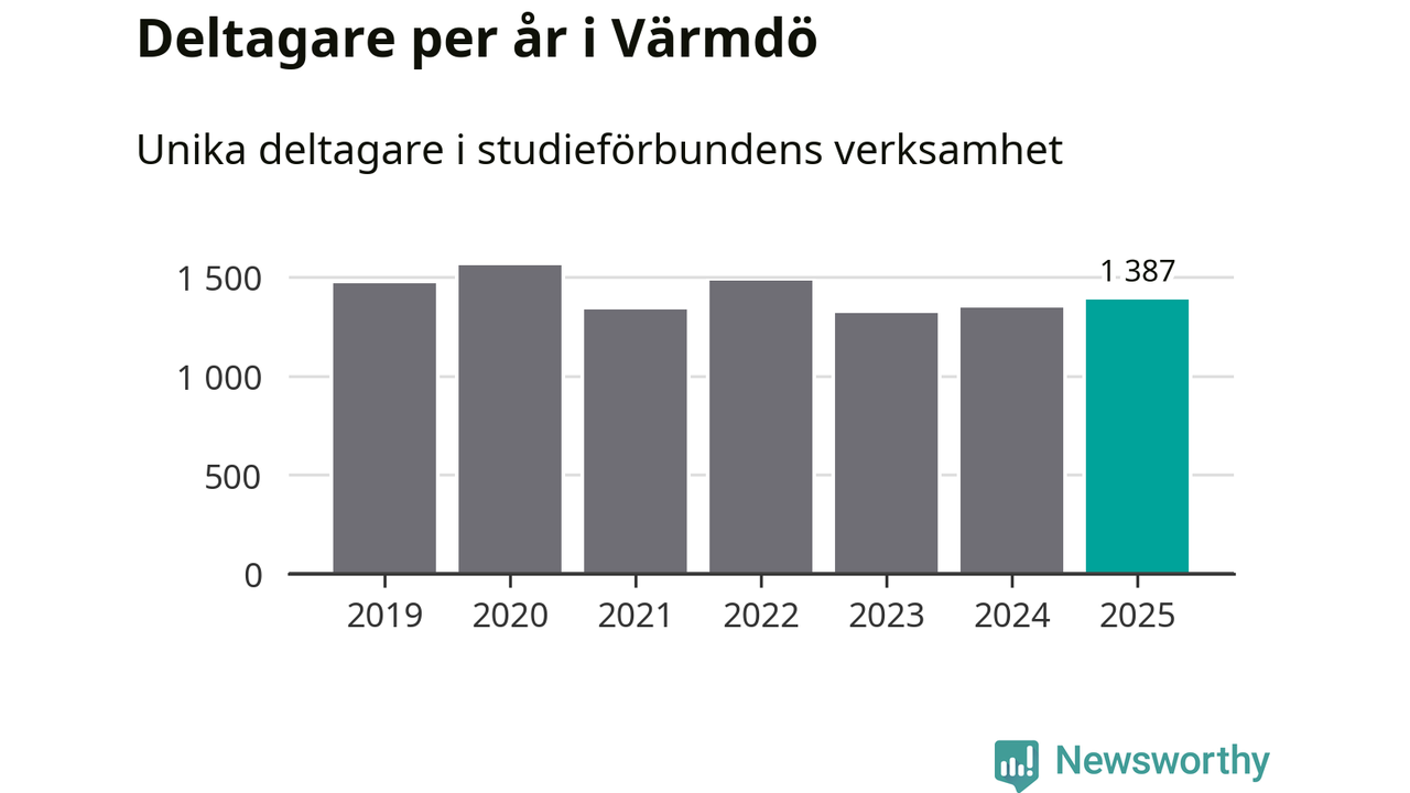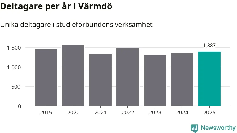 Antalet unika deltagare ökade i Värmdö i fjol: från 1 347 till 1 387 personer. Det innebär att tre procent av befolkningen i kommunen deltog i studieförbundens verksamhet under 2025, vilket är lägre än rikssnittet.