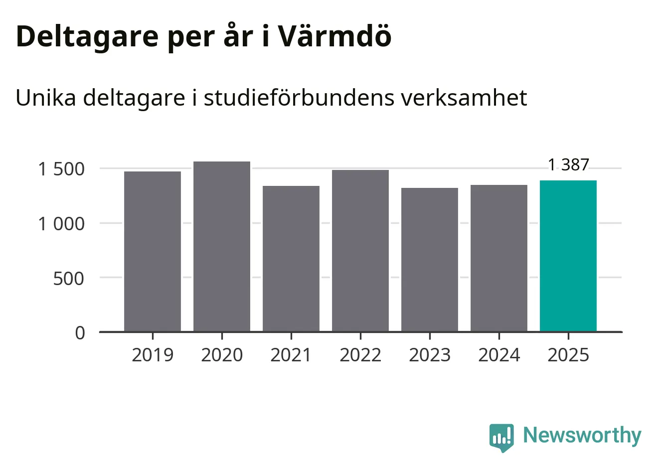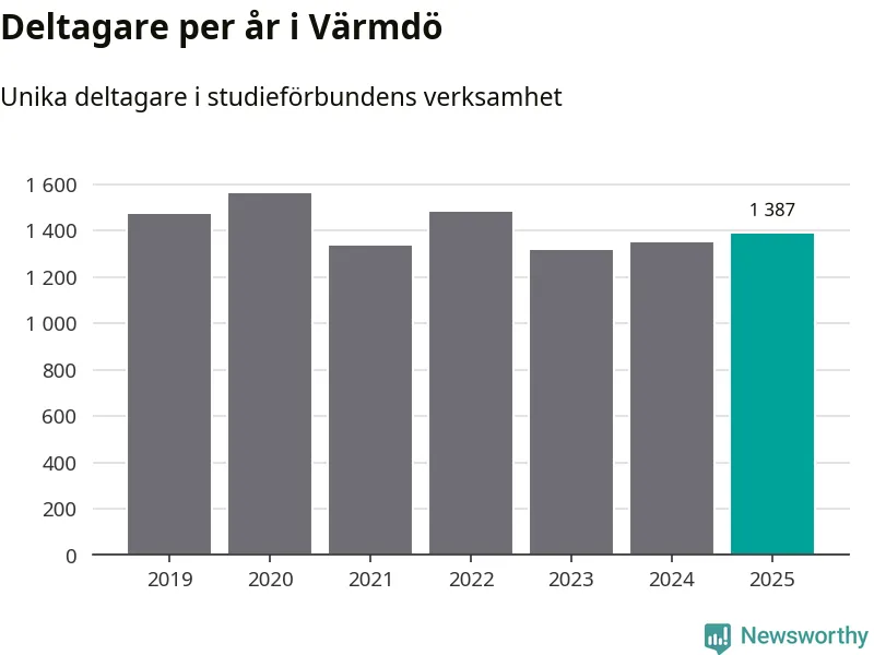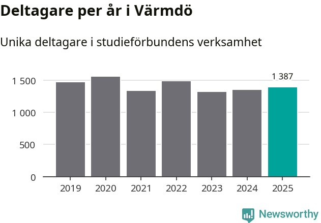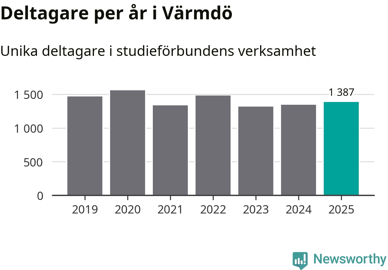 Antalet unika deltagare ökade i Värmdö i fjol: från 1 347 till 1 387 personer. Det innebär att tre procent av befolkningen i kommunen deltog i studieförbundens verksamhet under 2025, vilket är lägre än rikssnittet.