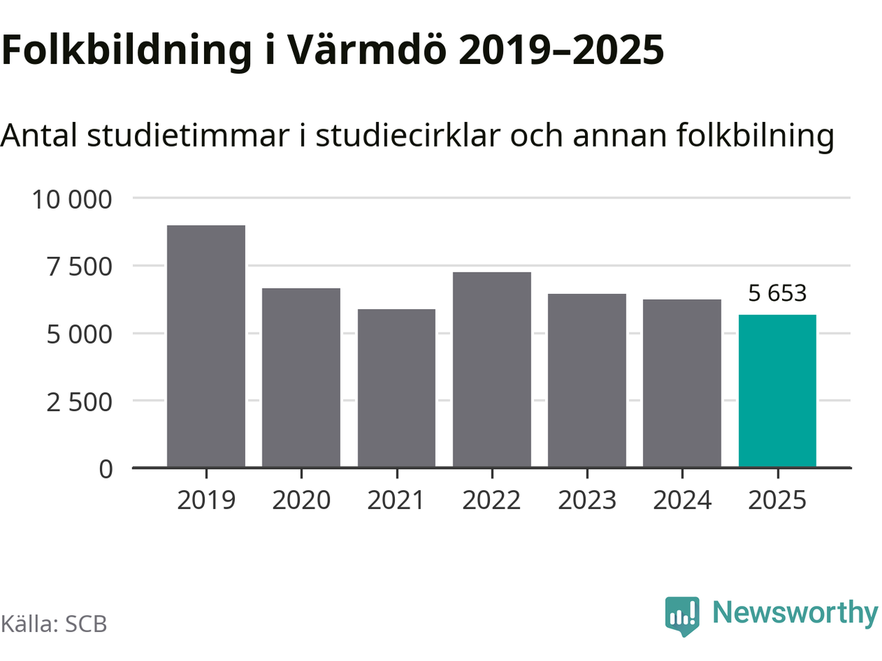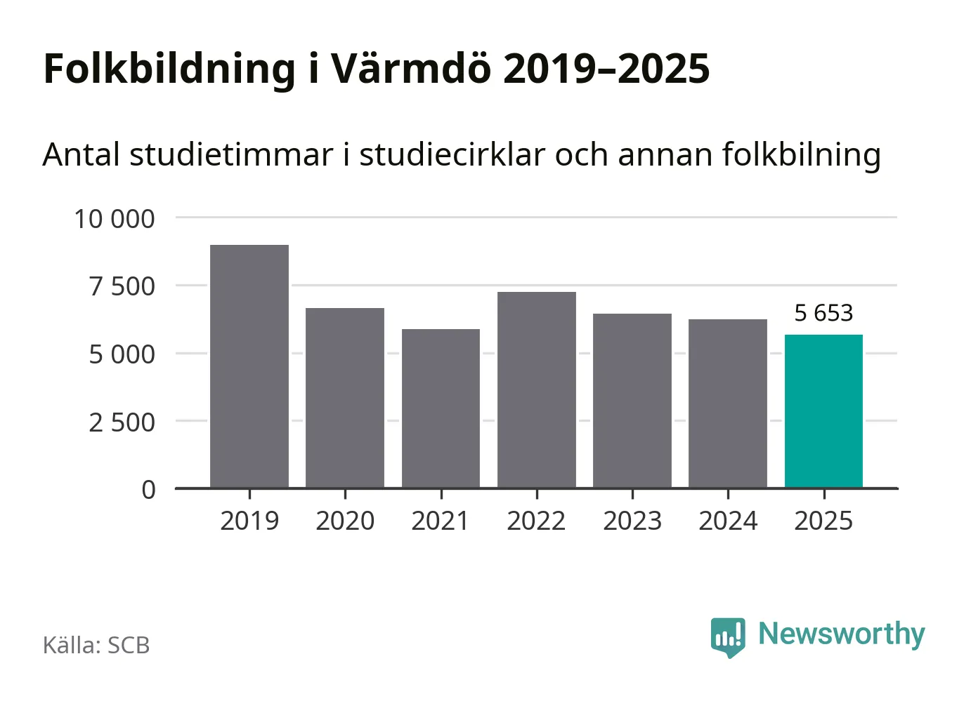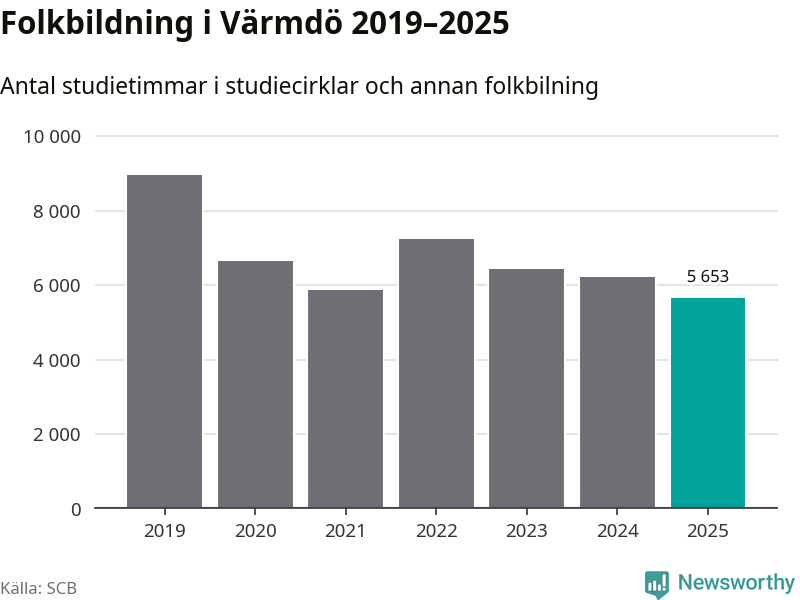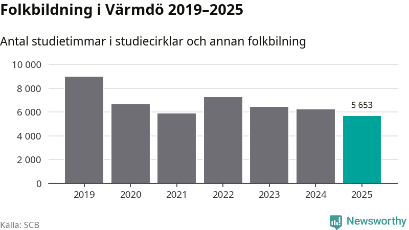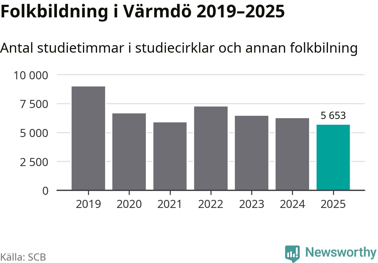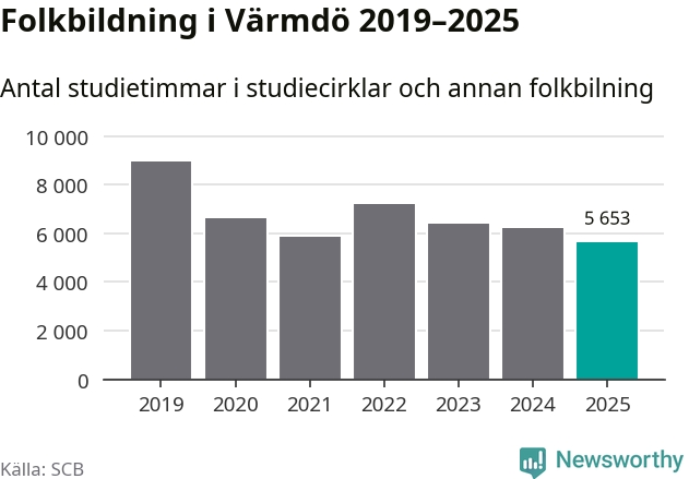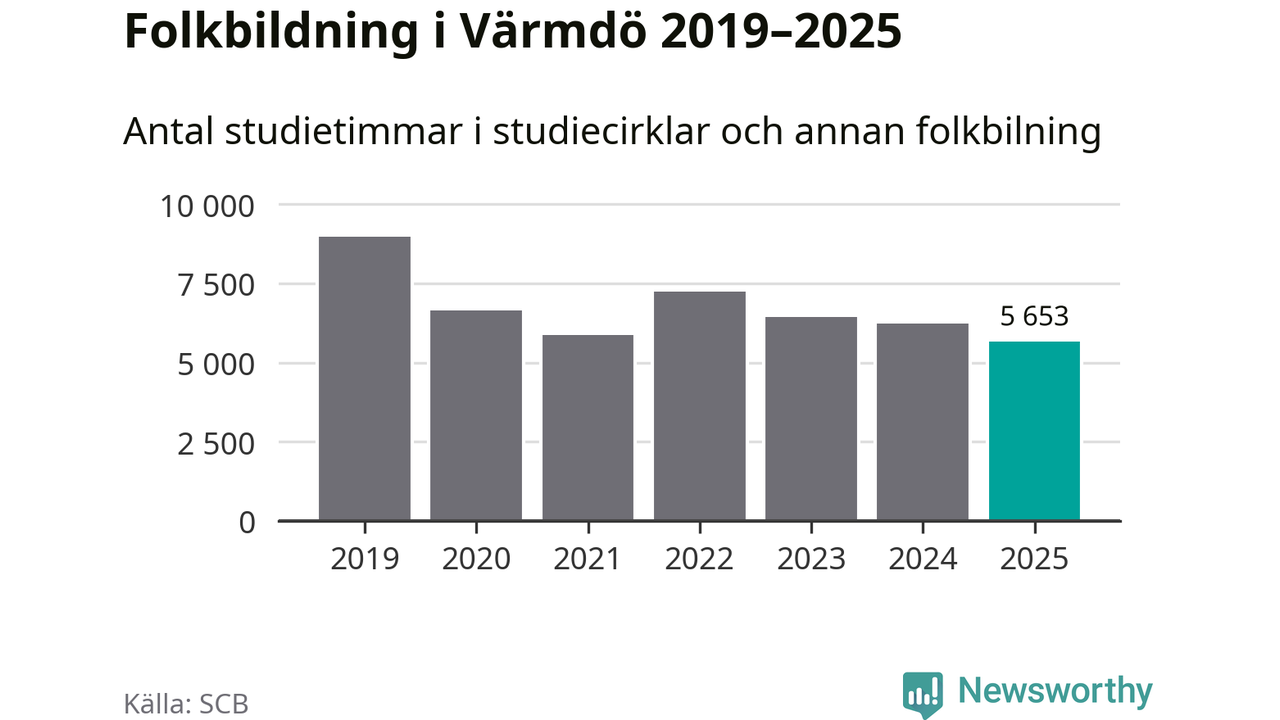 Studieförbunden drabbades hårt av pandemin. Även i Värmdö noterades det lägsta antalet studietimmar under 2021, som då var 35 procent färre än 2019 – vilket fortfarande är fler än 2025.