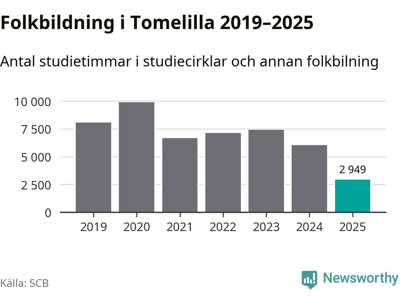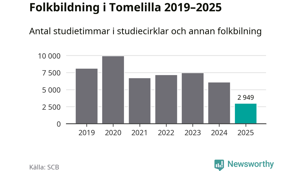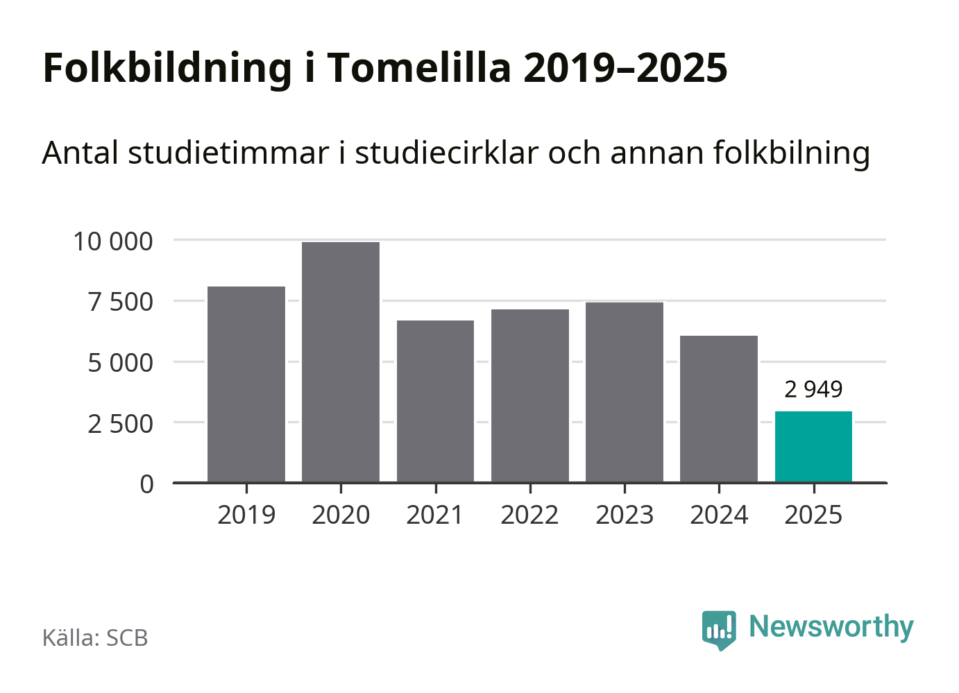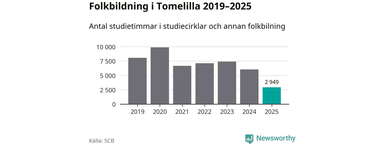 Studieförbunden drabbades hårt av pandemin. Även i Tomelilla noterades det lägsta antalet studietimmar under 2021, som då var 17 procent färre än 2019 – vilket fortfarande är fler än 2025.