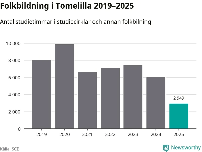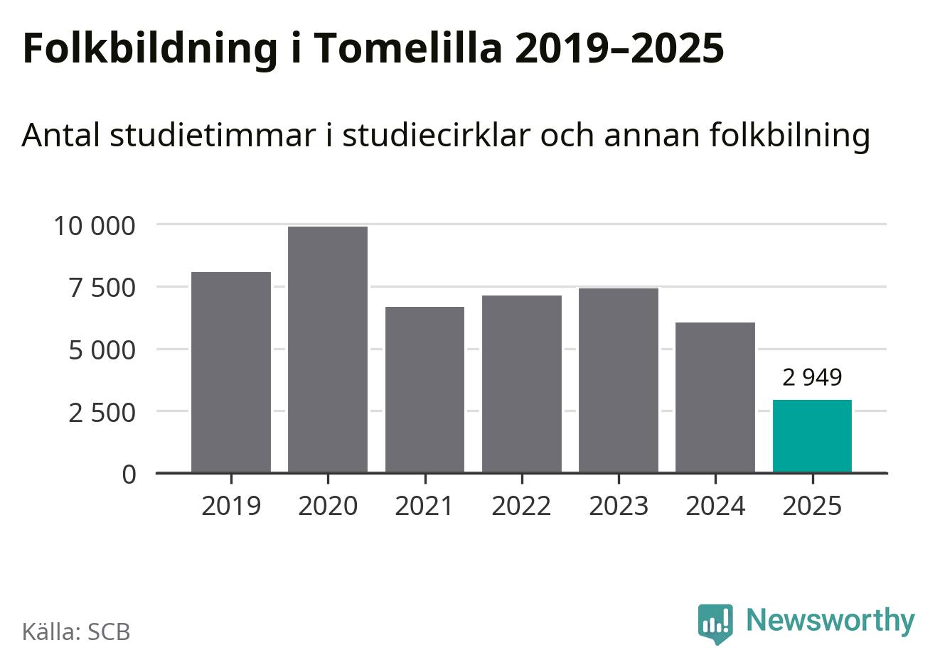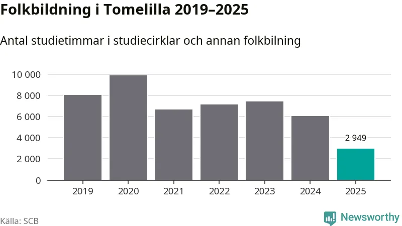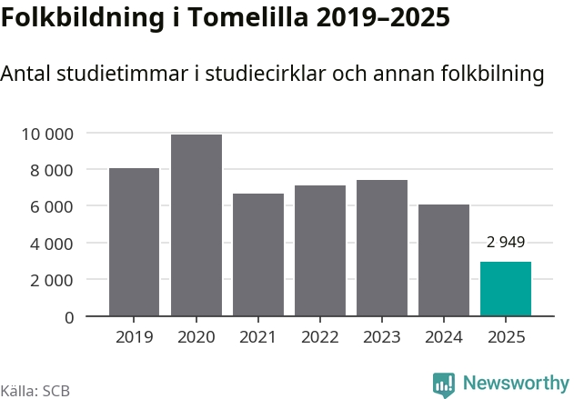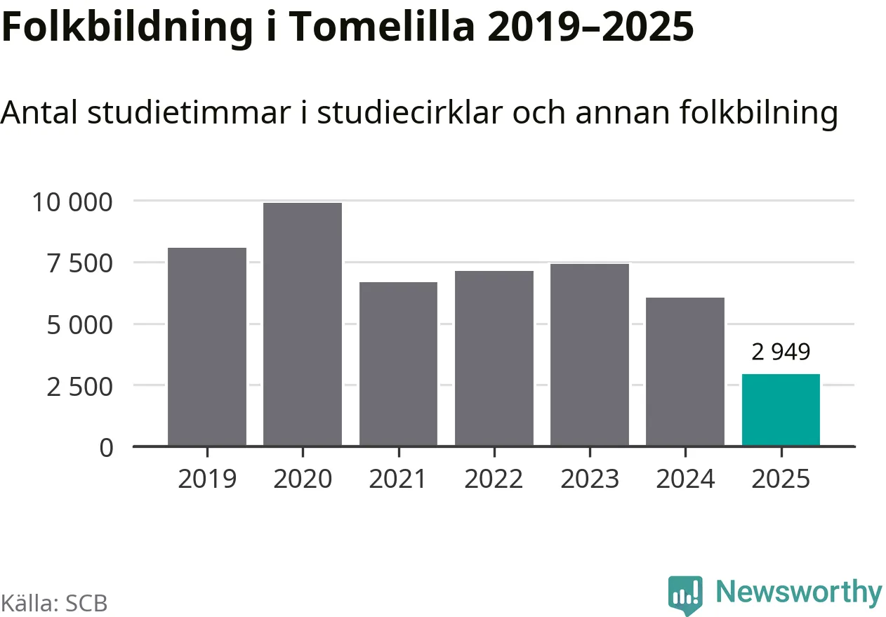 Studieförbunden drabbades hårt av pandemin. Även i Tomelilla noterades det lägsta antalet studietimmar under 2021, som då var 17 procent färre än 2019 – vilket fortfarande är fler än 2025.