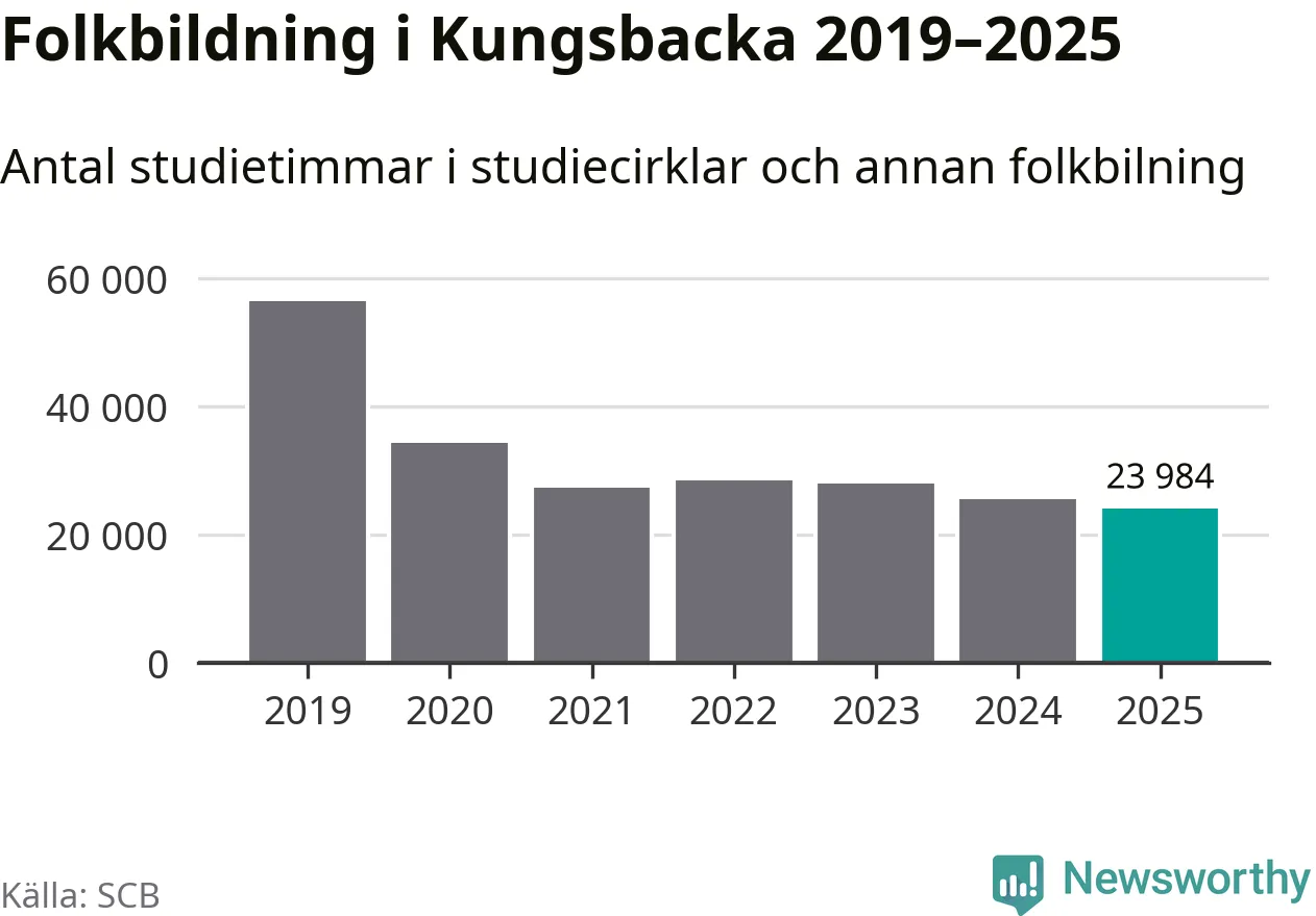 Studieförbunden drabbades hårt av pandemin. Även i Kungsbacka noterades det lägsta antalet studietimmar under 2021, som då var 52 procent färre än 2019 – vilket fortfarande är fler än 2025.