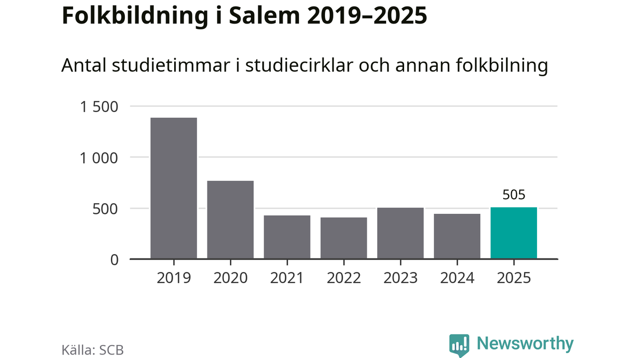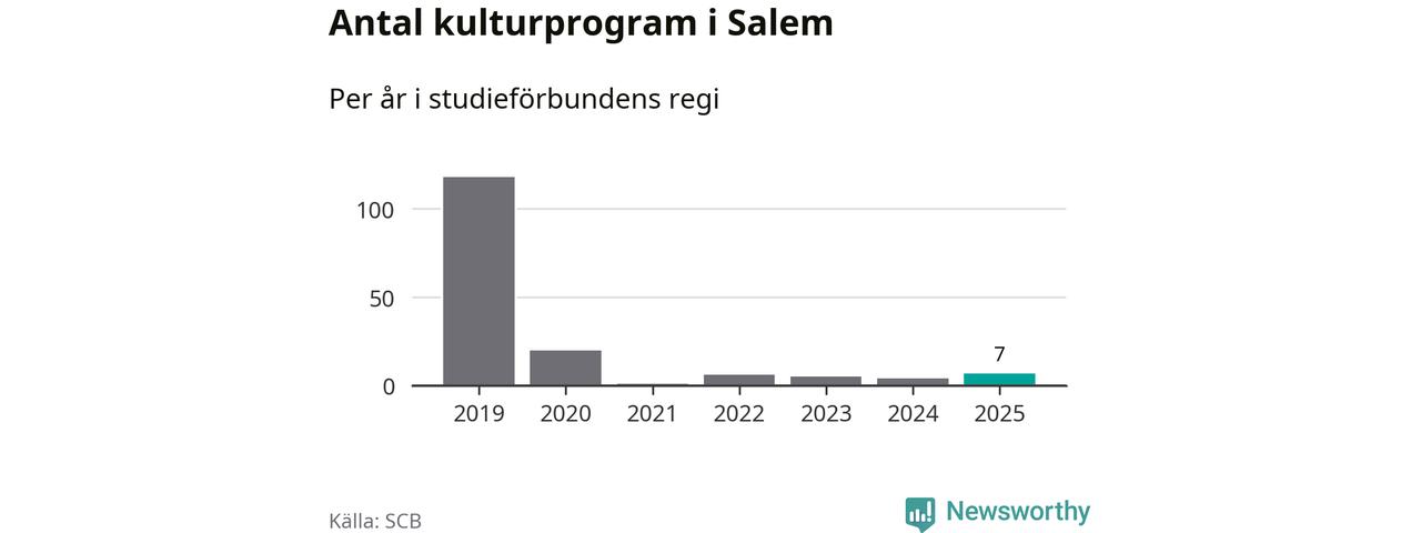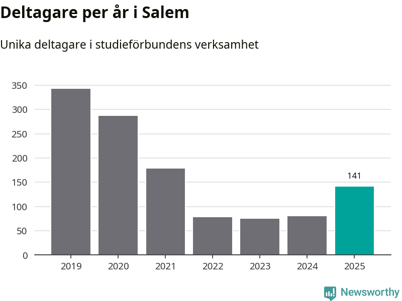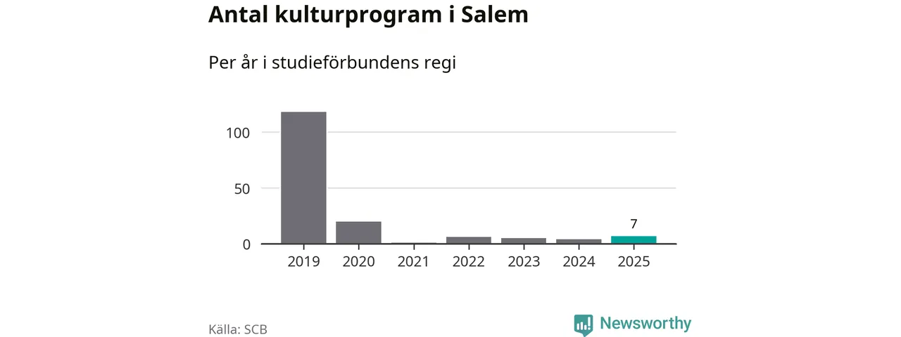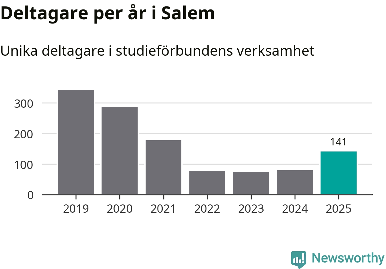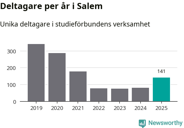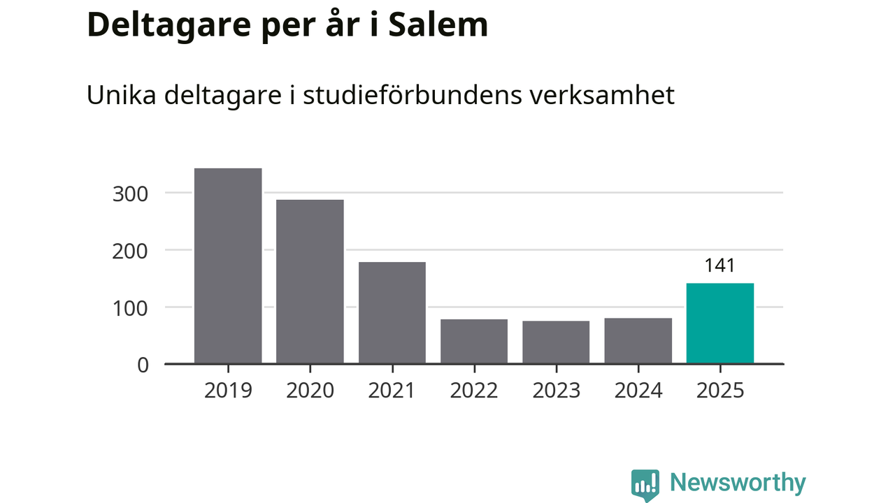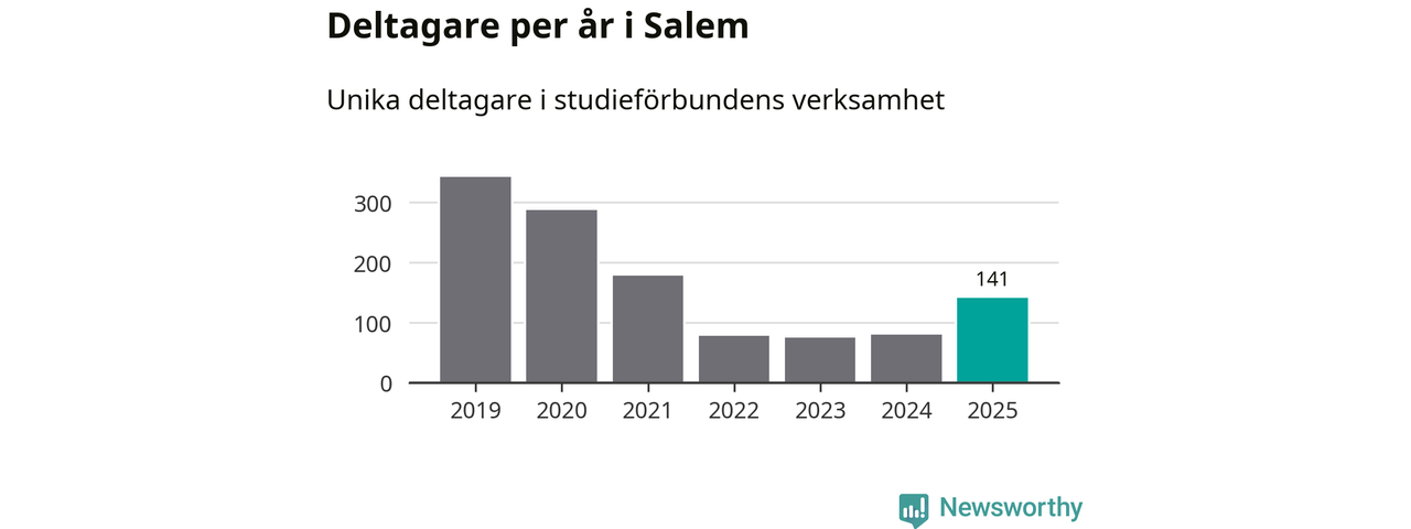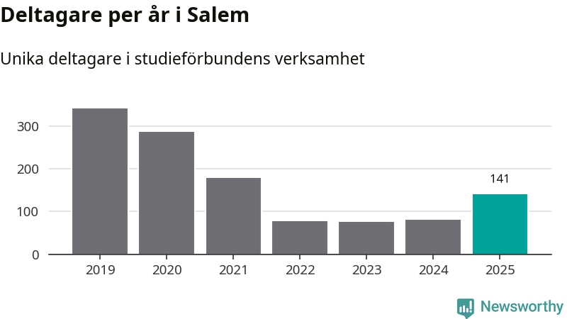 Även antalet unika deltagare ökade i Salem i fjol: från 80 till 141 personer. Det innebär att en procent av befolkningen i kommunen deltog i studieförbundens verksamhet under 2025 och det är den lägsta andelen i landet.
