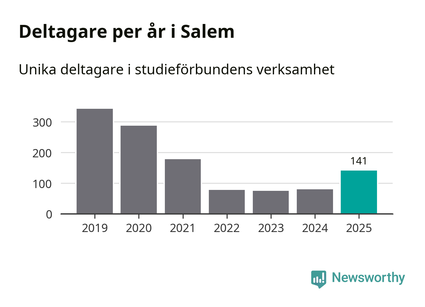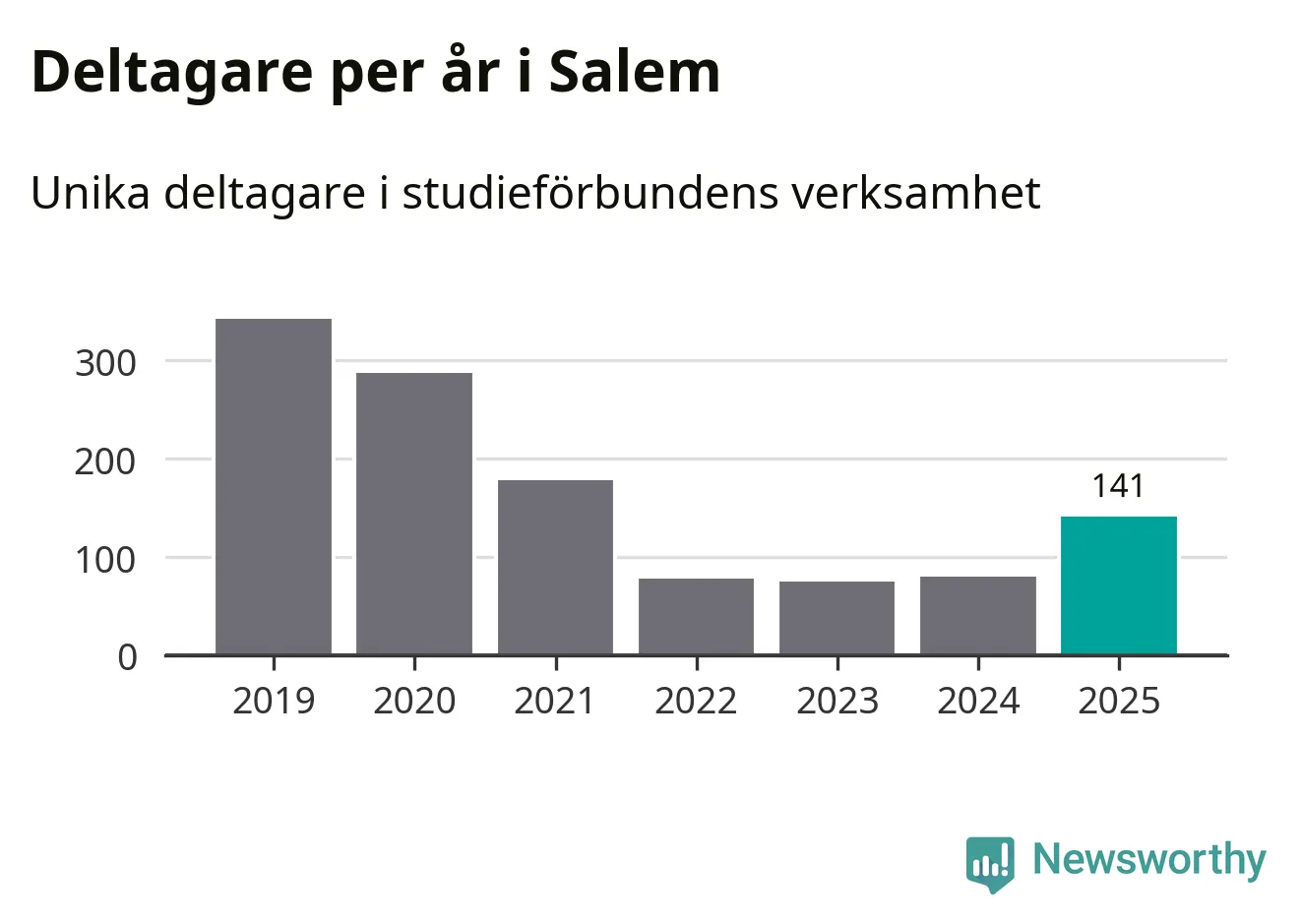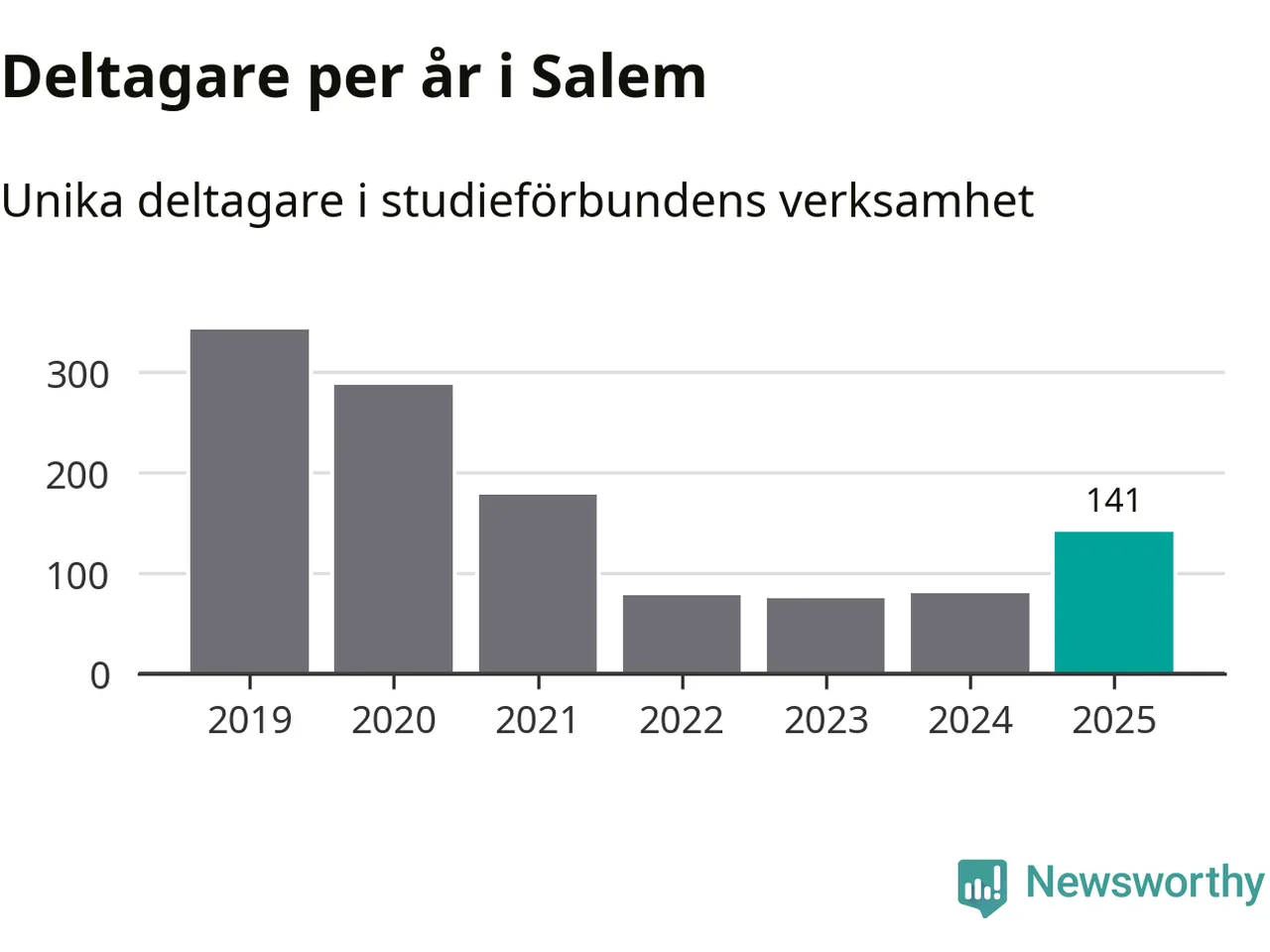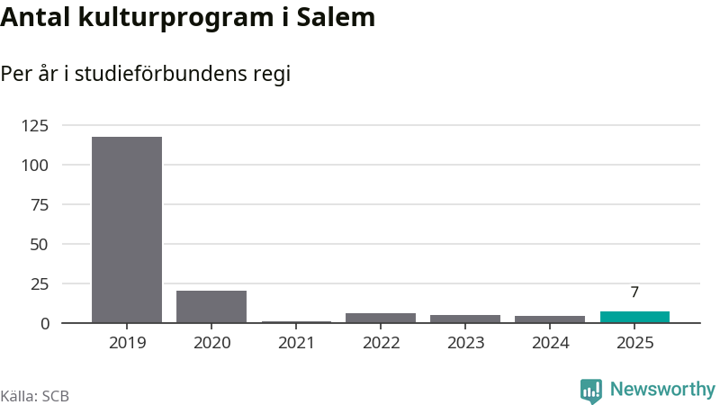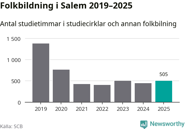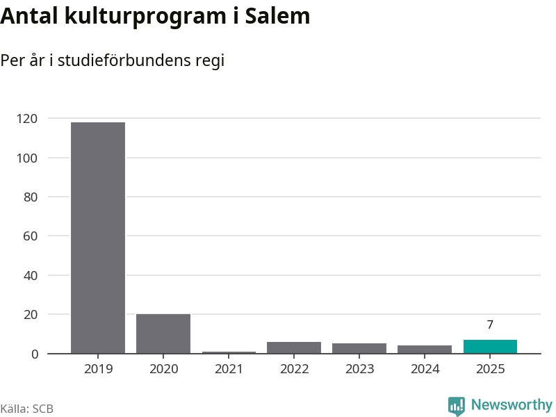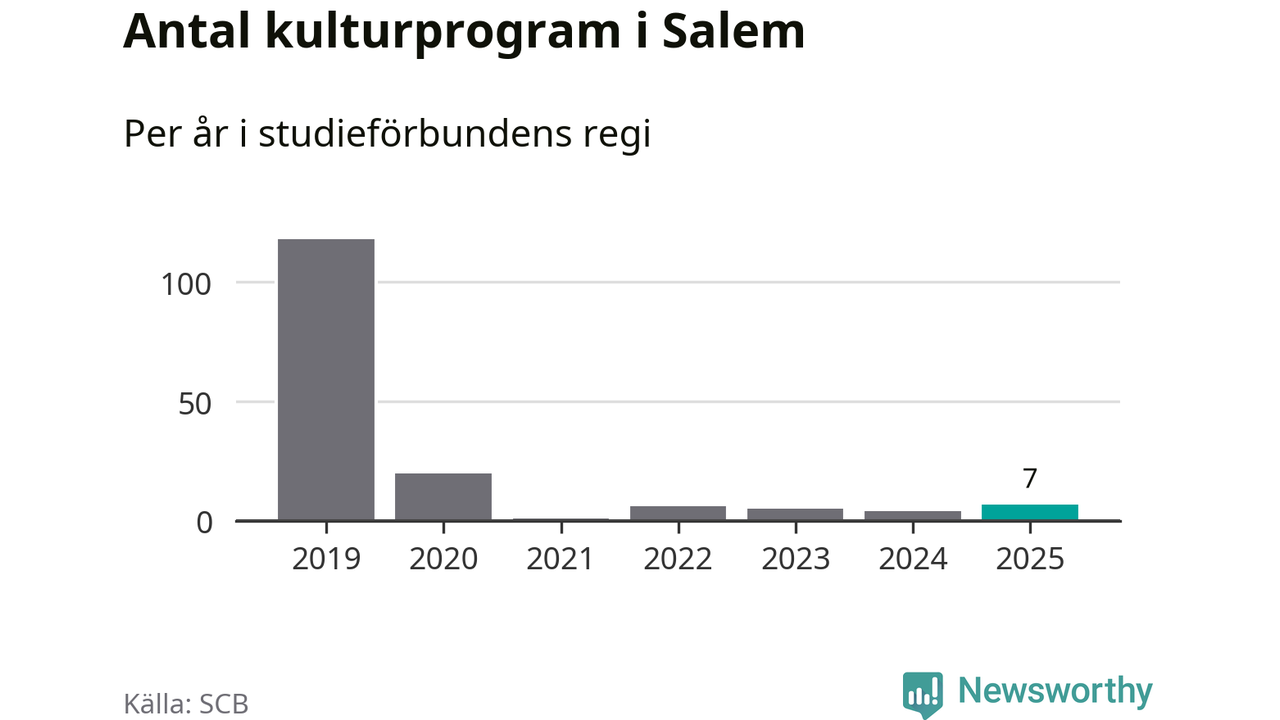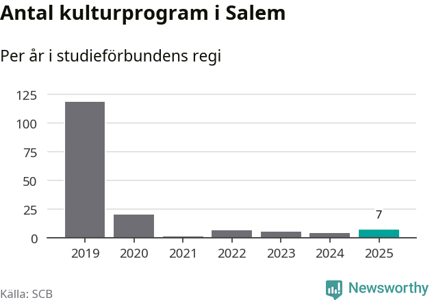 Även antalet unika deltagare ökade i Salem i fjol: från 80 till 141 personer. Det innebär att en procent av befolkningen i kommunen deltog i studieförbundens verksamhet under 2025 och det är den lägsta andelen i landet.